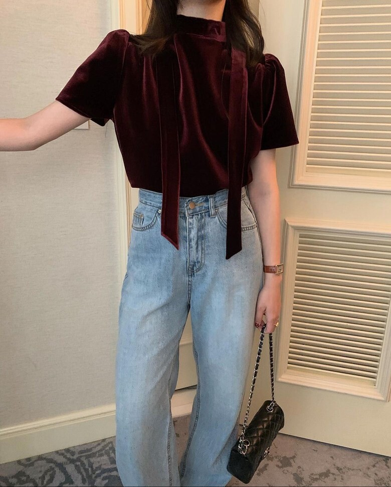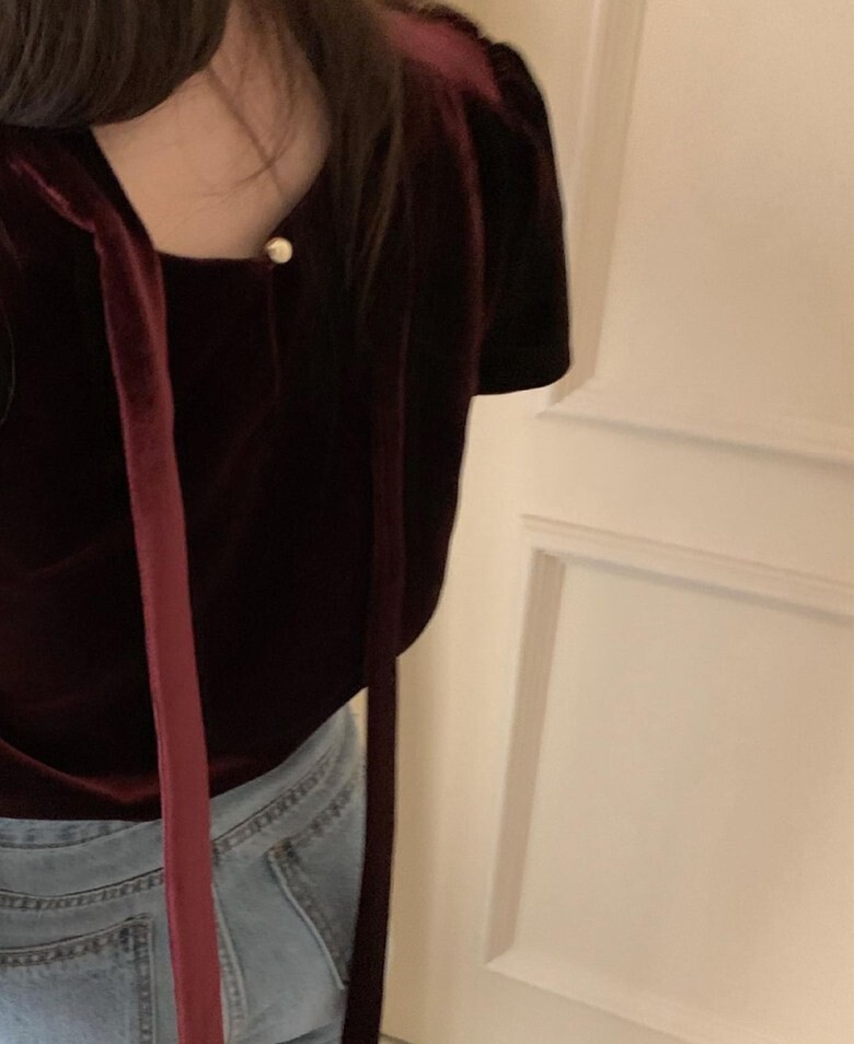 프리티영띵 벨벳 타이 블라우스 (PYT 프영띵 연말룩)