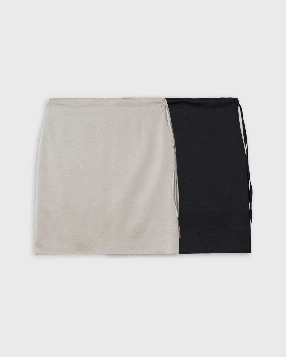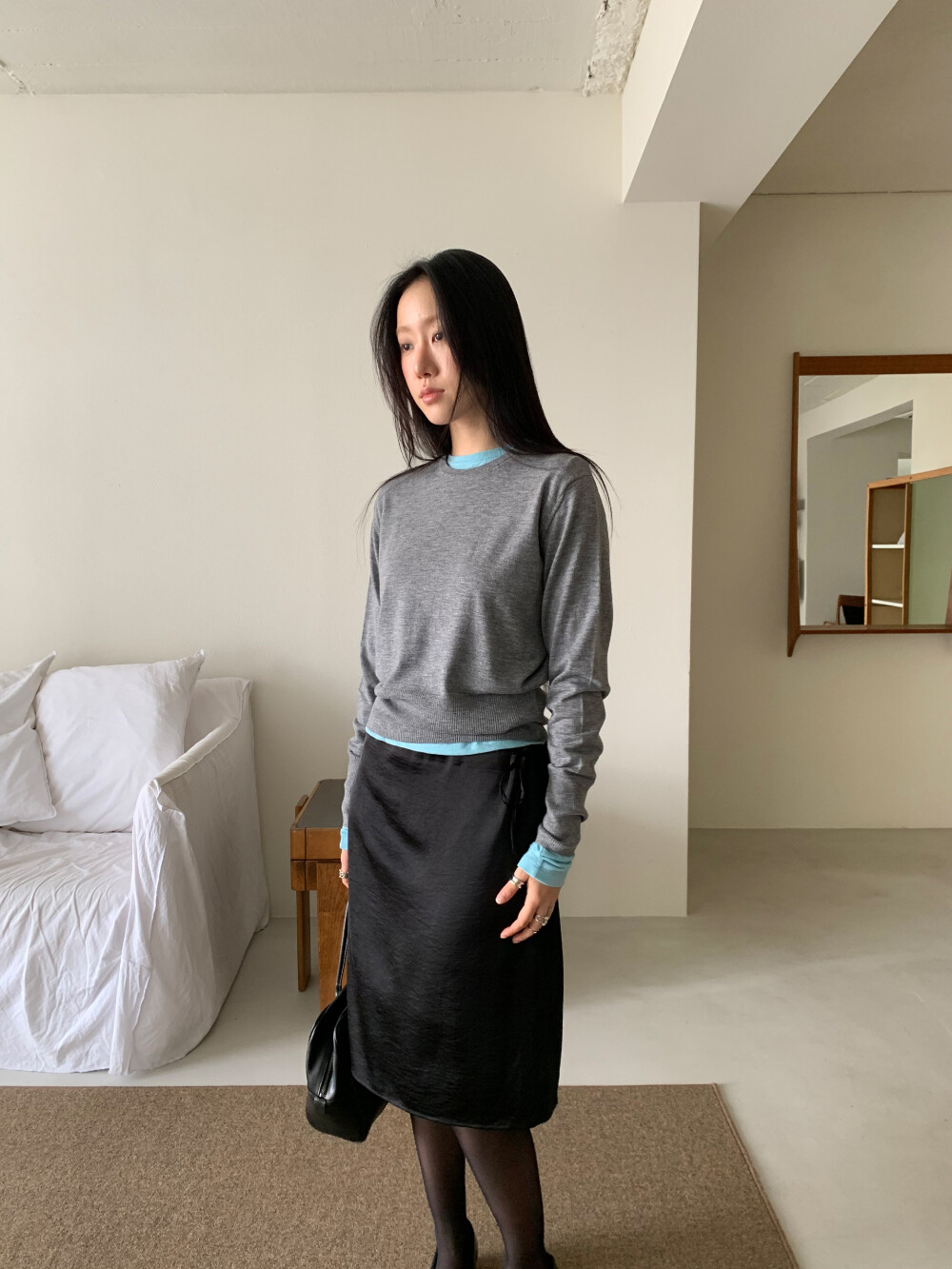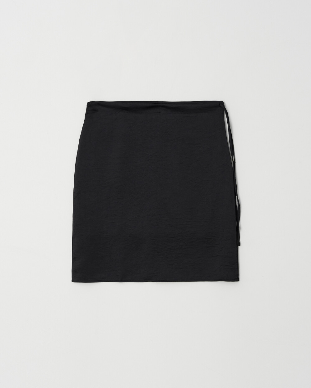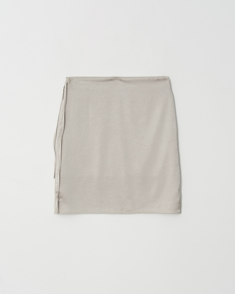 은은한 광택이 느껴지는 샤틴 소재로 제작된 미디 스커트입니다.