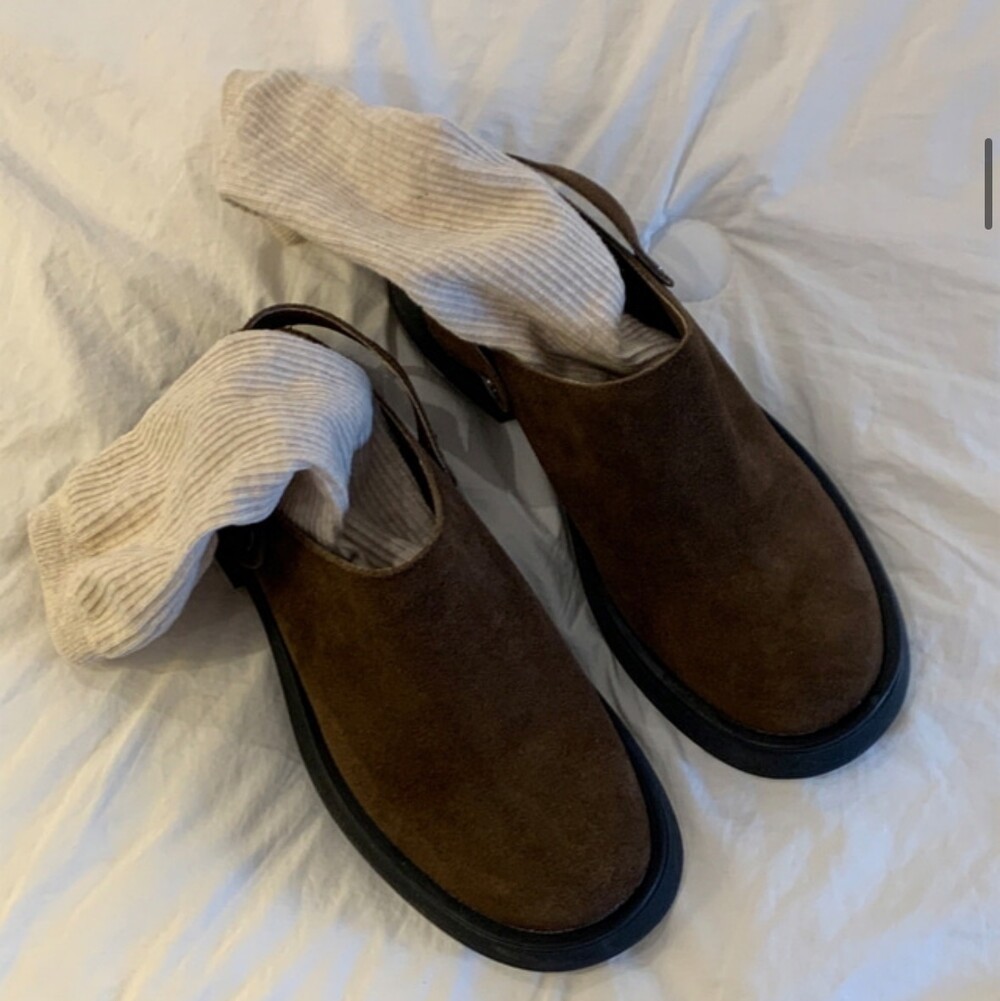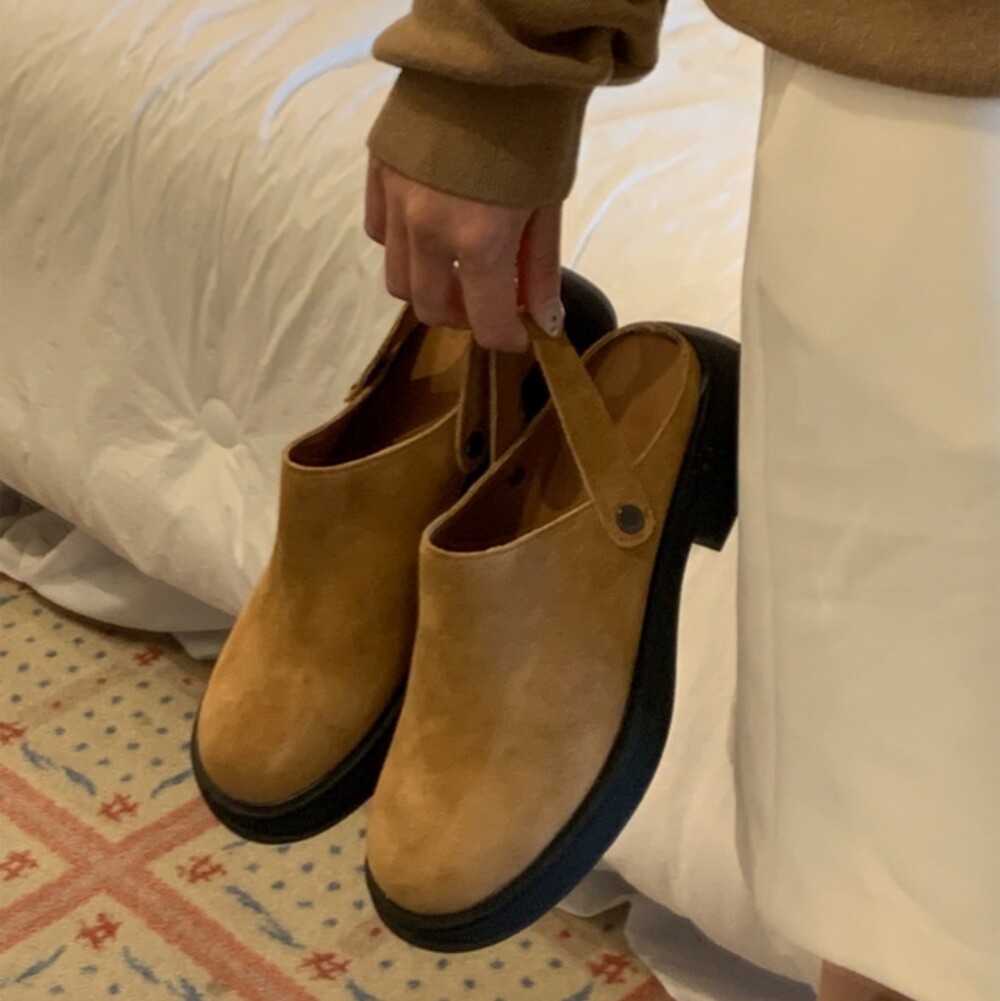 나막신을 연상하듯 멋스러운 천연소가죽으로 제작된 클로그입니다.