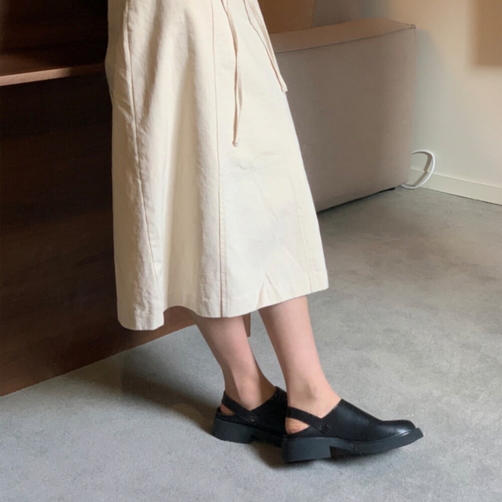끈을 앞으로 빼서 뮬로도 착용가능하고 뒷꿈치를 잡아주는 슬링백 형태로도 착용 가능합니다.