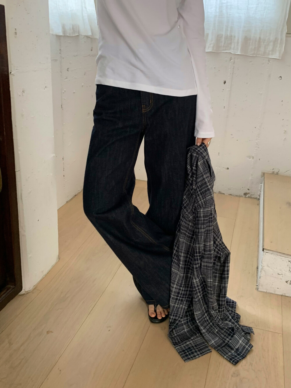 논페이드 데님 원단으로 제작된 와이드 데님입니다.