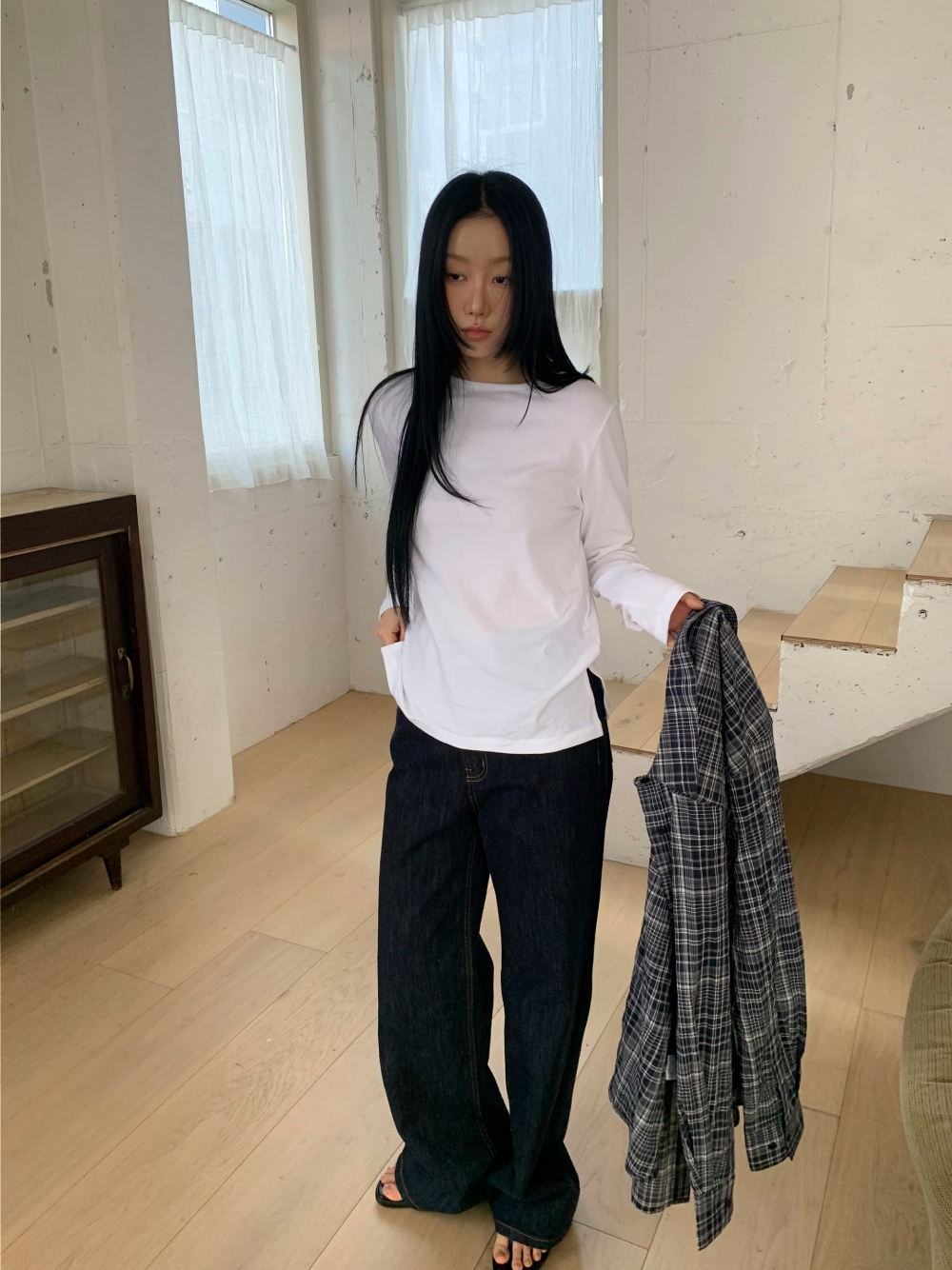 자연스럽게 떨어지는 실루엣이 멋스러운 데님입니다.