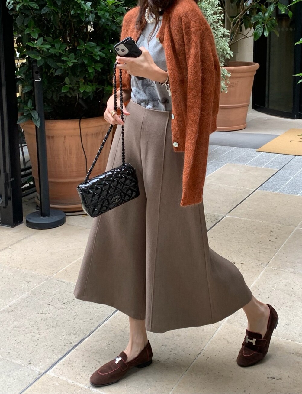 가을 분위기에 어울리는 모카, 블랙, 그레이 색상으로 구성된 로우게이지 디자인의 바지입니다. 트렌디한 로우게이지 스타일로 세련된 룩을 연출해 보세요.