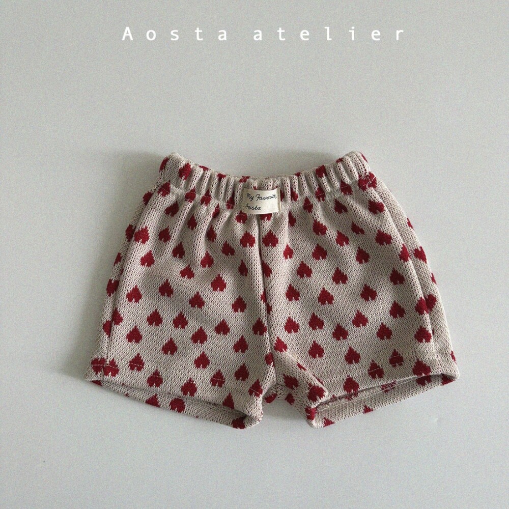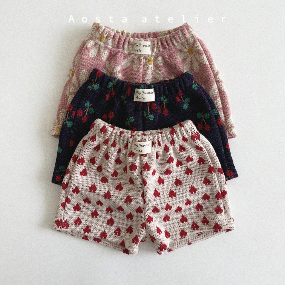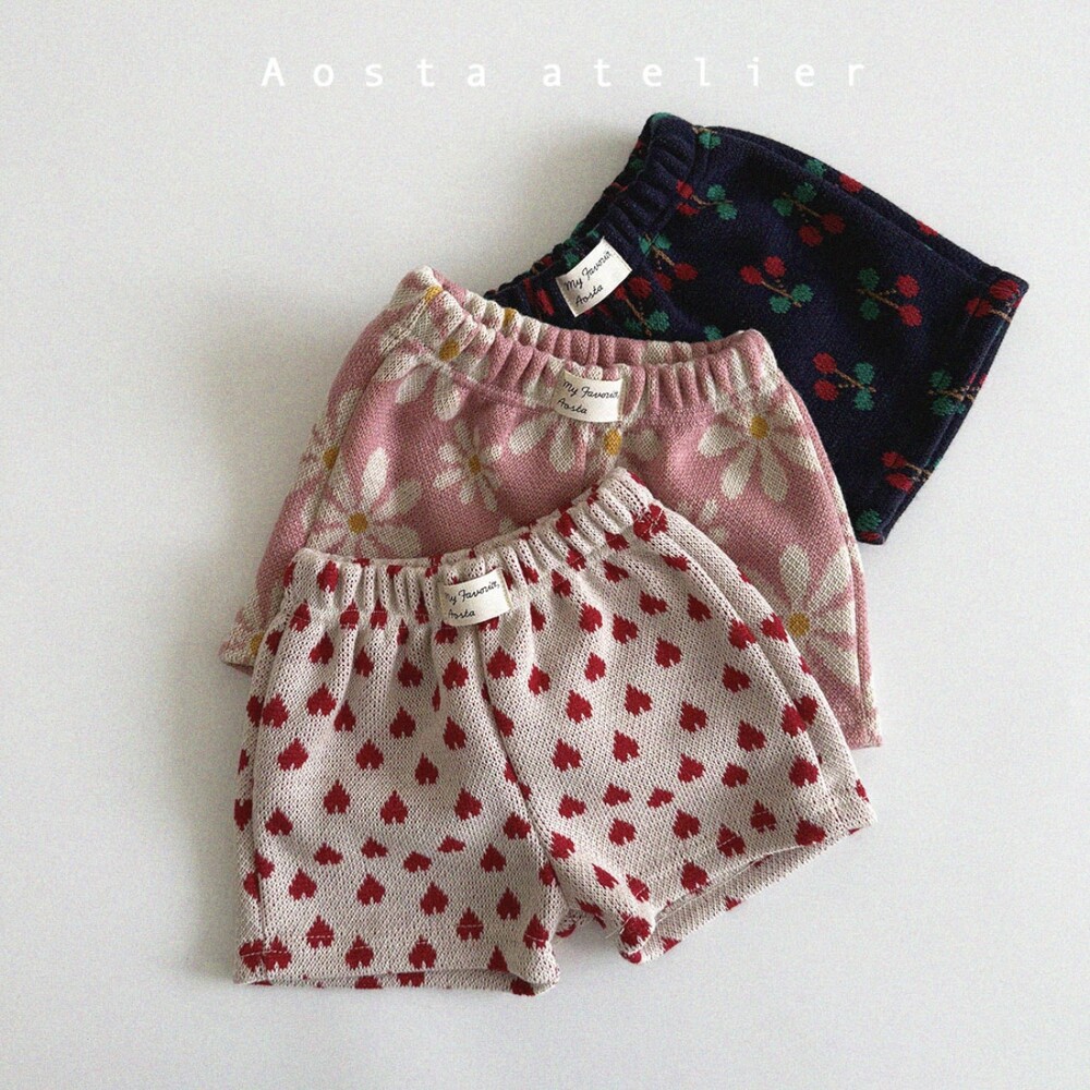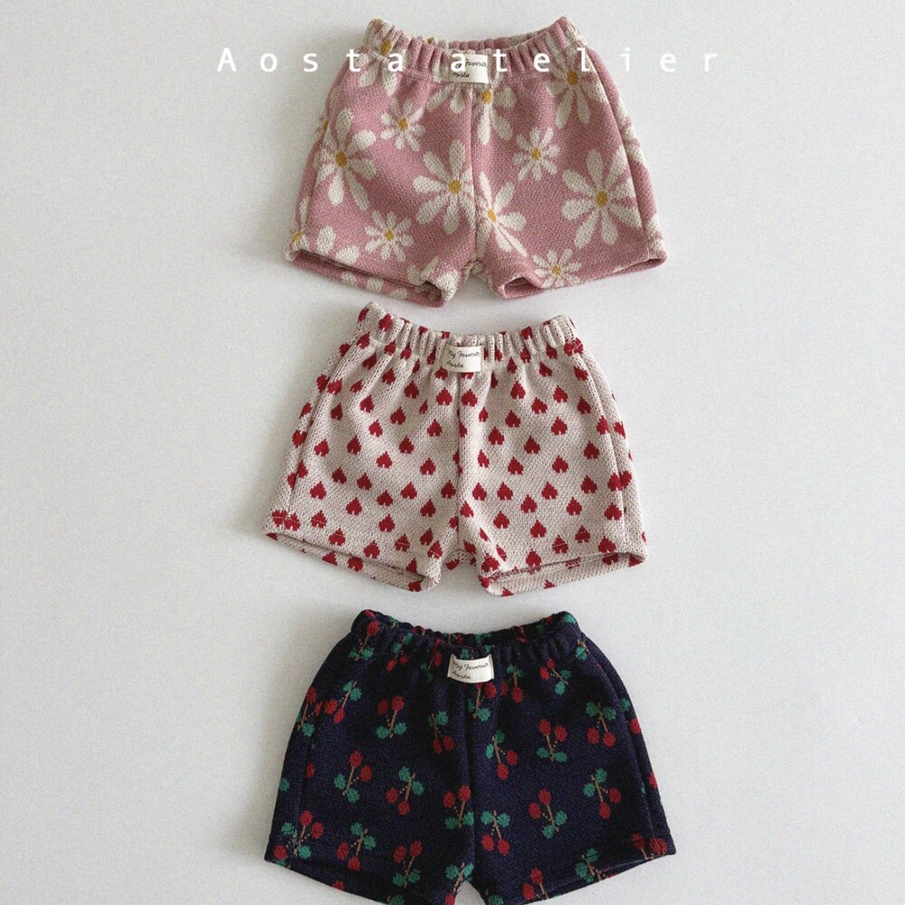 깜찍하고 사랑스러운 디테일 가득 체리,하트,플라워문양으로 가득 채워진 봄여름용 하프팬츠입니다.