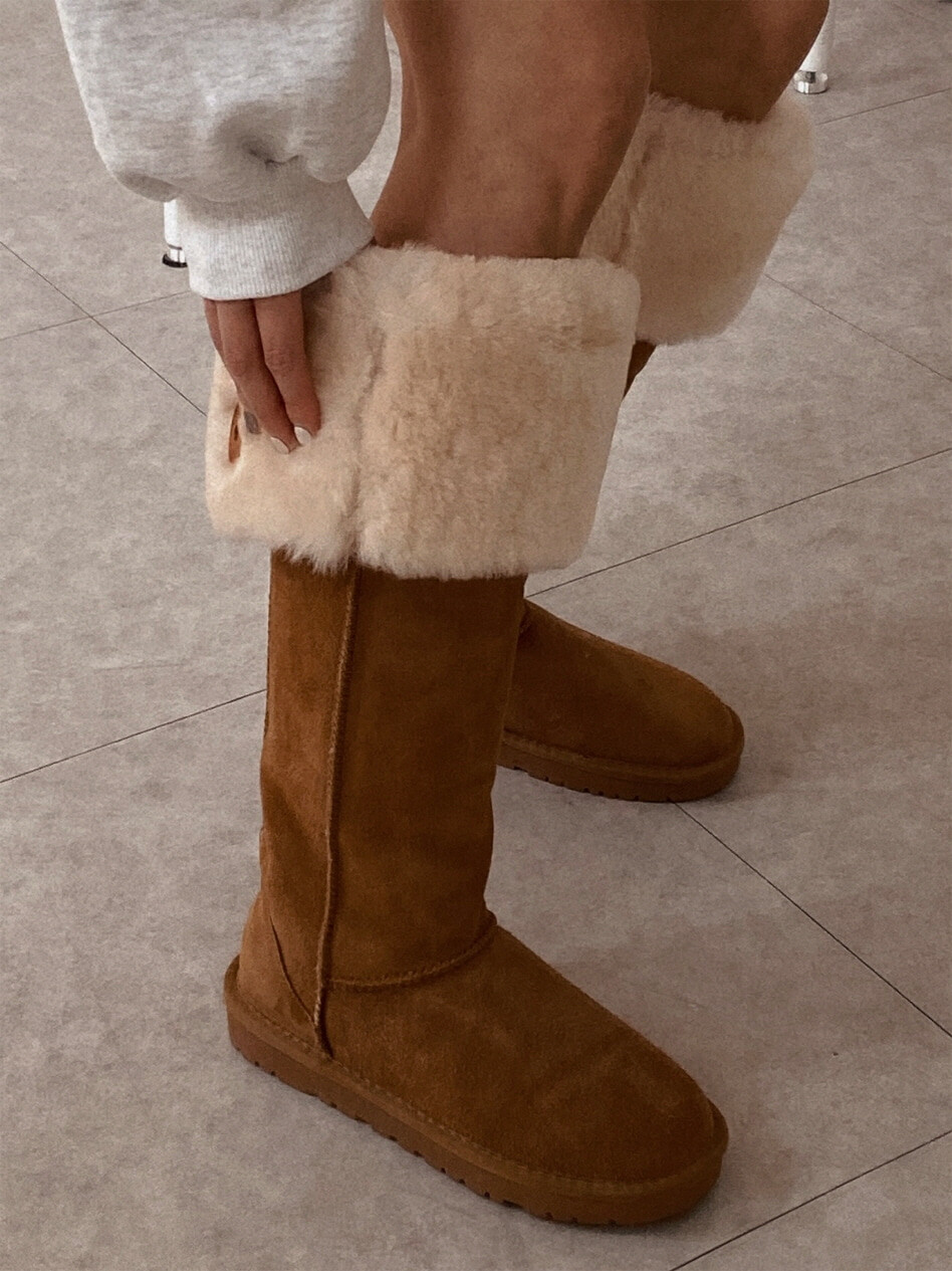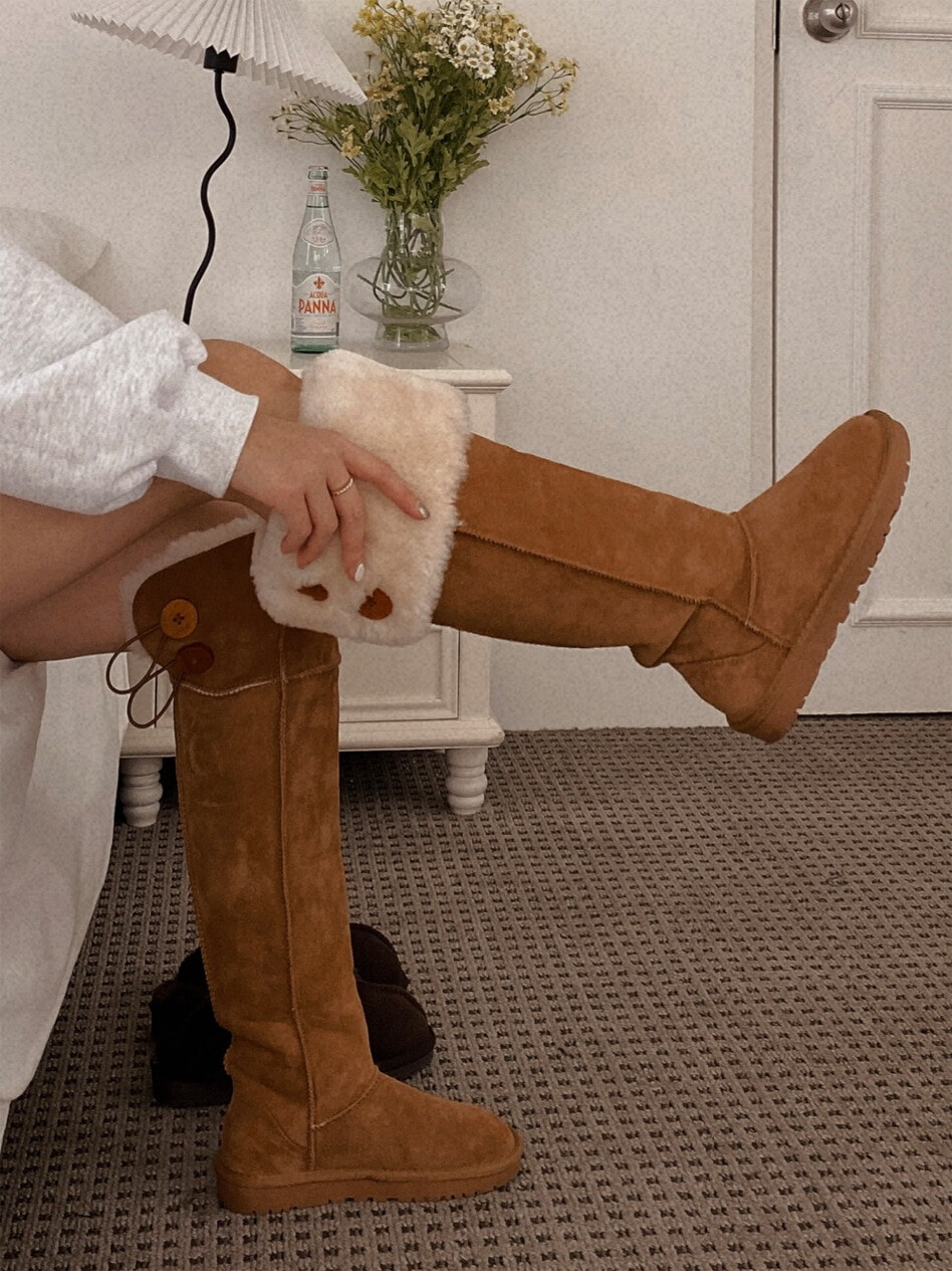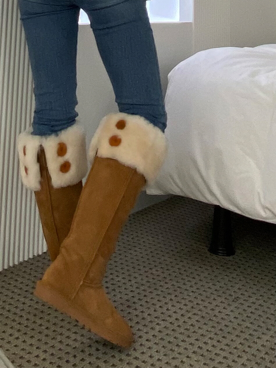 내부를 가득 채운 양털 안감이 발끝부터 무릎까지 포근하게 감싸줍니다.