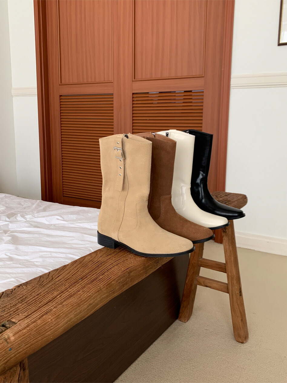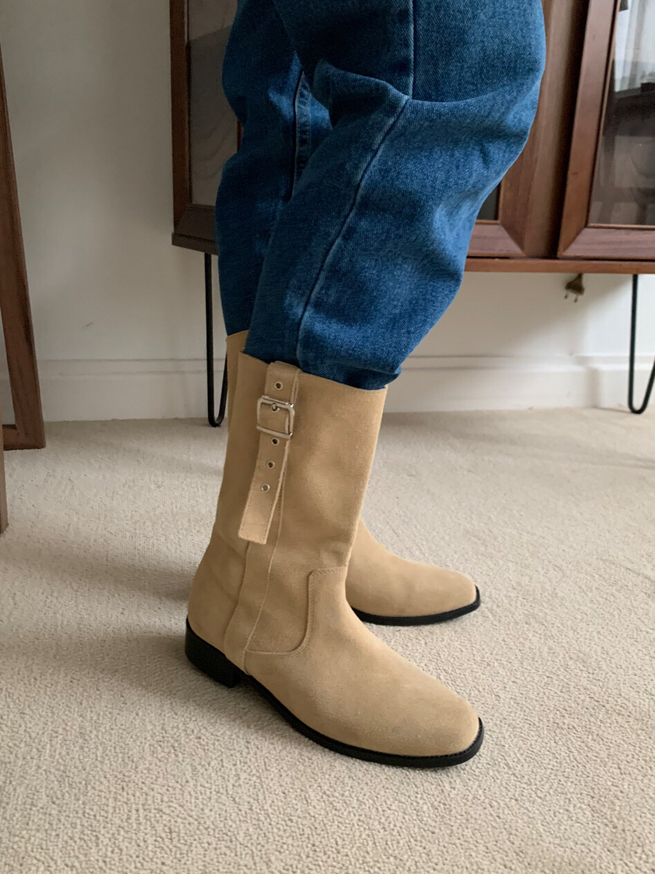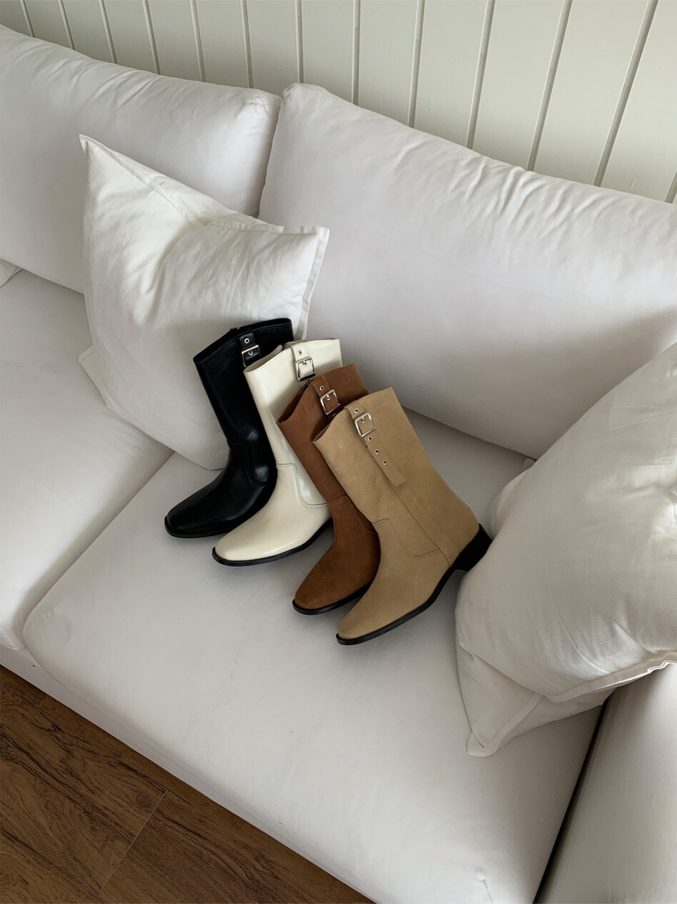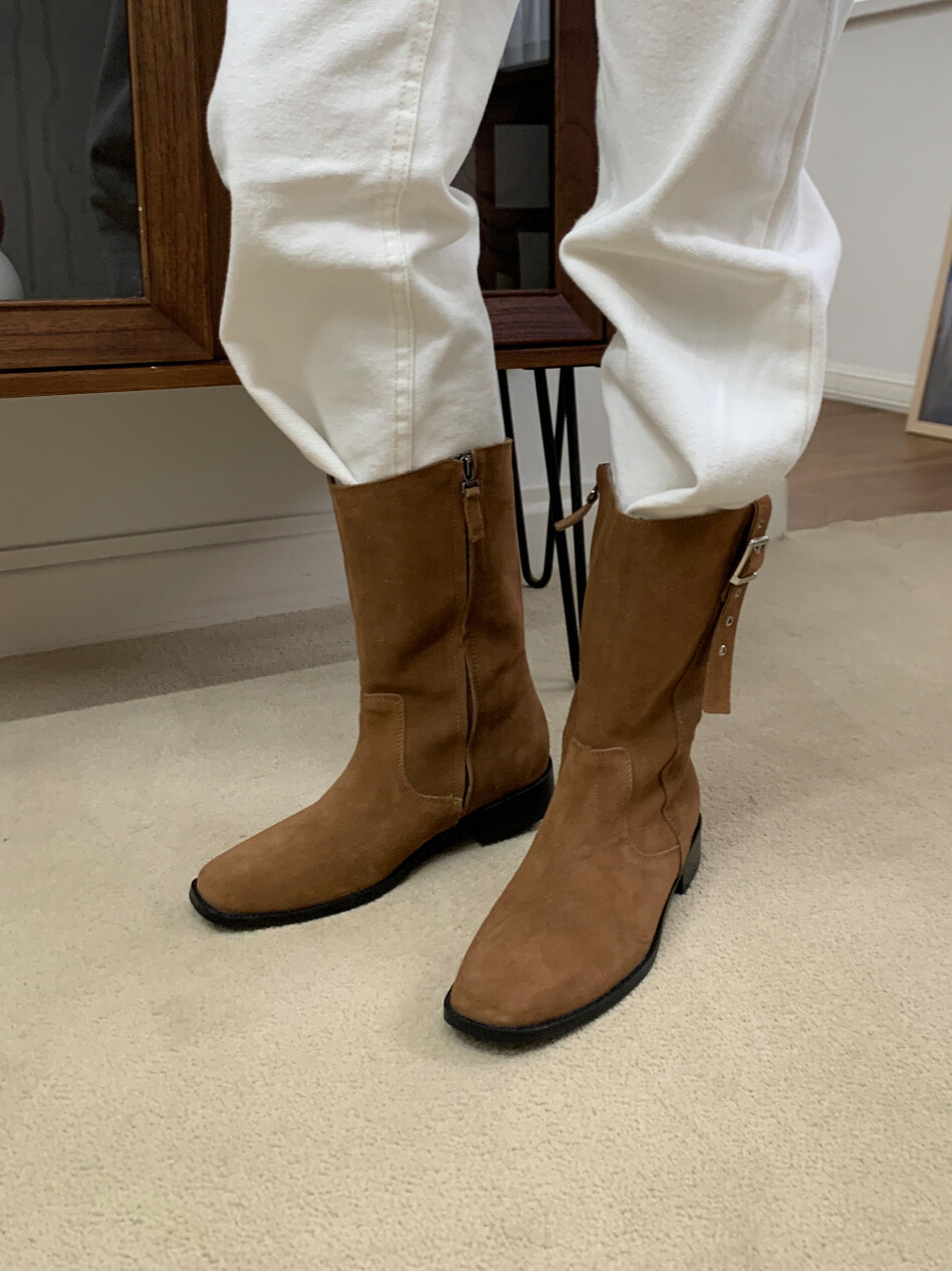 고급스러운 스웨이드와 레더 소재로 제작되어 부드럽고 자연스러운 텍스처를 자랑하며, 발목 위까지 올라오는 안정적인 기장감이 세련된 실루엣을 연출합니다. 측면 버클 디테일로 웨스턴 무드의 포인트를 더했으며, 사이드 지퍼로 손쉽게 착용할 수 있어 실용성을 높였습니다.