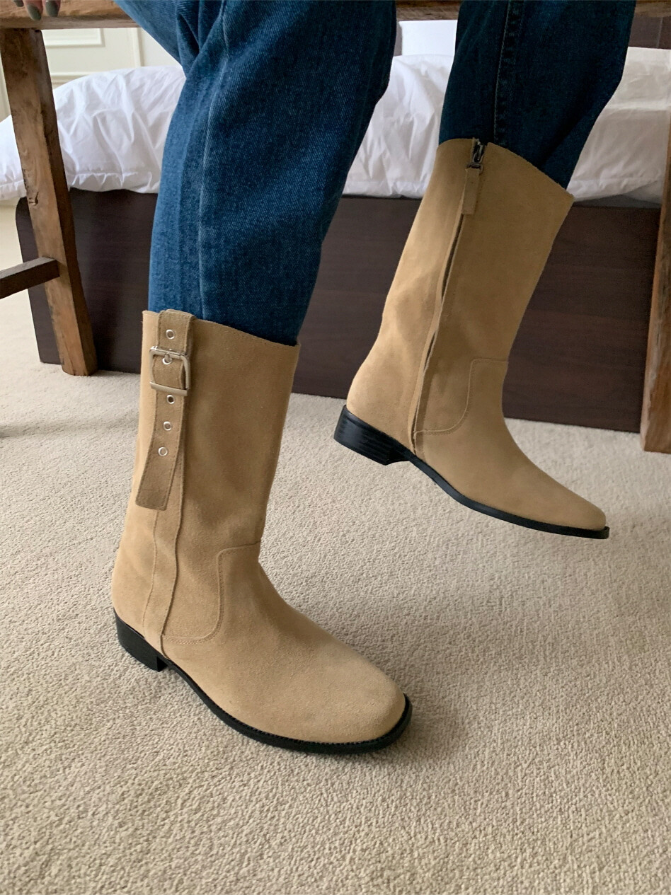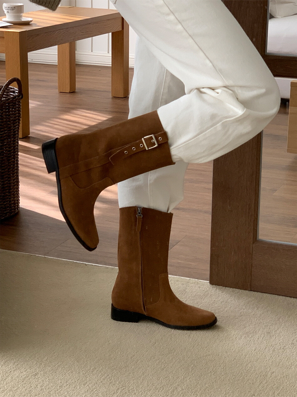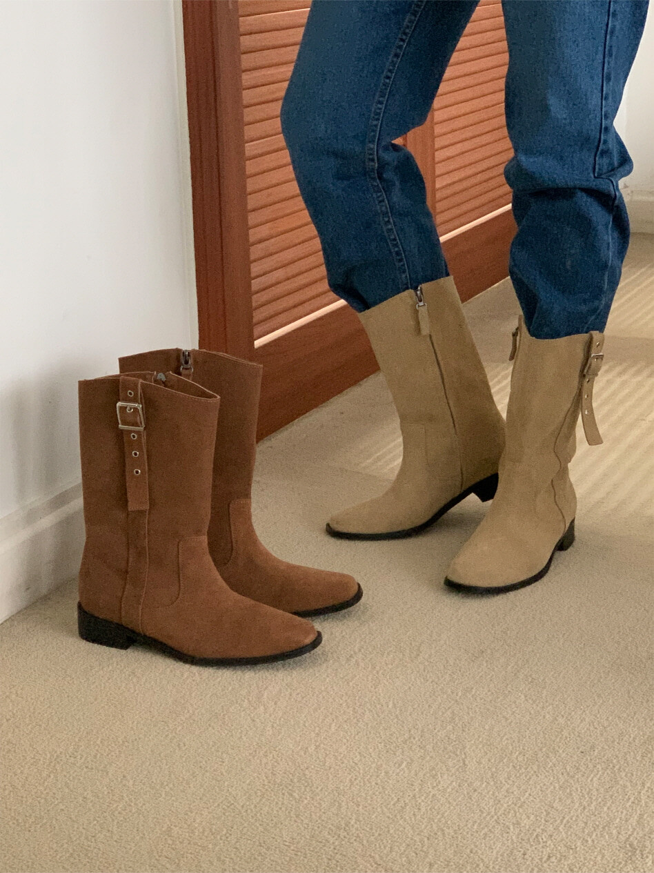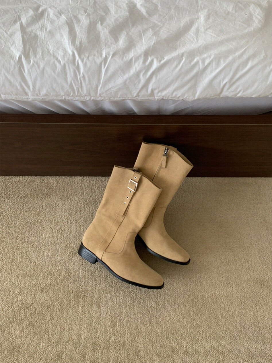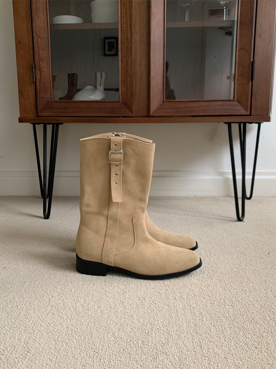 고급스러운 스웨이드와 레더 소재로 제작되어 부드럽고 자연스러운 텍스처를 자랑하며, 발목 위까지 올라오는 안정적인 기장감이 세련된 실루엣을 연출합니다. 측면 버클 디테일로 웨스턴 무드의 포인트를 더했으며, 사이드 지퍼로 손쉽게 착용할 수 있어 실용성을 높였습니다.
