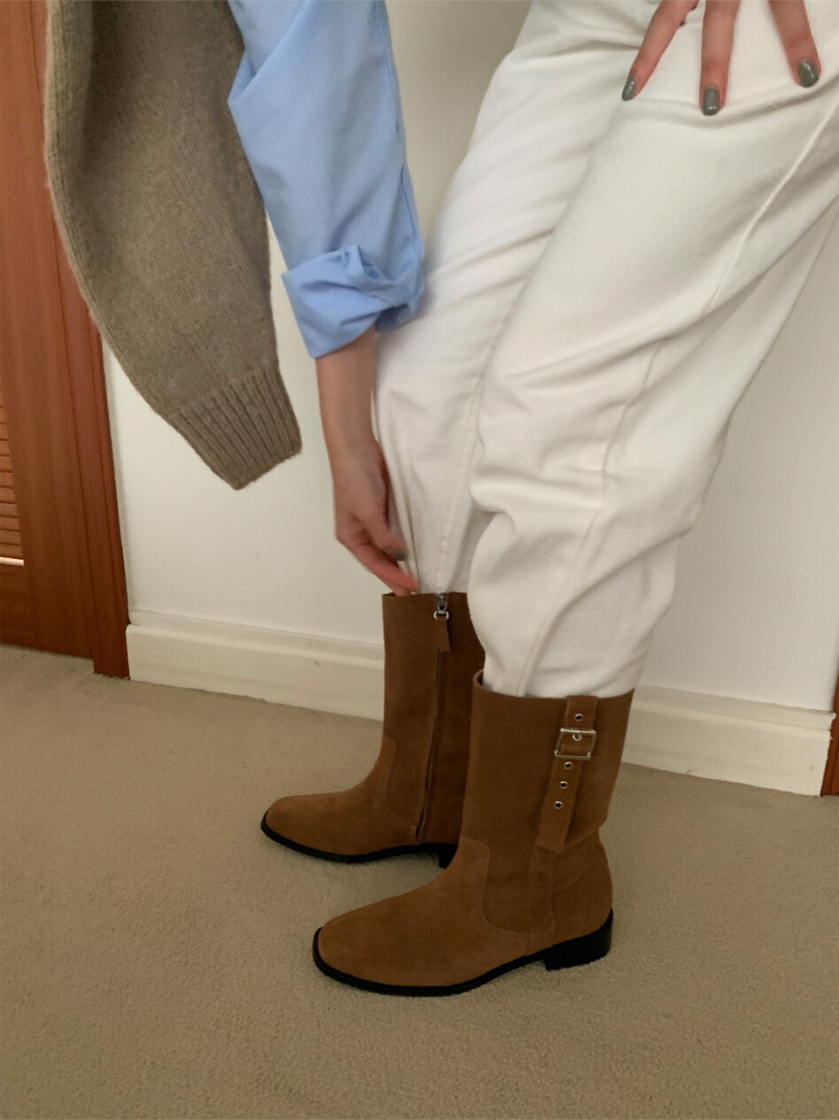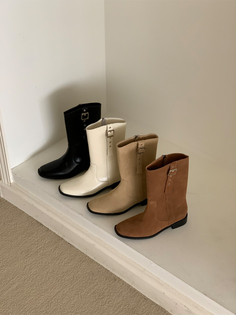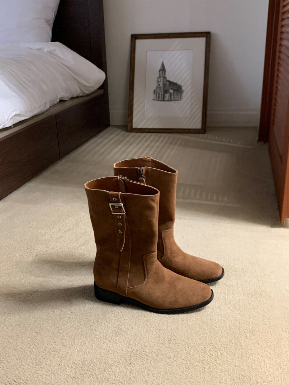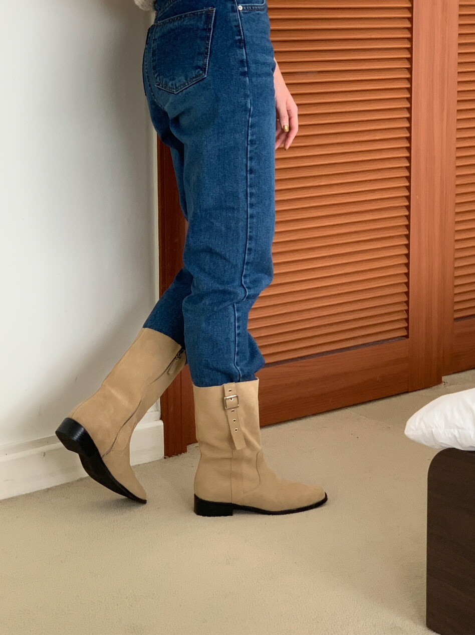 고급스러운 스웨이드와 레더 소재로 제작되어 부드럽고 자연스러운 텍스처를 자랑하며, 발목 위까지 올라오는 안정적인 기장감이 세련된 실루엣을 연출합니다. 측면 버클 디테일로 웨스턴 무드의 포인트를 더했으며, 사이드 지퍼로 손쉽게 착용할 수 있어 실용성을 높였습니다.