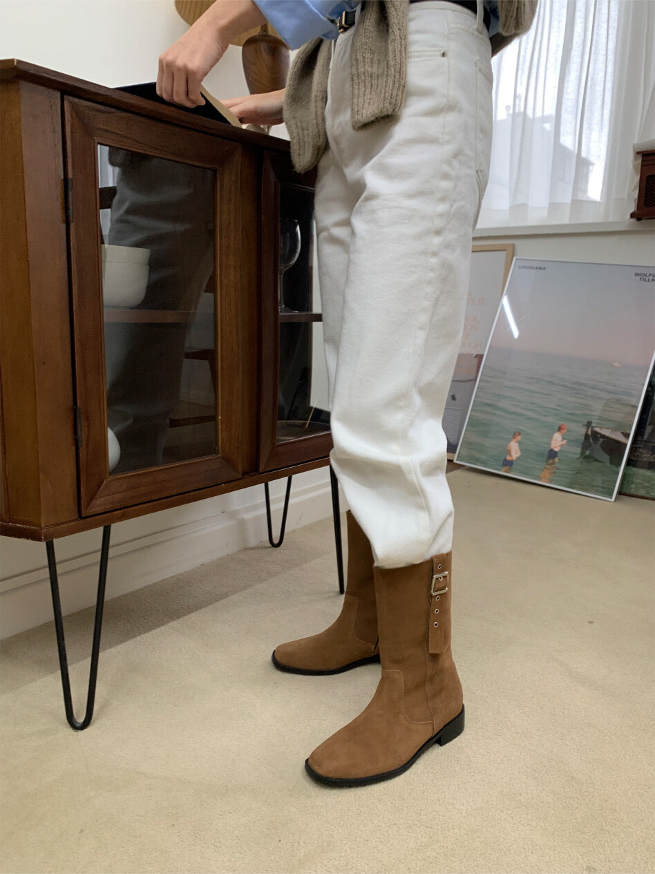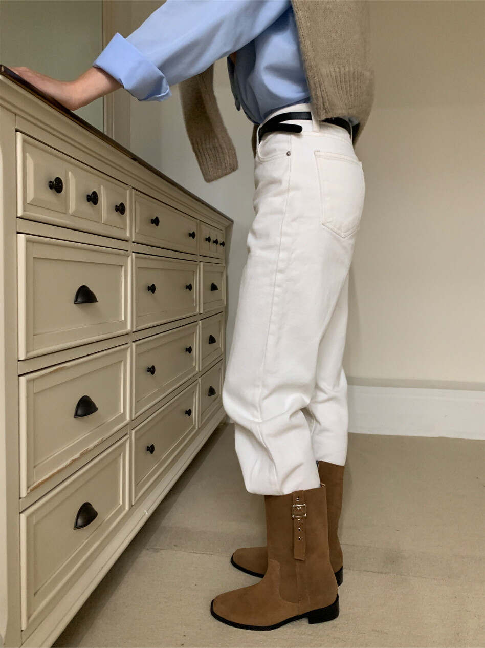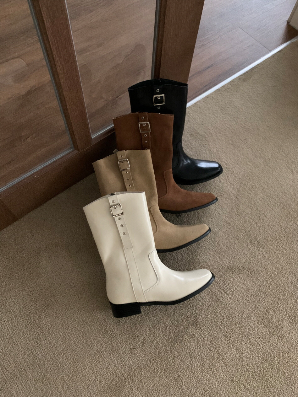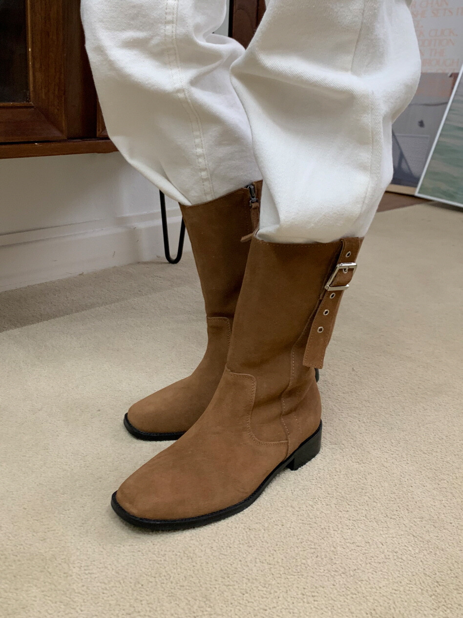 고급스러운 스웨이드와 레더 소재로 제작되어 부드럽고 자연스러운 텍스처를 자랑하며, 발목 위까지 올라오는 안정적인 기장감이 세련된 실루엣을 연출합니다. 측면 버클 디테일로 웨스턴 무드의 포인트를 더했으며, 사이드 지퍼로 손쉽게 착용할 수 있어 실용성을 높였습니다.