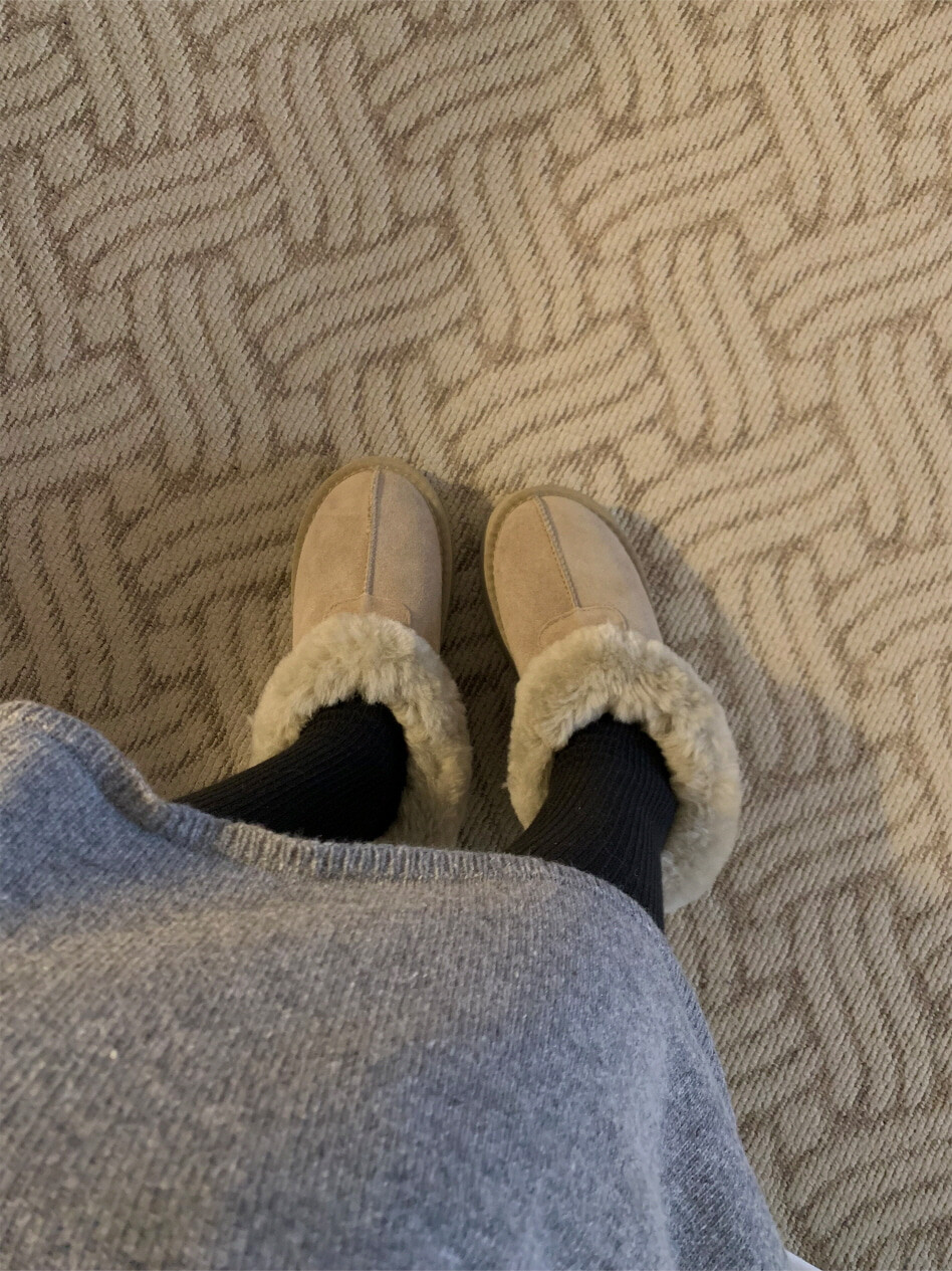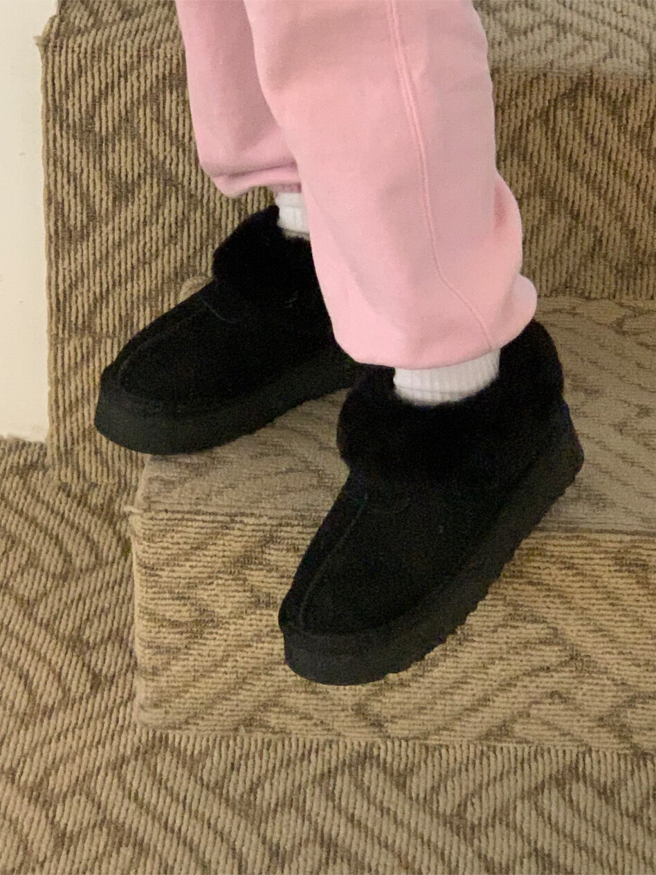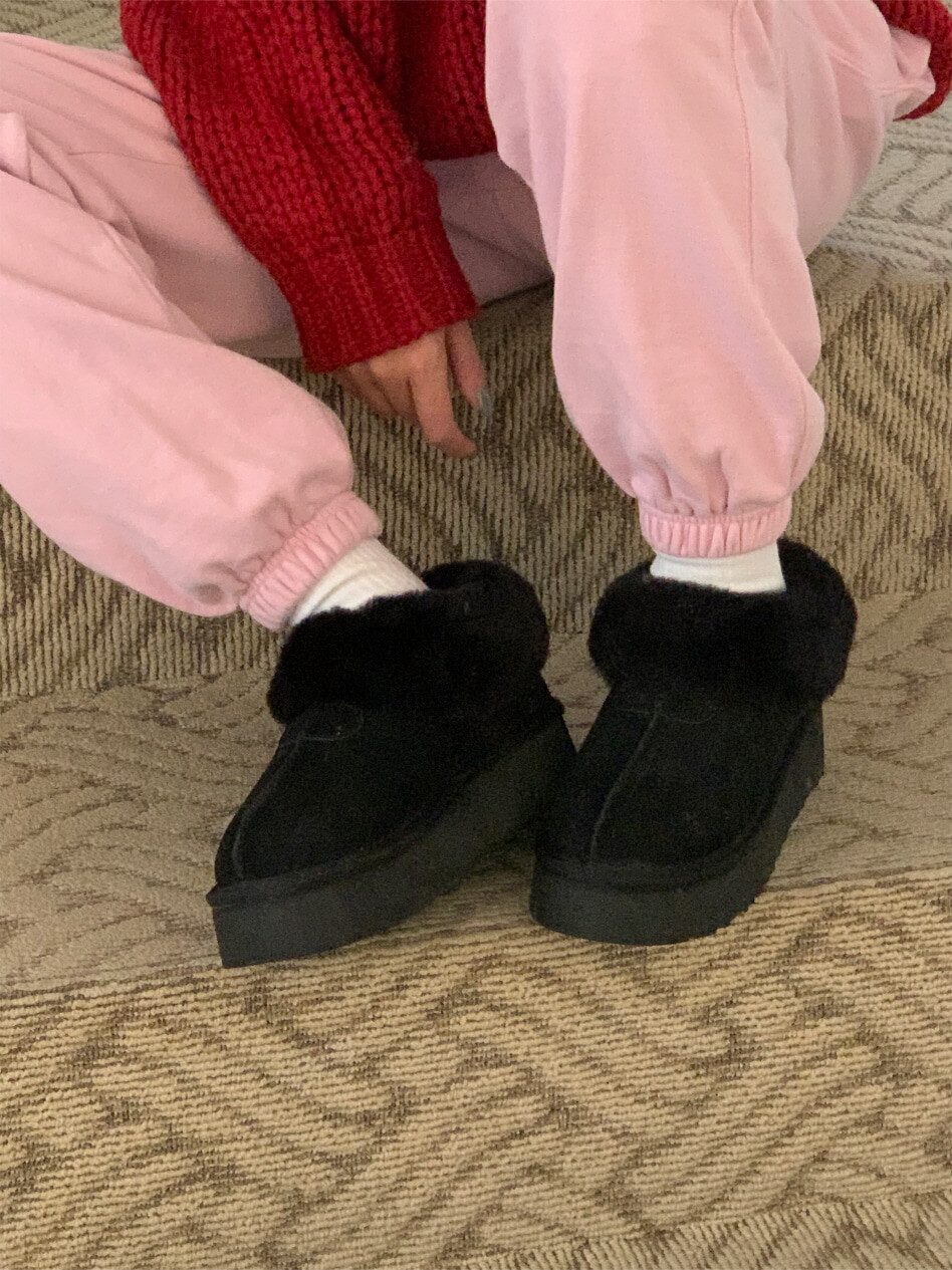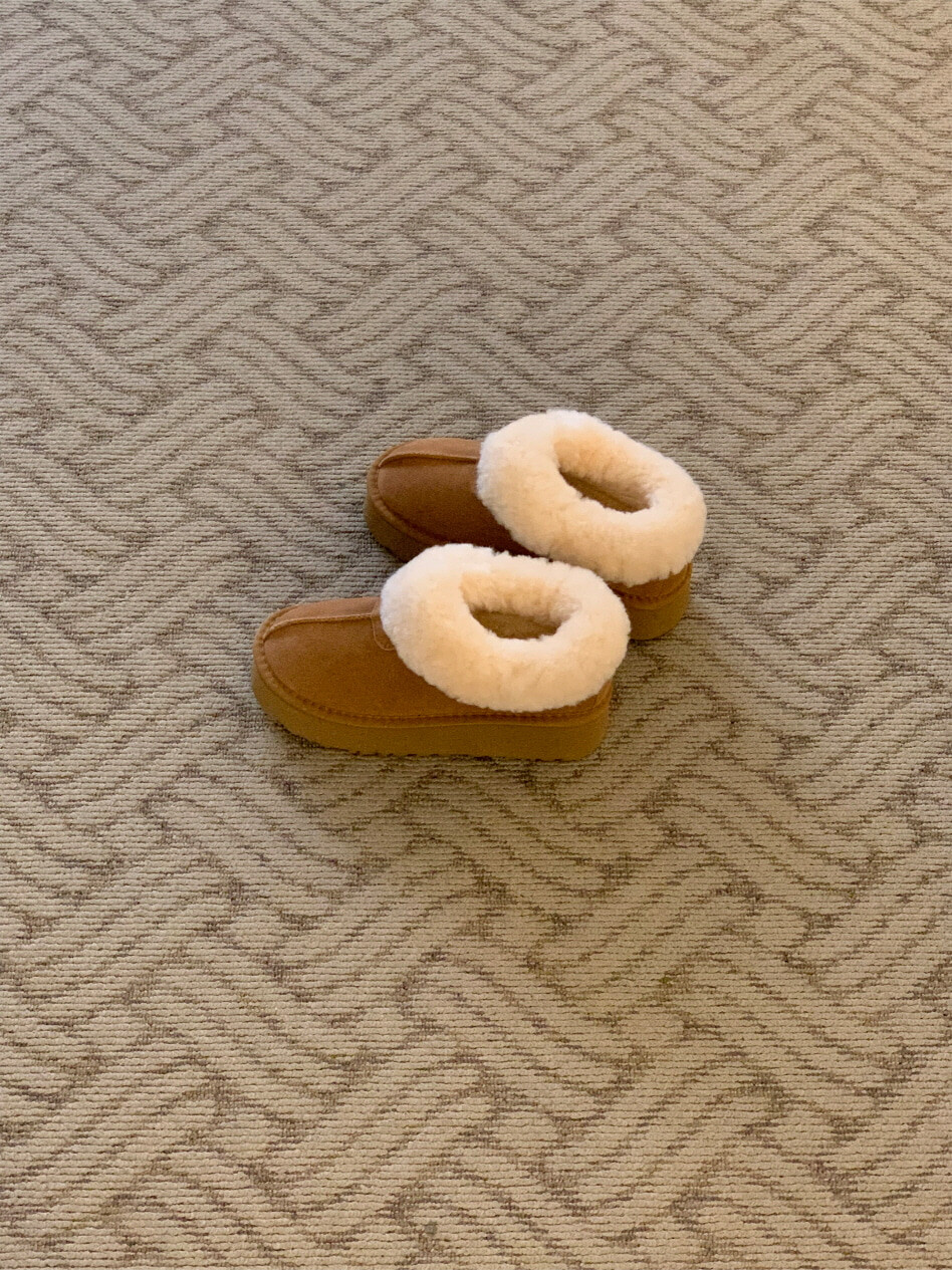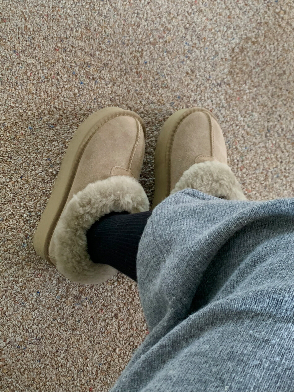 여성어그 타제트 소가죽 숏 어그 스웨이드 울 양털 통굽 블로퍼 4cm