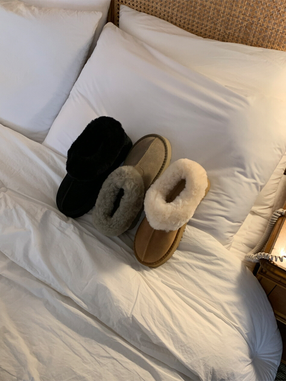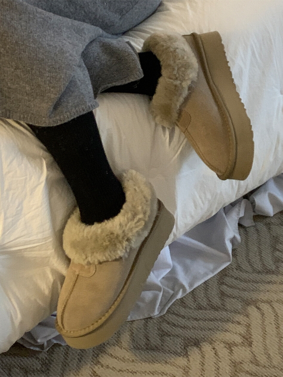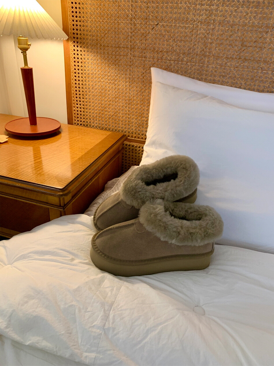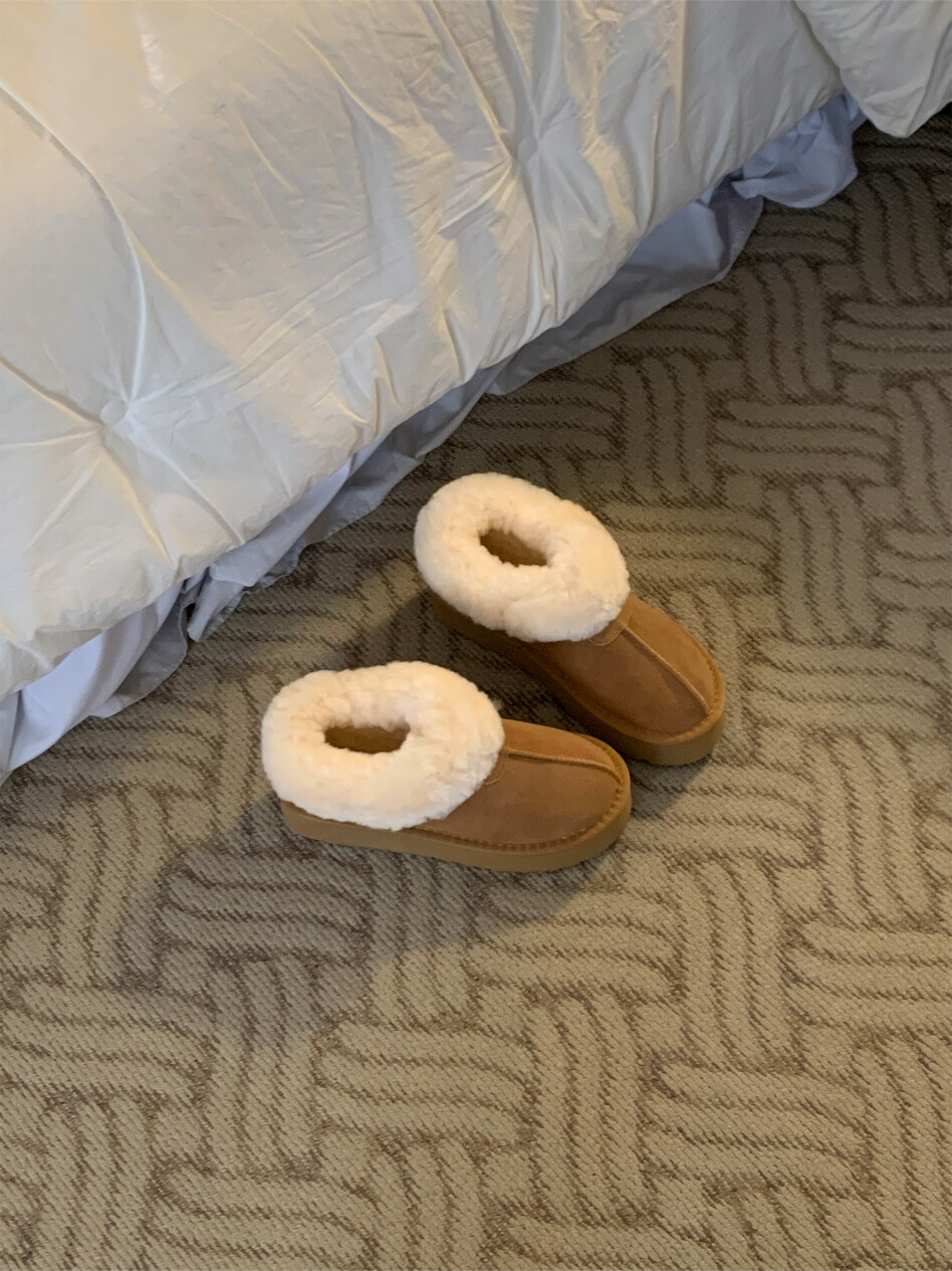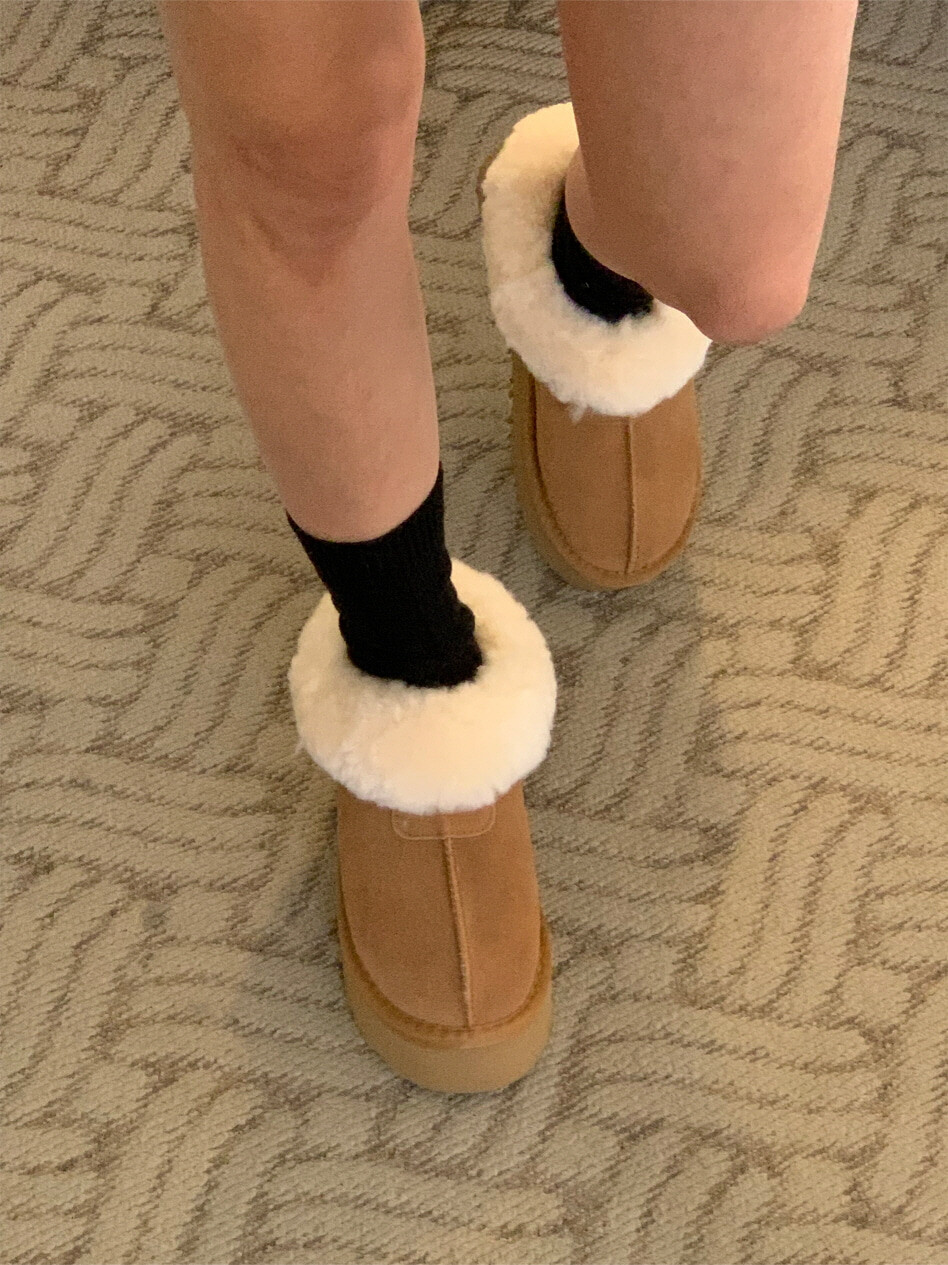 여성어그 타제트 소가죽 숏 어그 스웨이드 울 양털 통굽 블로퍼 4cm