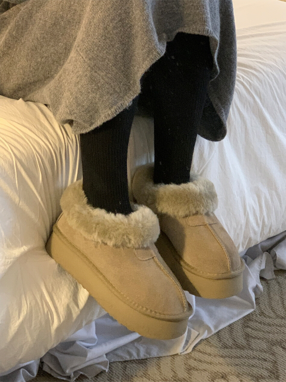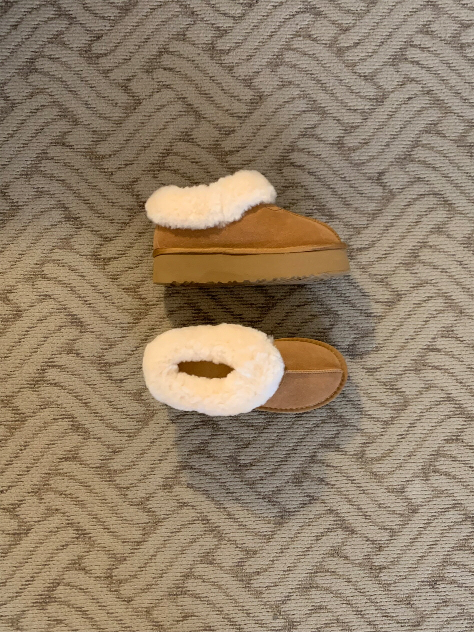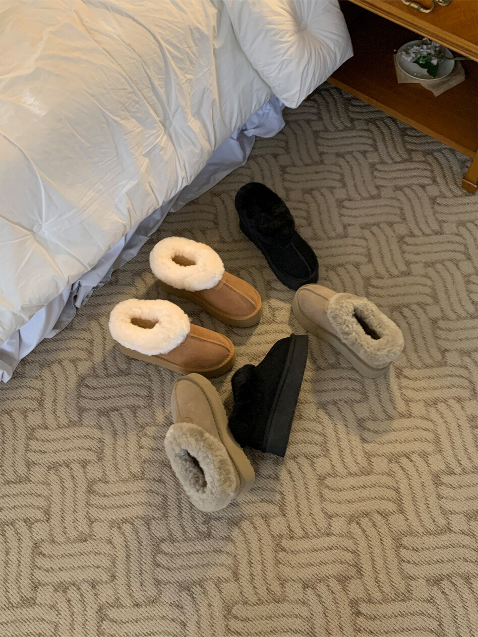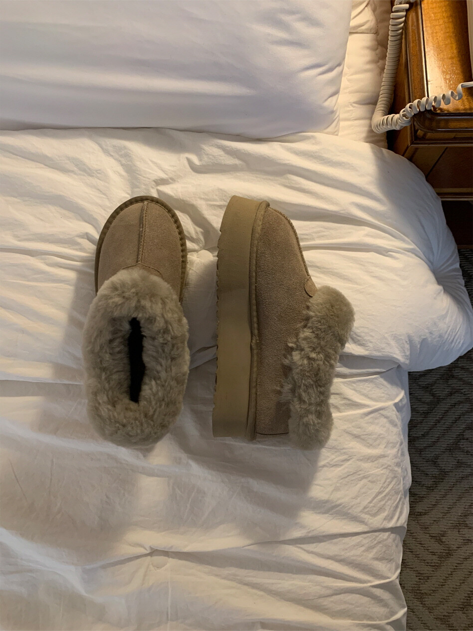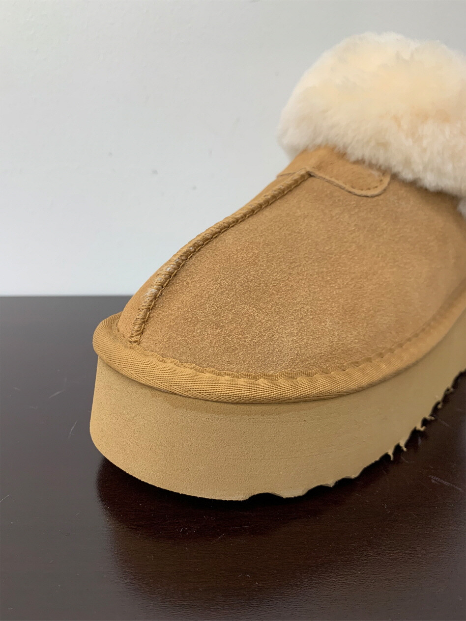 여성어그 타제트 소가죽 숏 어그 스웨이드 울 양털 통굽 블로퍼 4cm