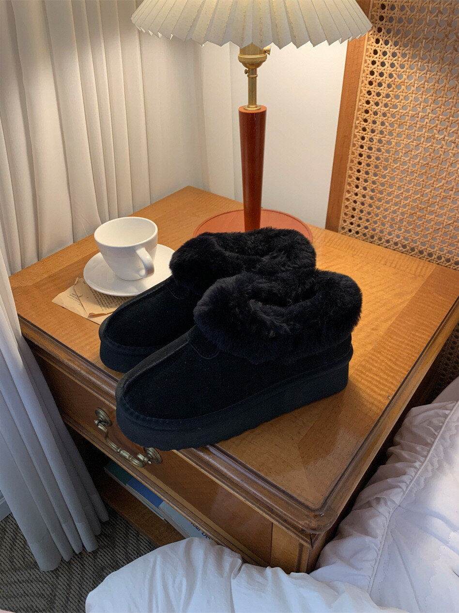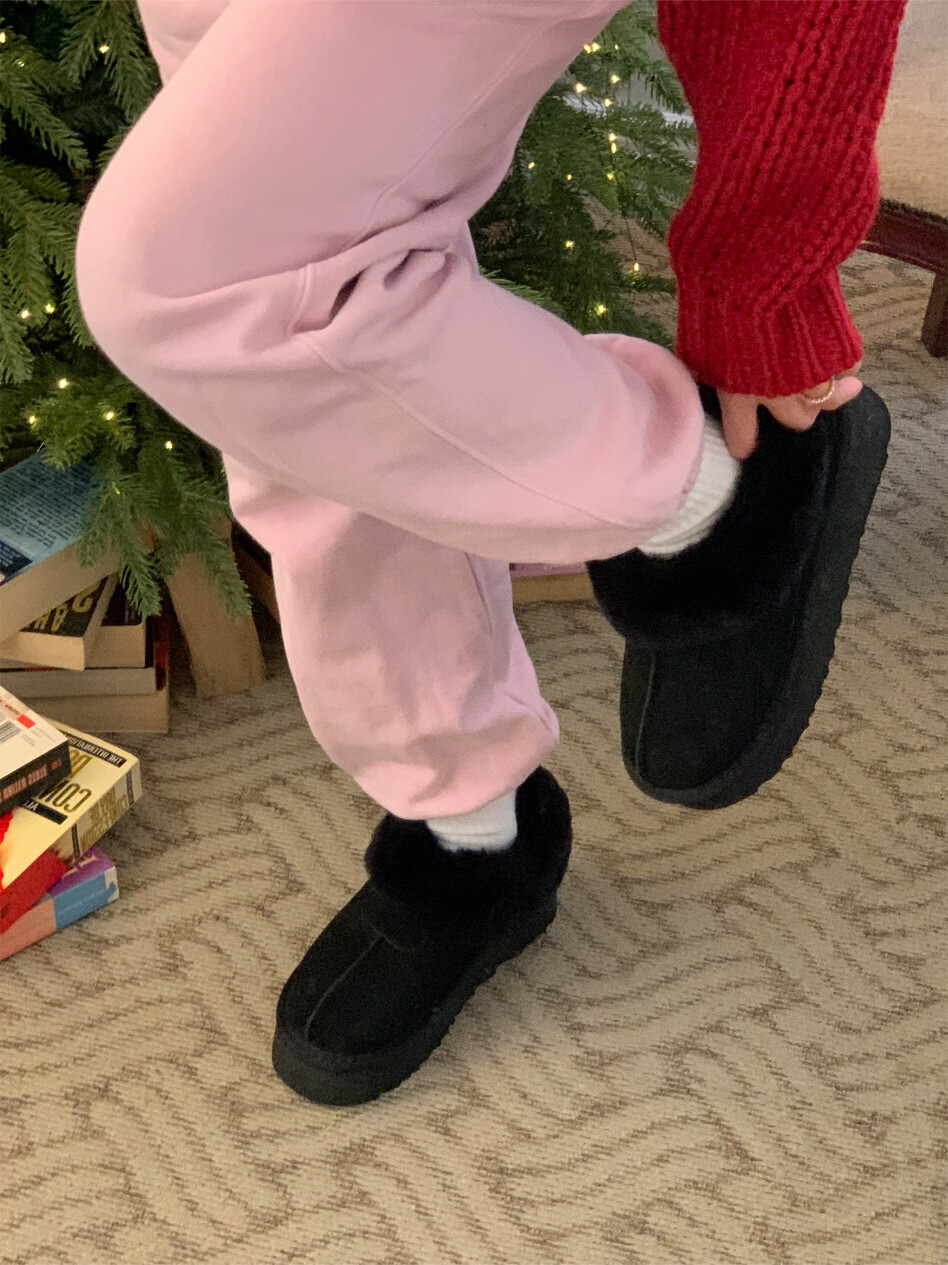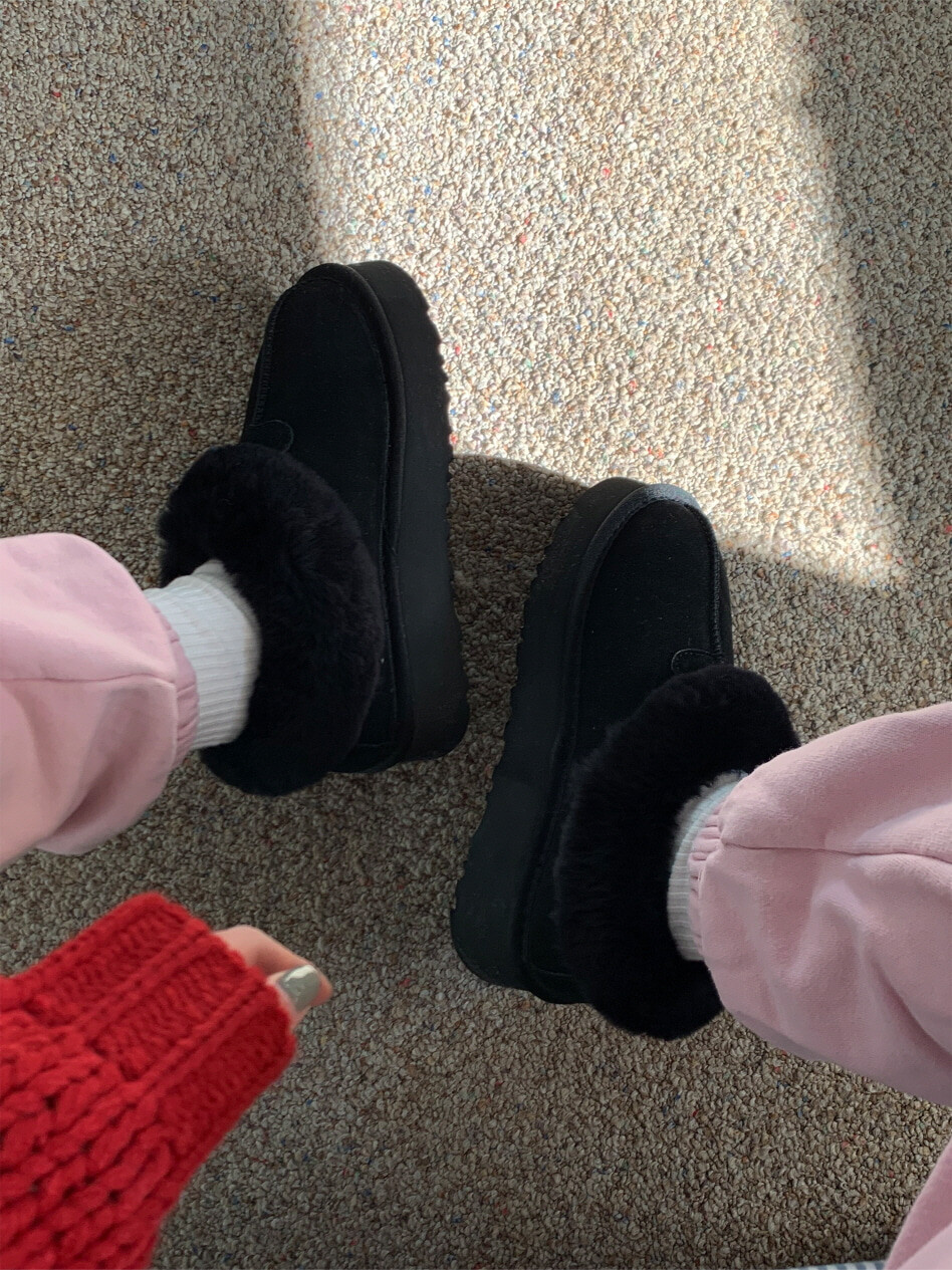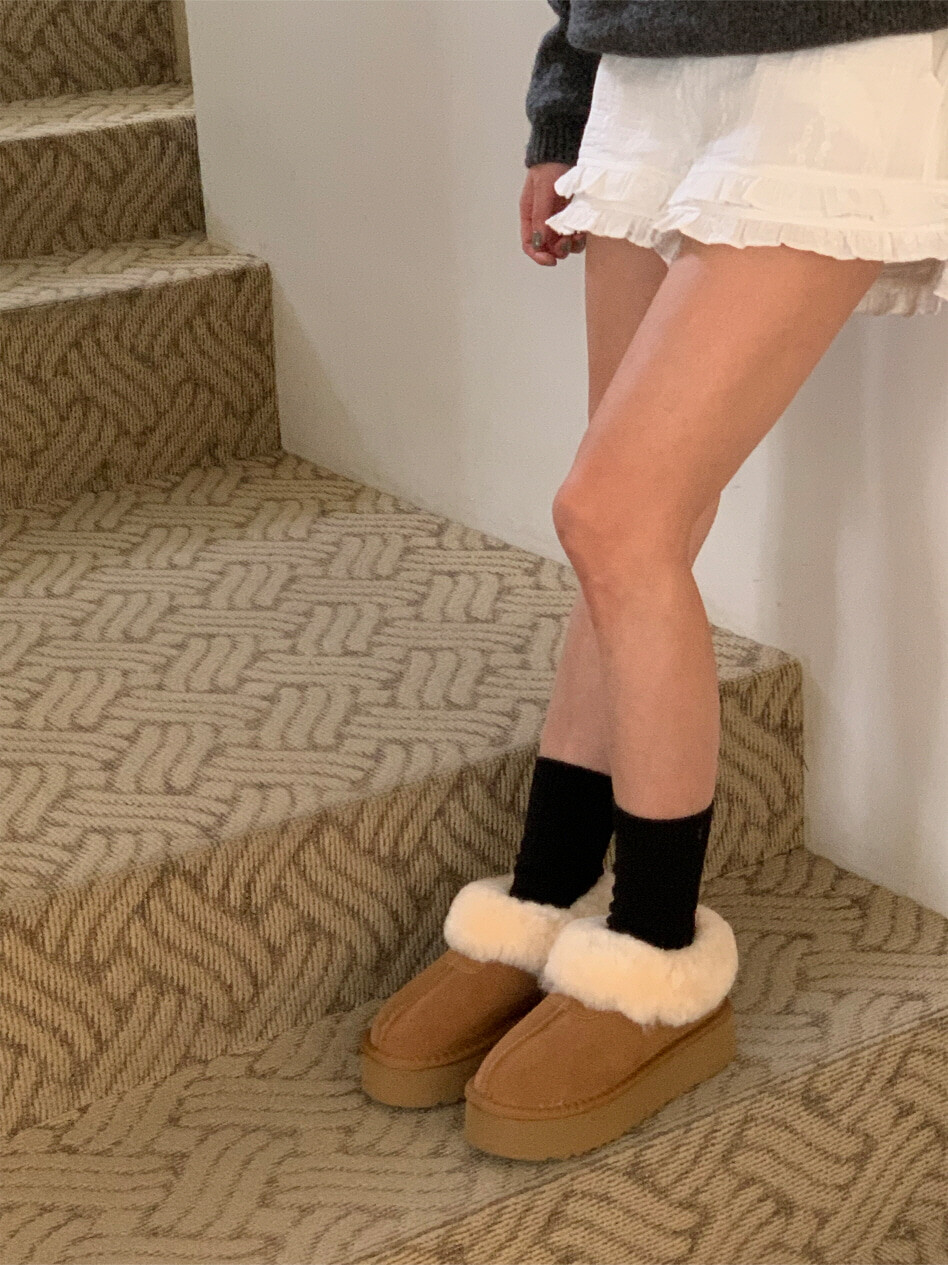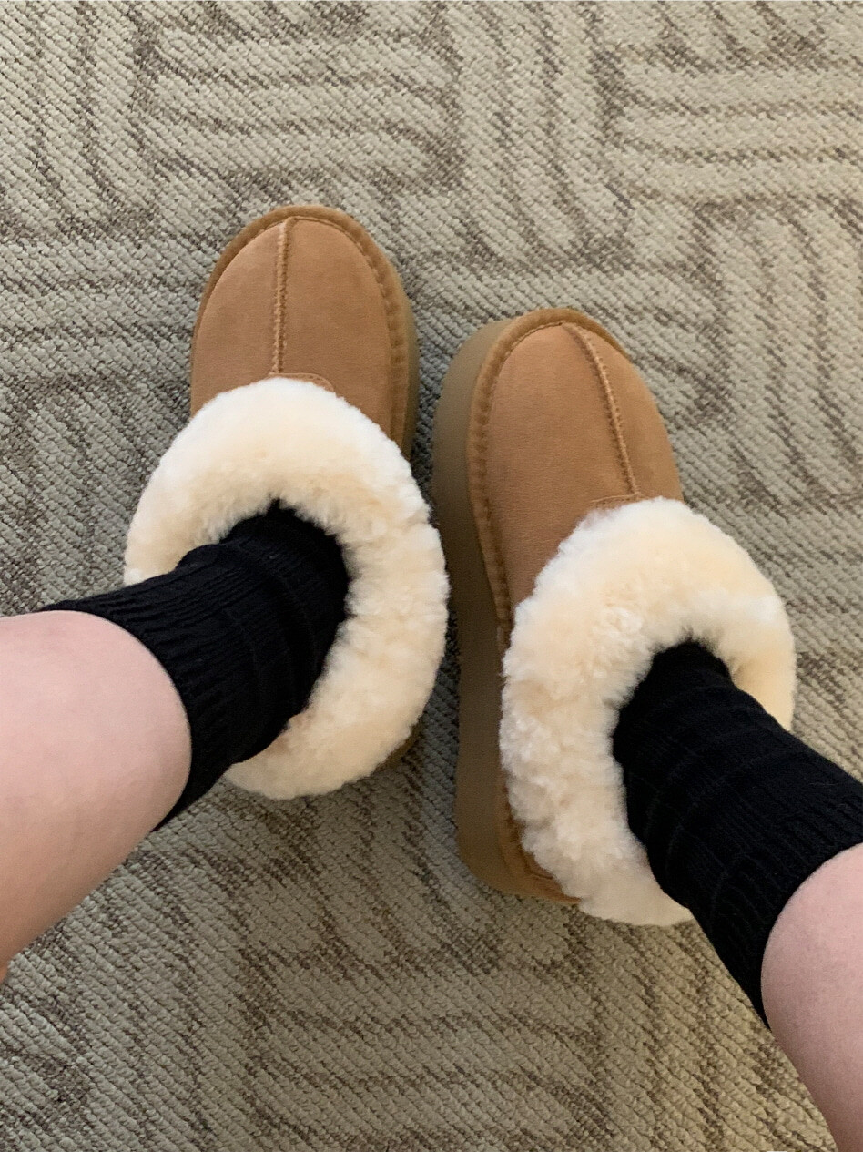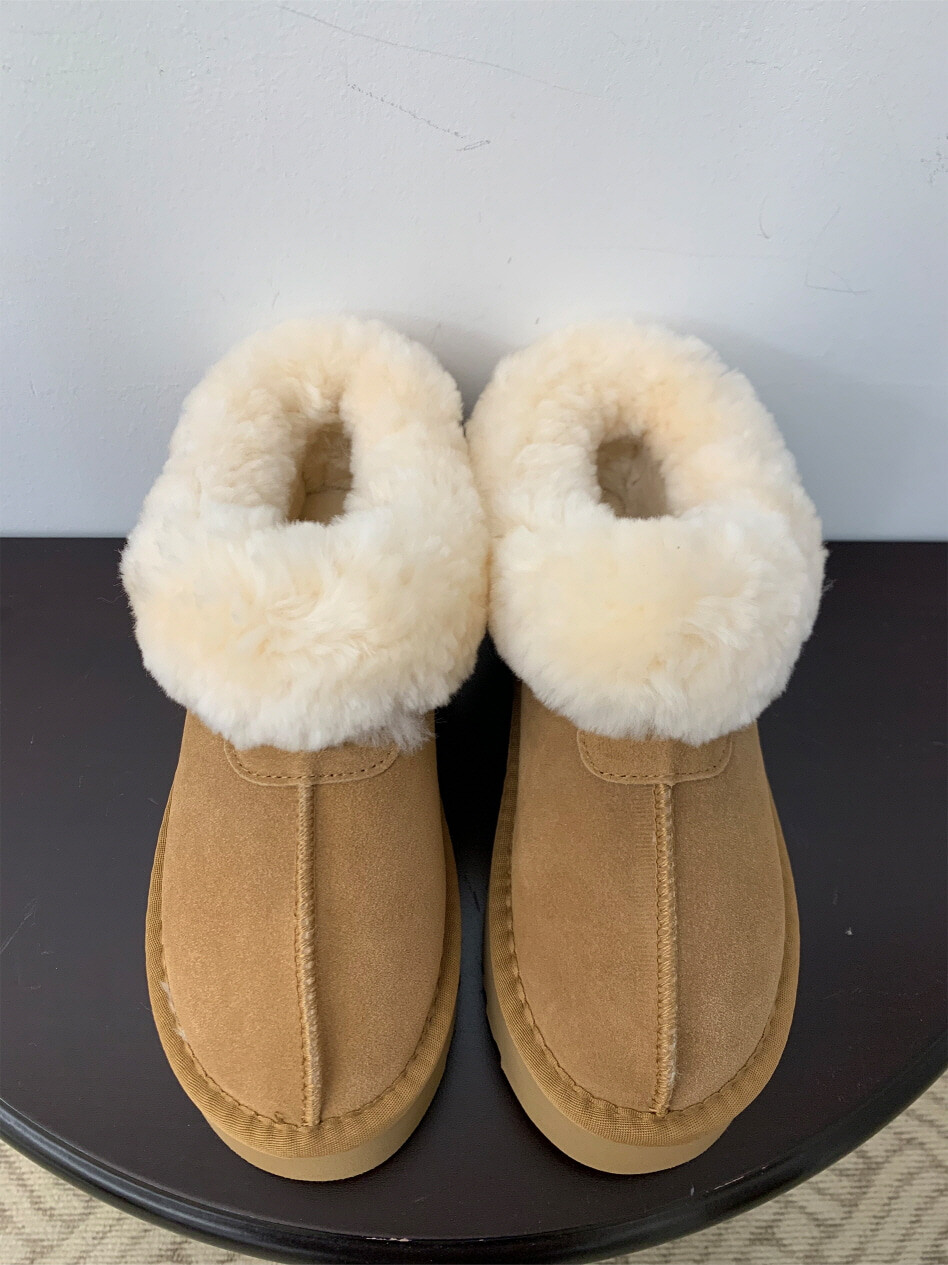 여성어그 타제트 소가죽 숏 어그 스웨이드 울 양털 통굽 블로퍼 4cm