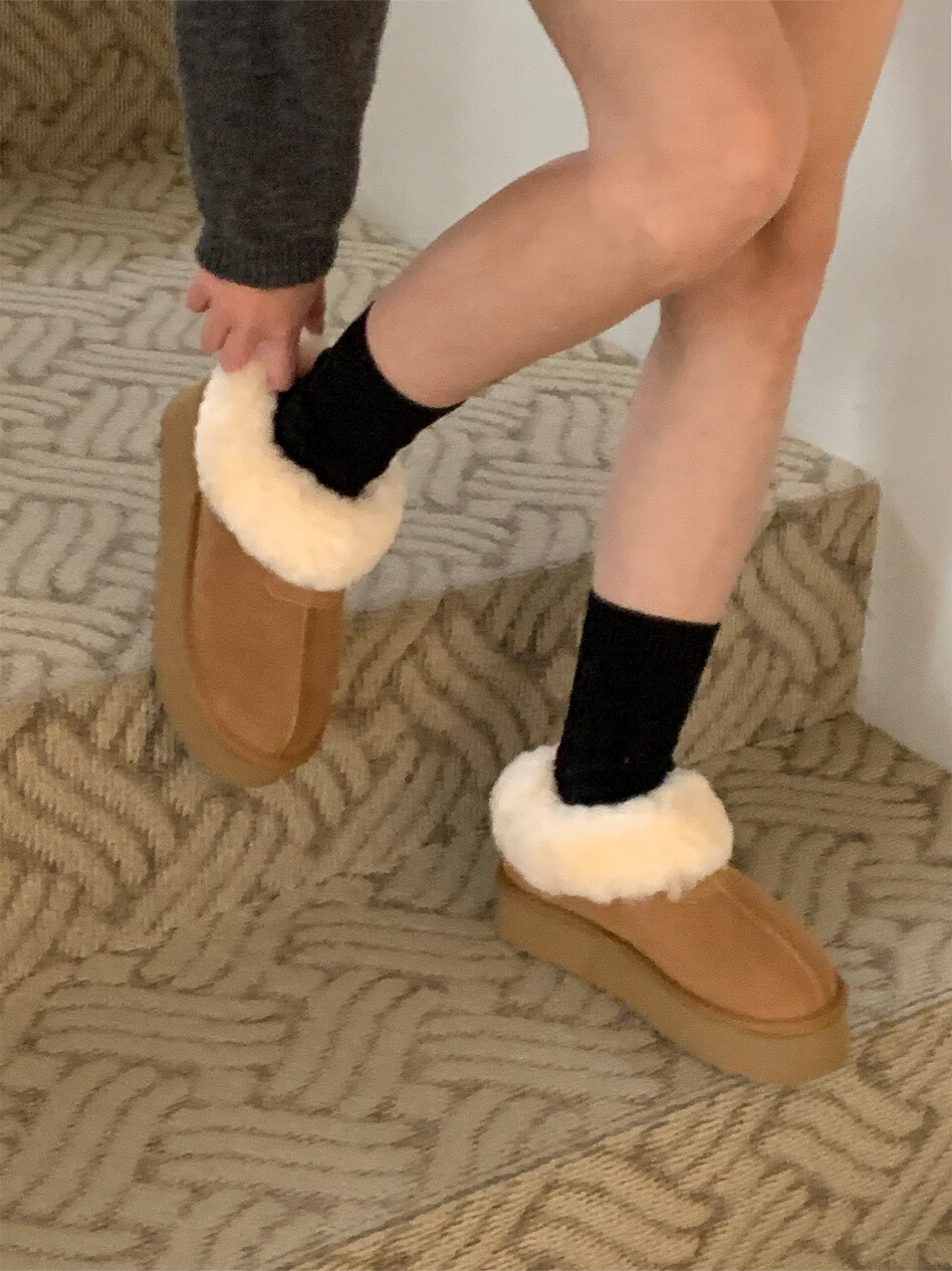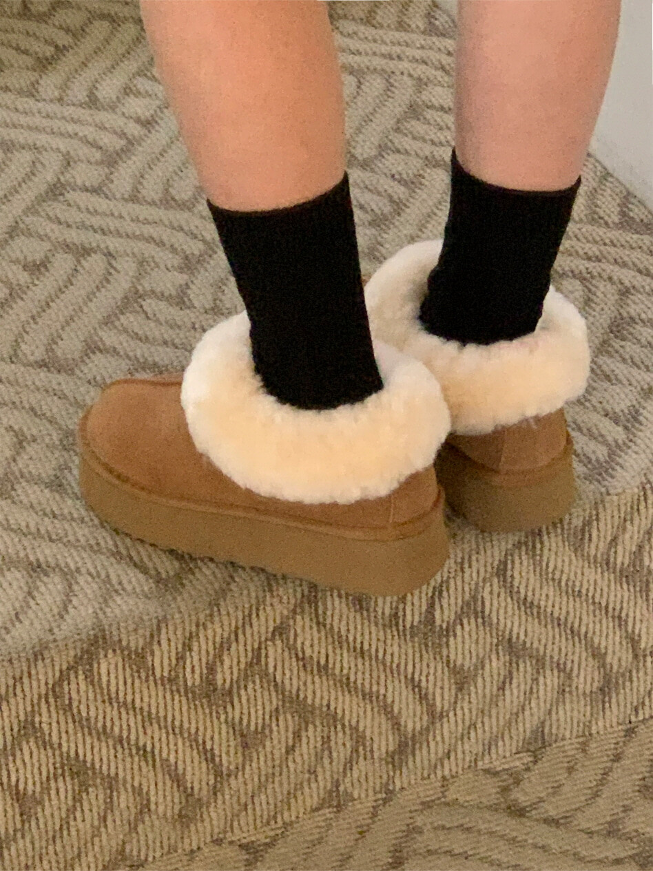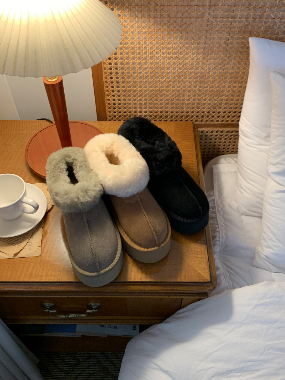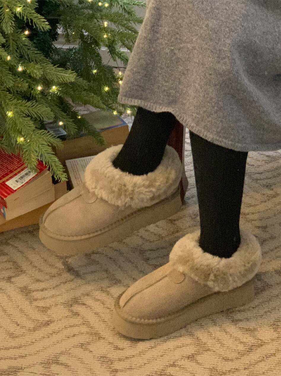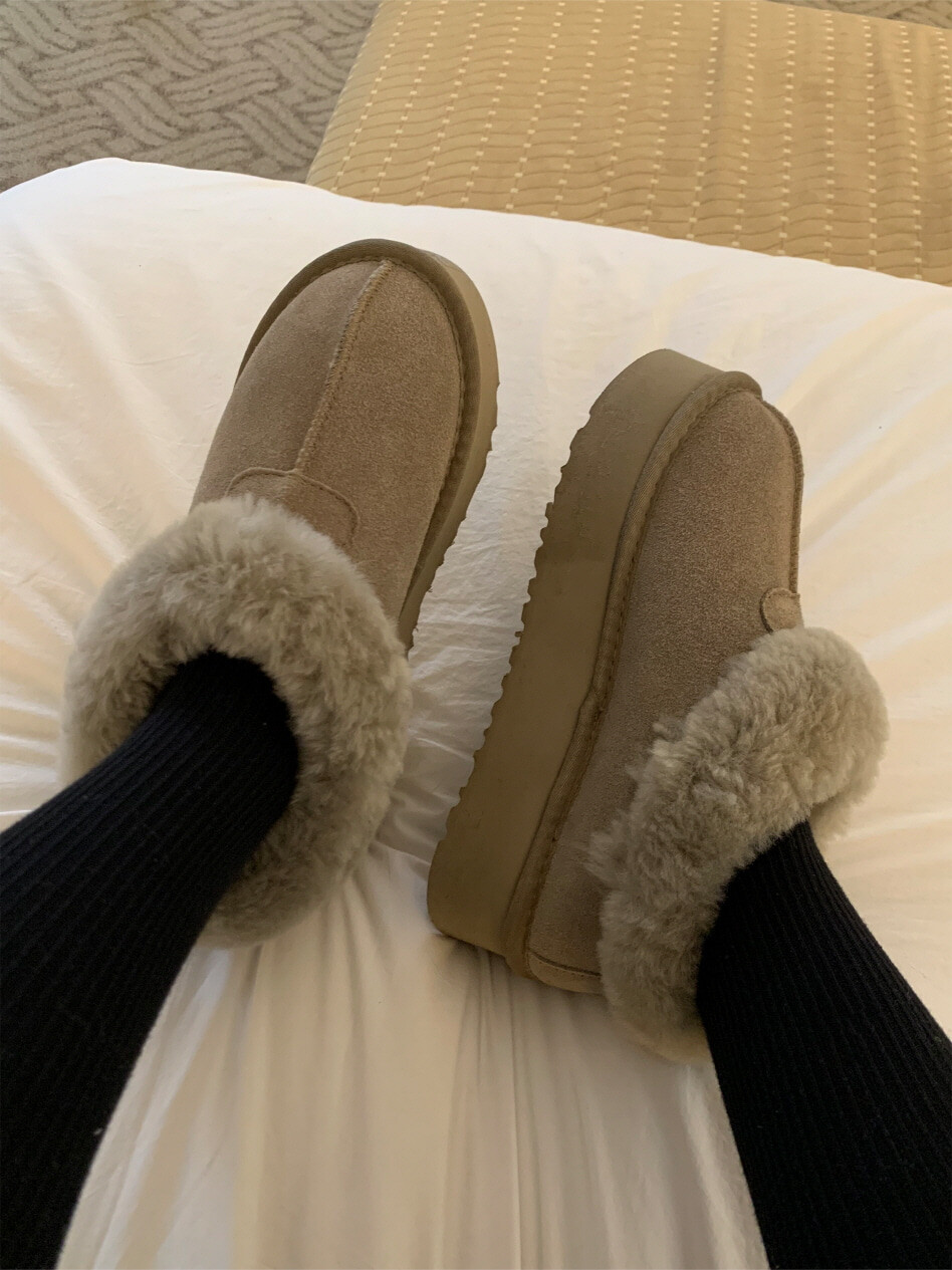 여성어그 타제트 소가죽 숏 어그 스웨이드 울 양털 통굽 블로퍼 4cm