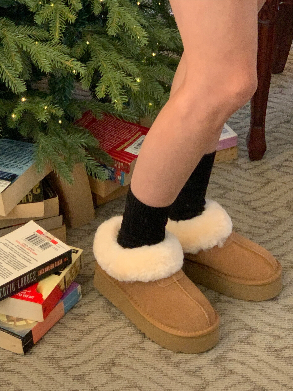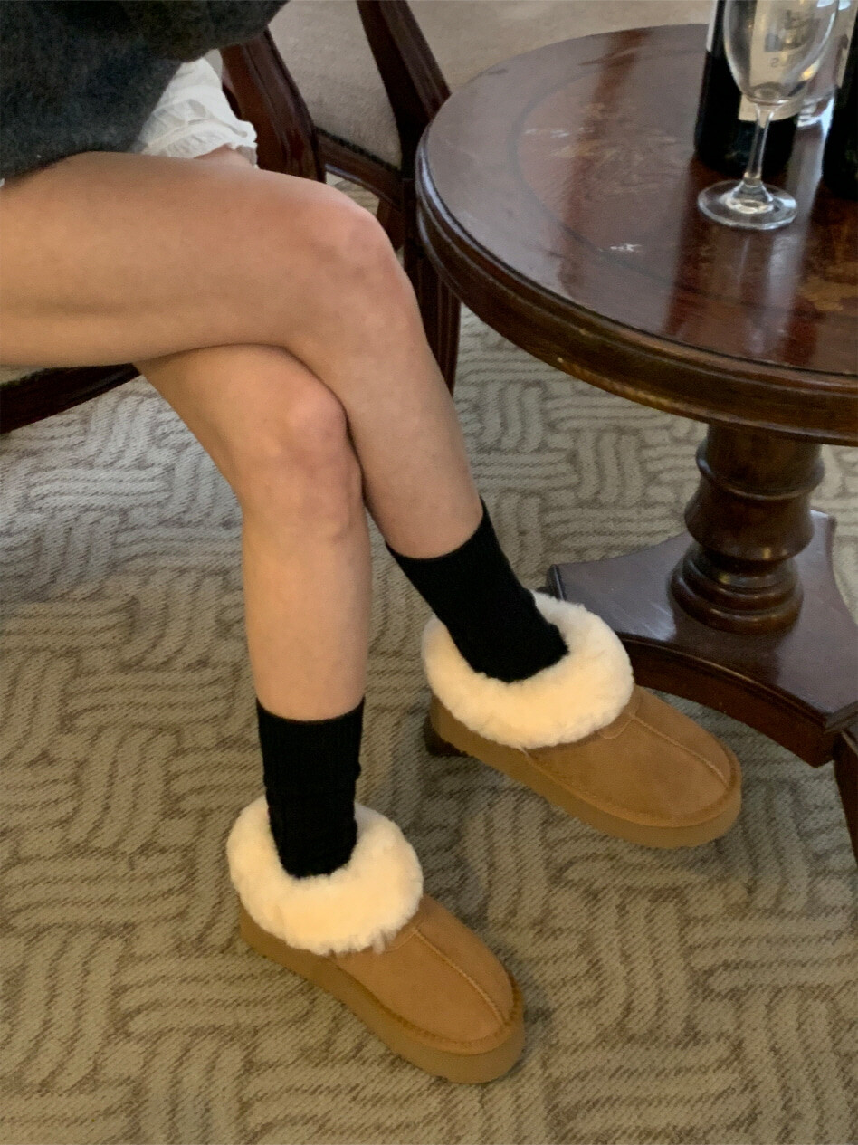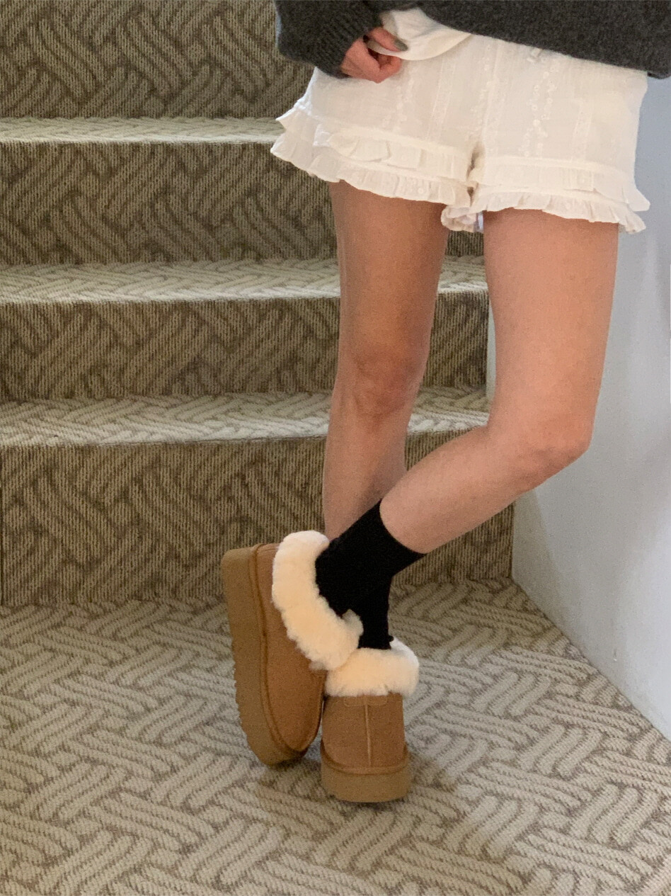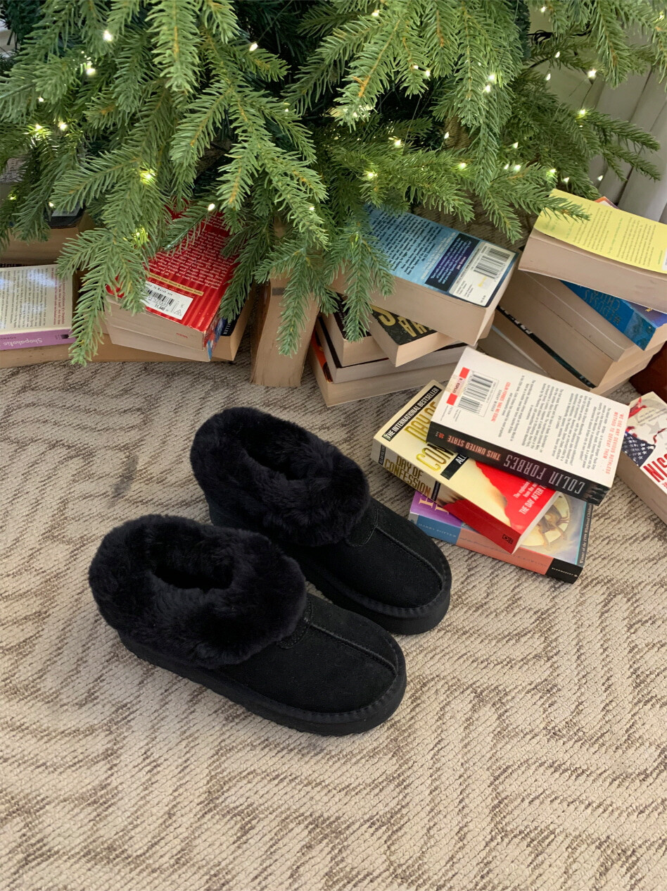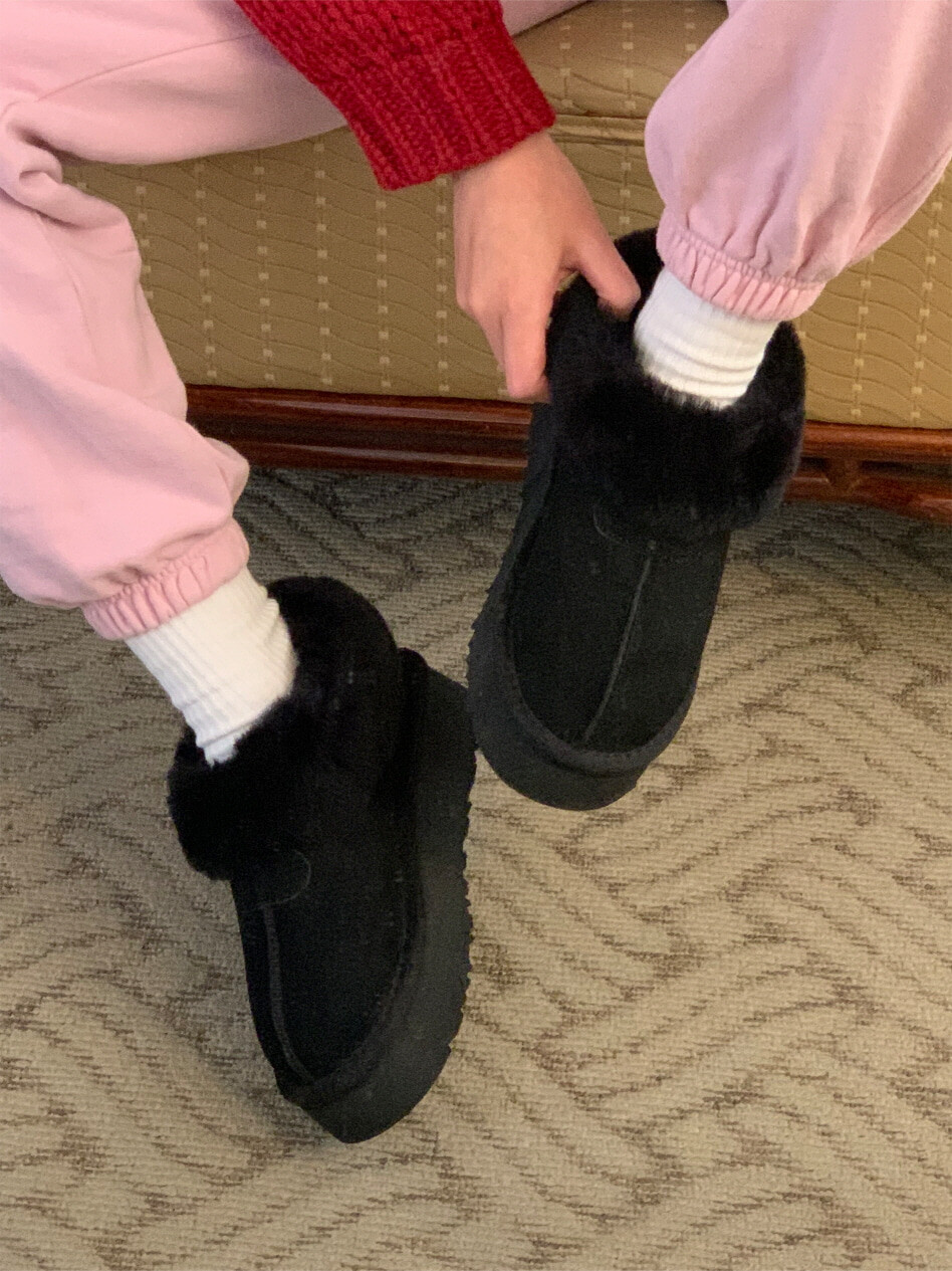 여성어그 타제트 소가죽 숏 어그 스웨이드 울 양털 통굽 블로퍼 4cm
