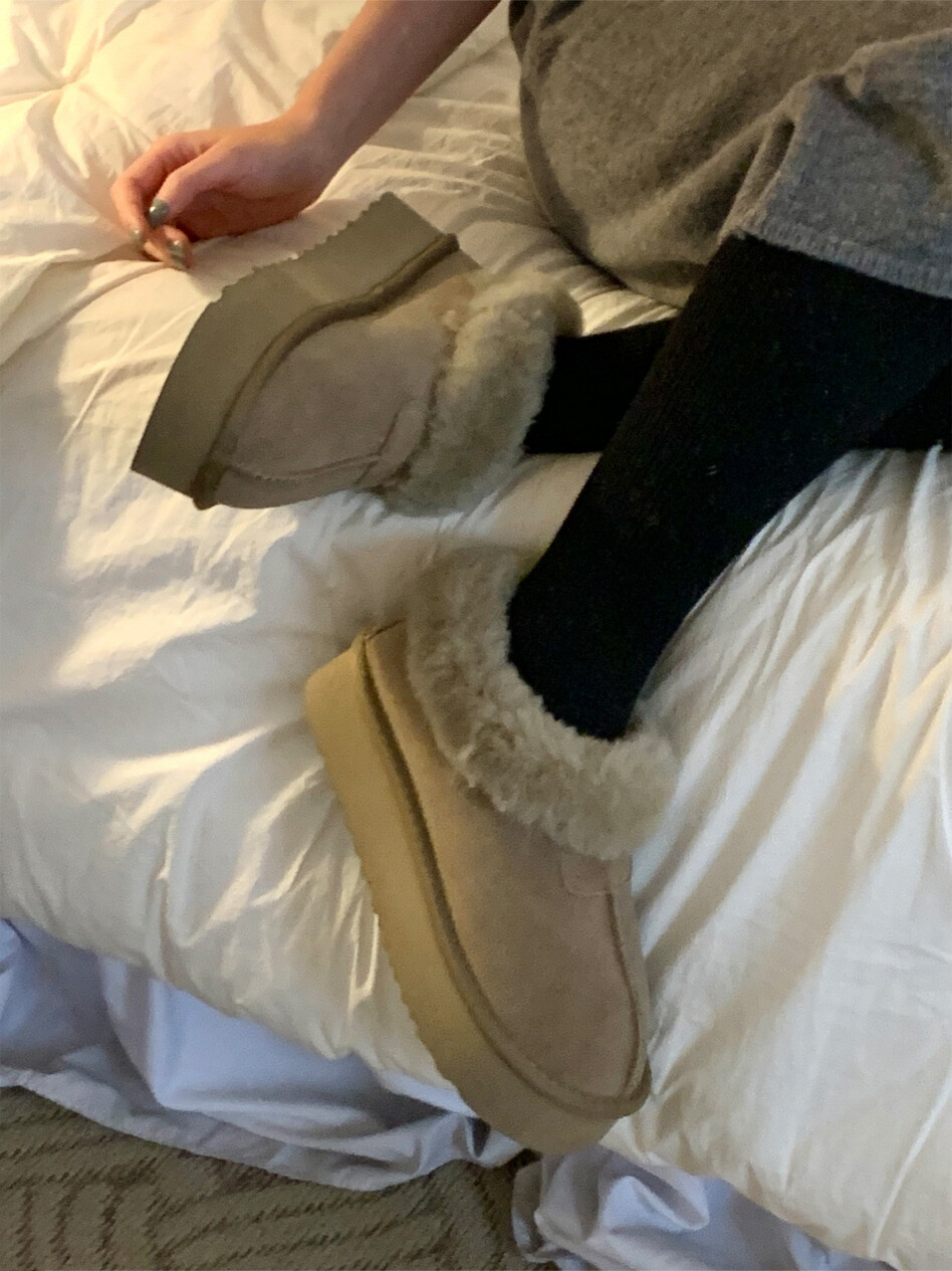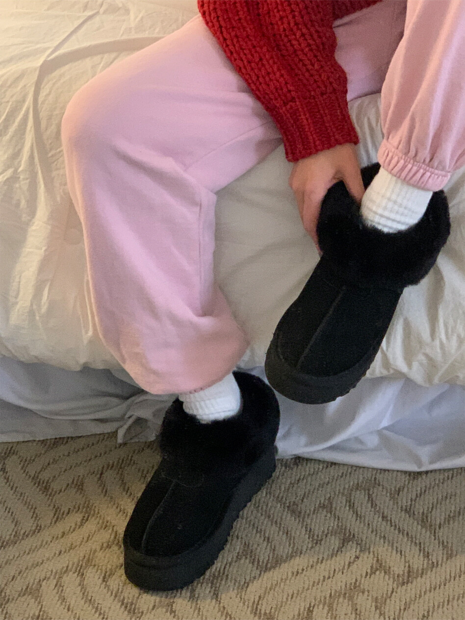 ✔ 풍성하고 따뜻한 퍼 안감발 전체를 감싸주는 부드럽고 도톰한 퍼 안감 덕분에 한겨울에도 따뜻함을 유지할 수 있어요. 발목까지 올라오는 어그부츠 디자인으로 보온성을 극대화했답니다.