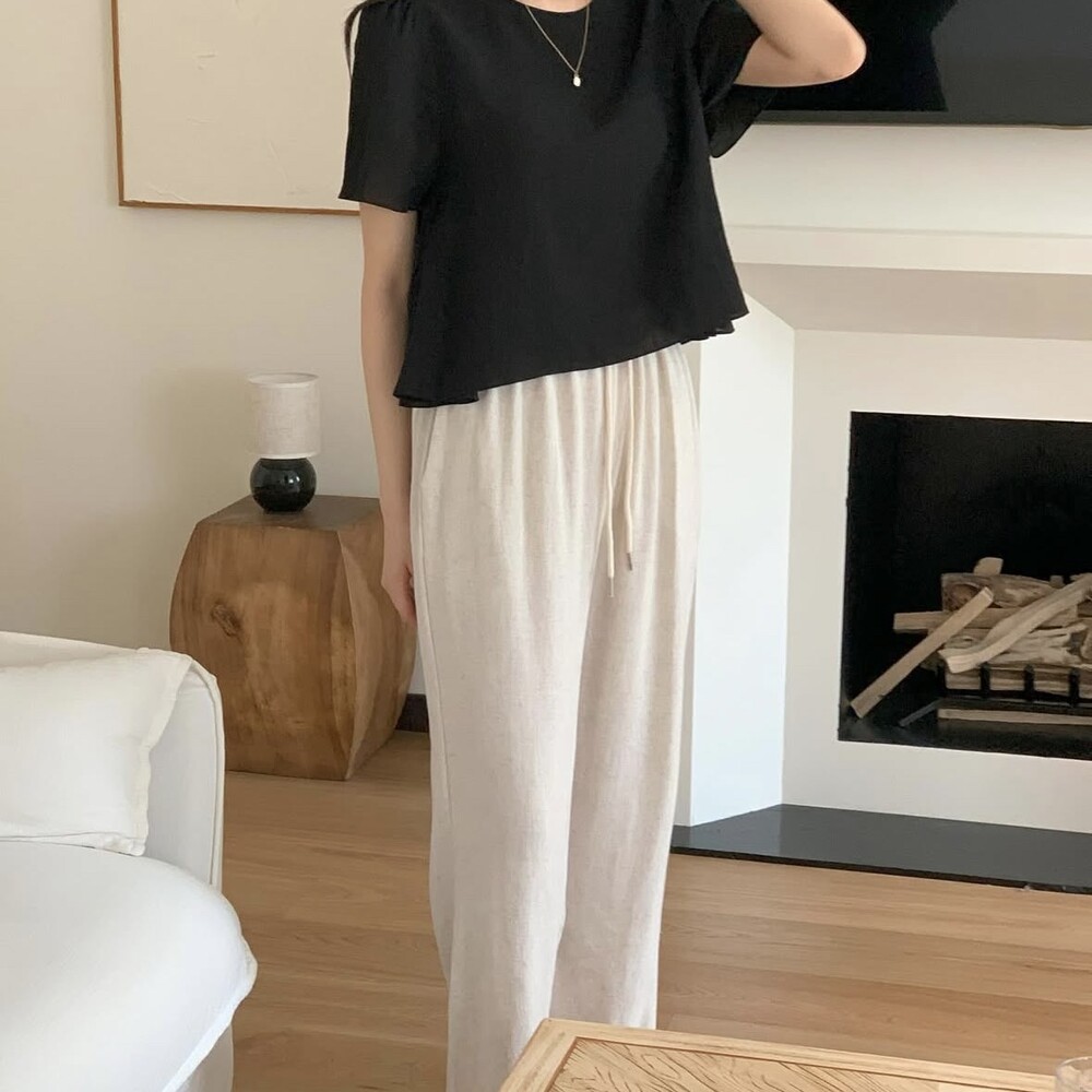 허리는 전체 밴딩으로 편안하게 감싸주고, 스트링으로 사이즈 조절도 가능해요.군더더기 없이 깔끔한 디자인으로 다양한 상의와 매치하기 쉬워데일리룩부터 여행룩, 홈웨어까지 활용도 높게 즐기실 수 있어요.