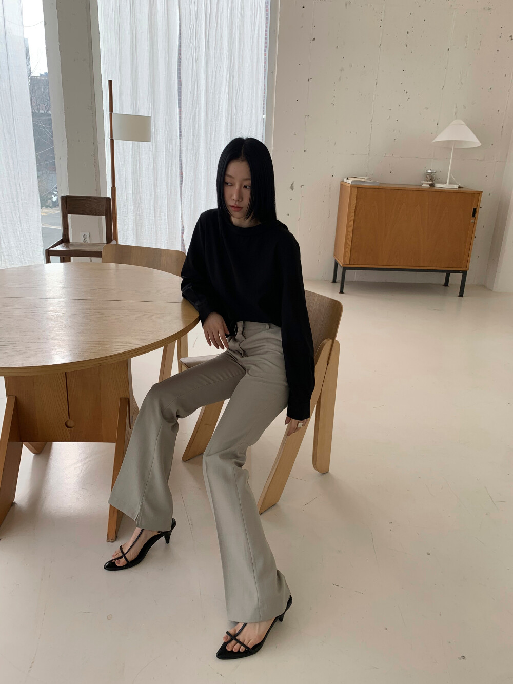부드럽게 흐르는 원단으로 여성스러운 분위기를 살려주고,