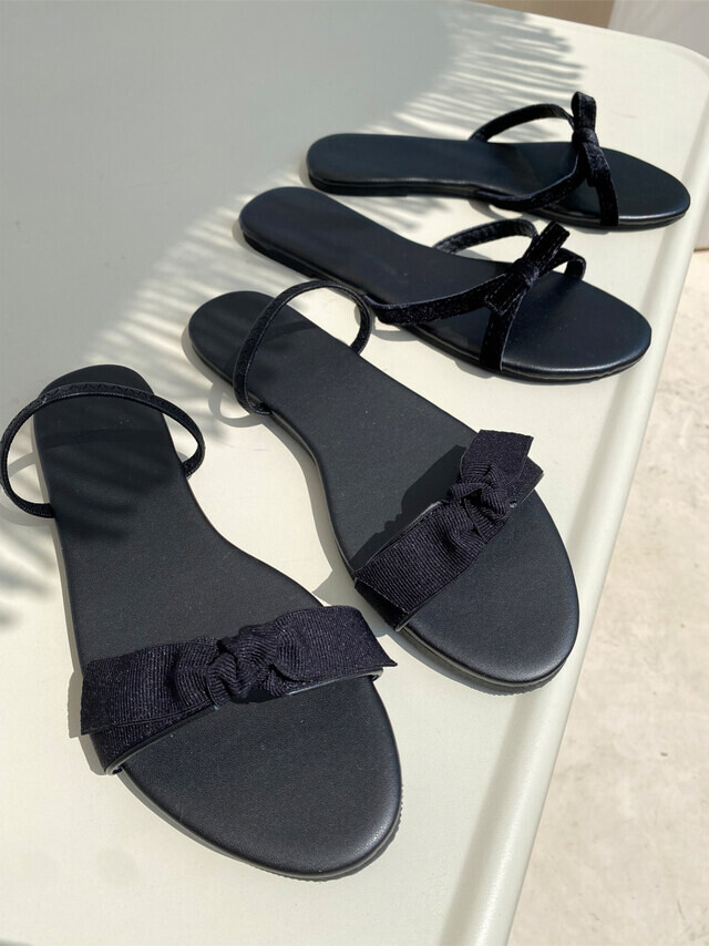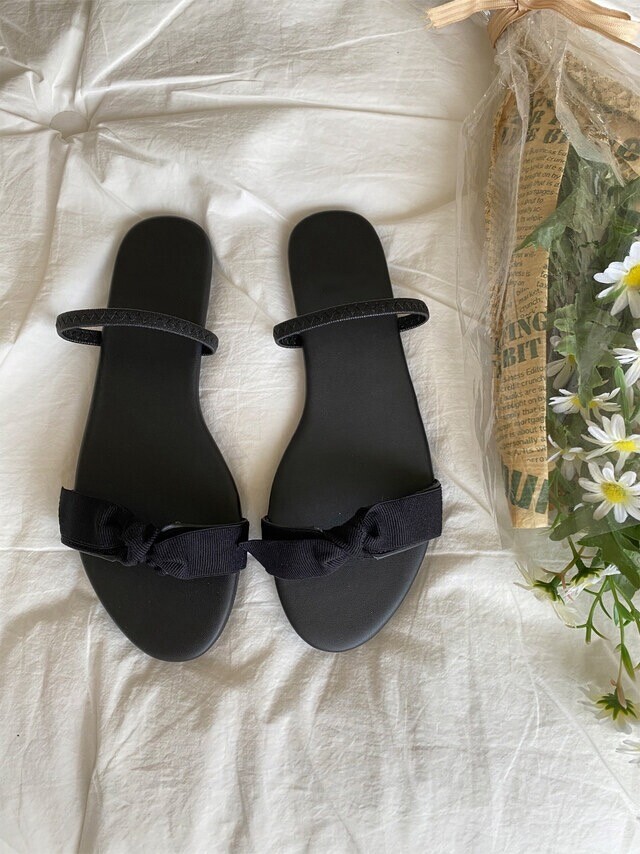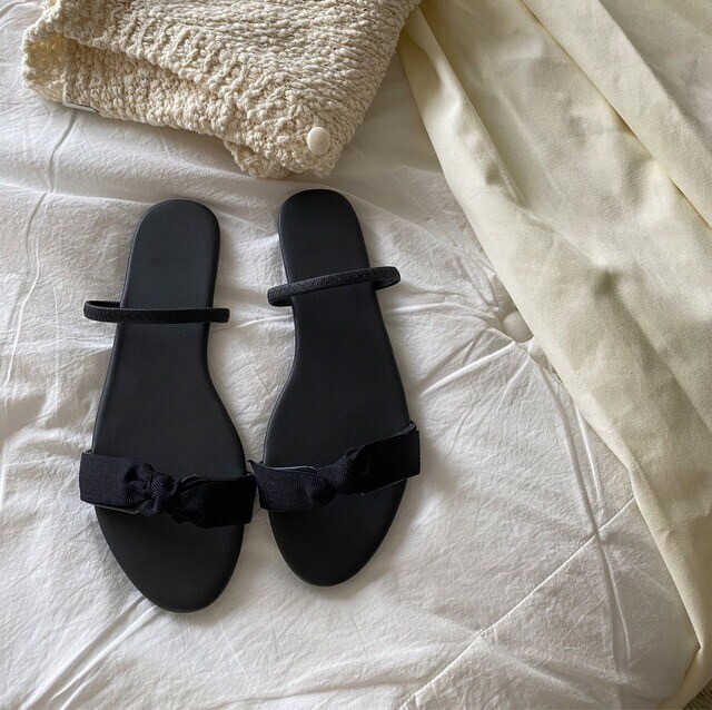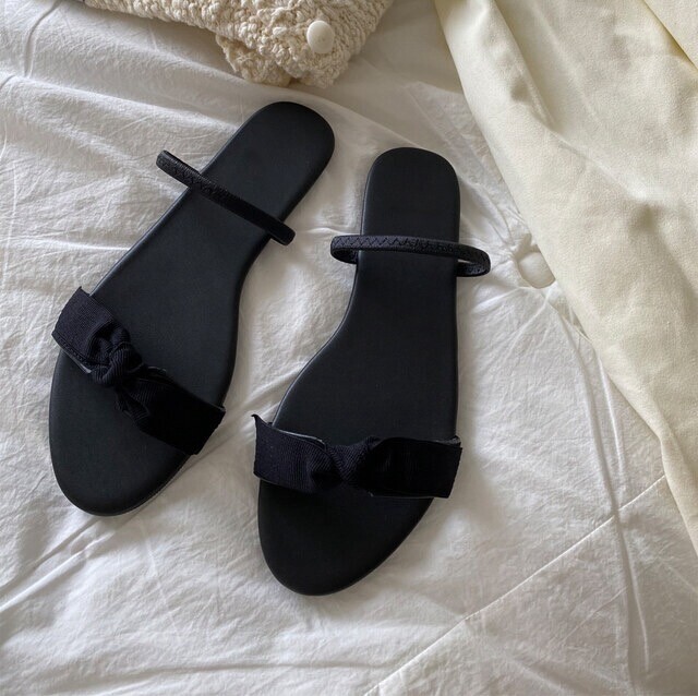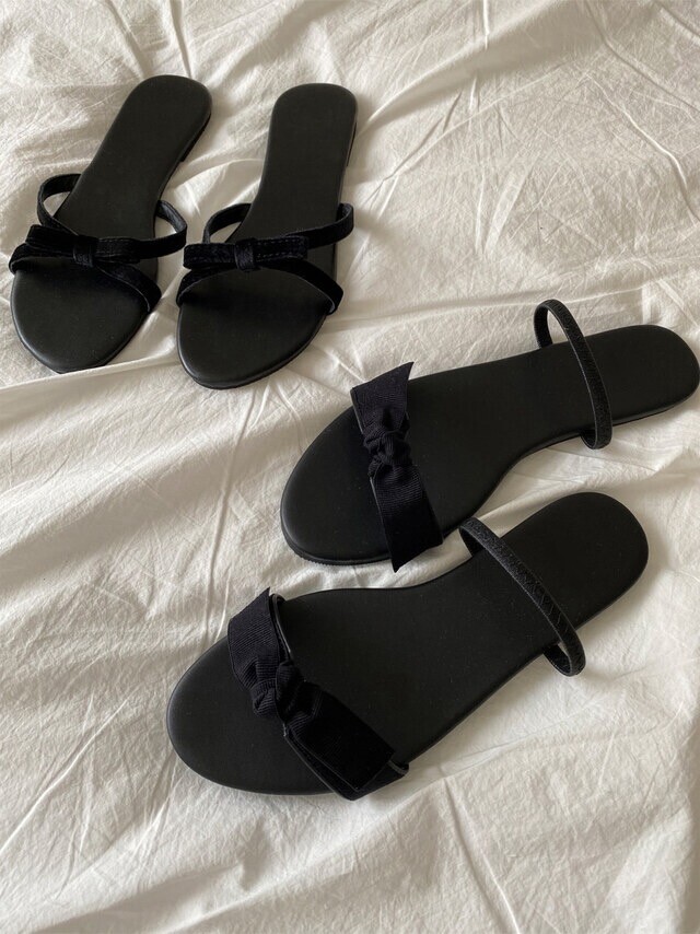깔끔한 리본디테일이 사랑스러우면서도 시크한 느낌이 듭니다. 뒷밴딩을 발등위로 하여 슬리퍼로도 활용가능합니다.