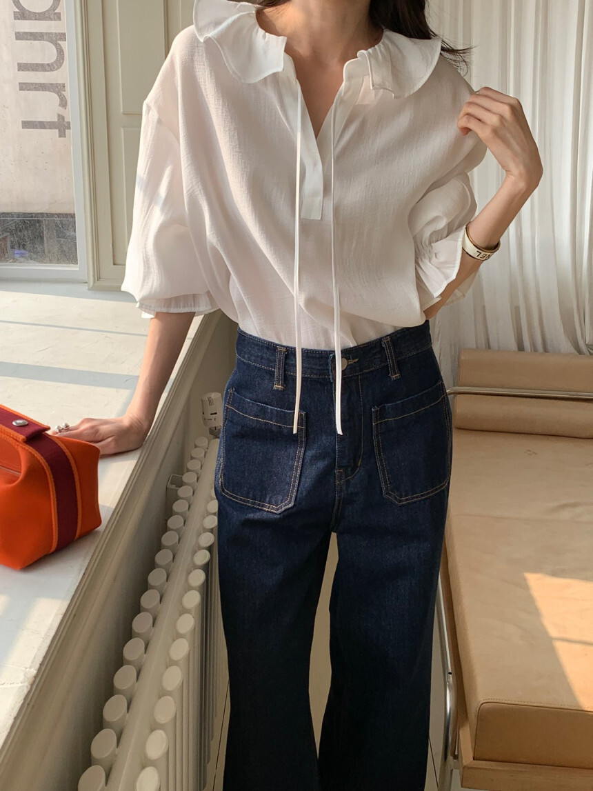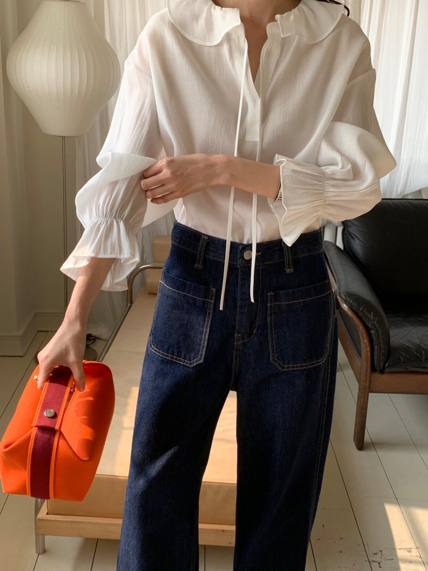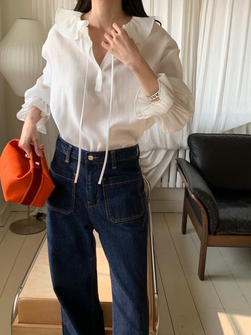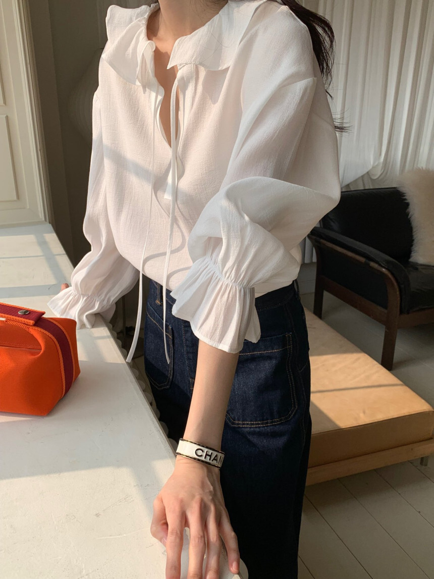 로우게이지 끈 프릴 블라우스