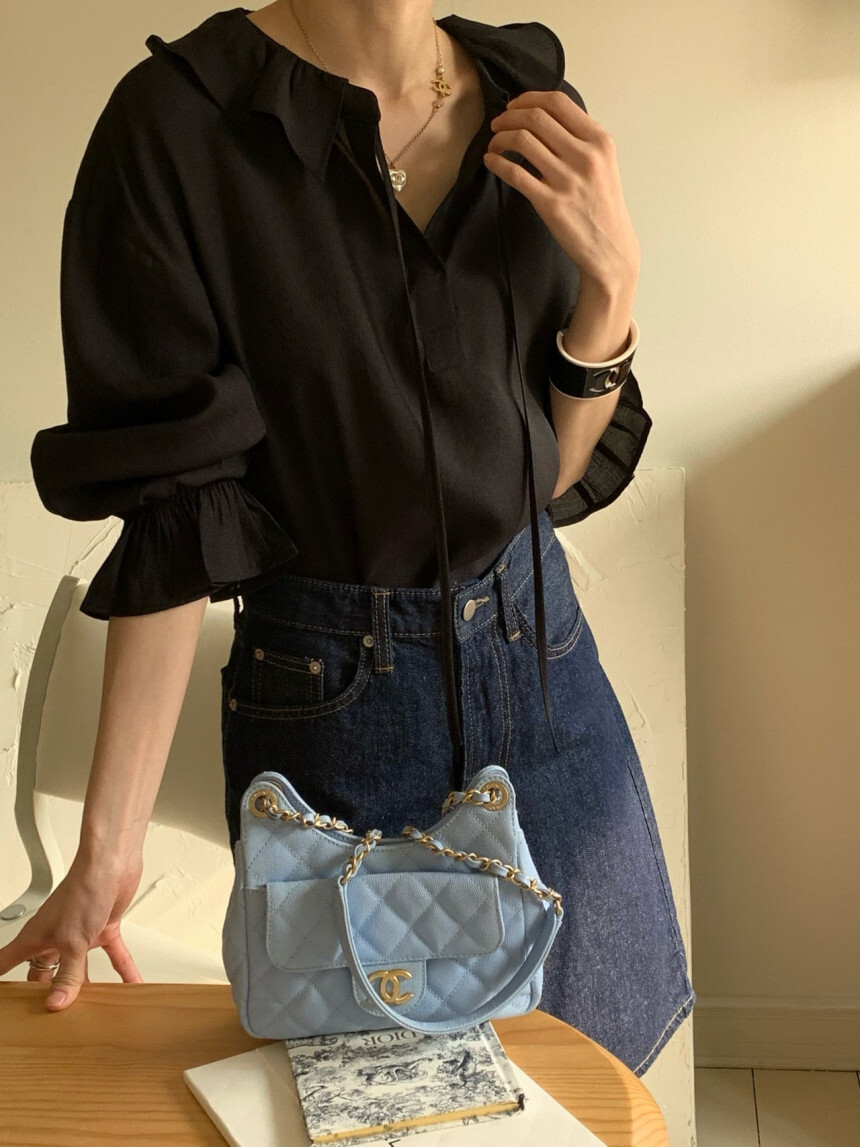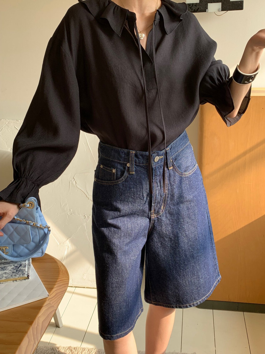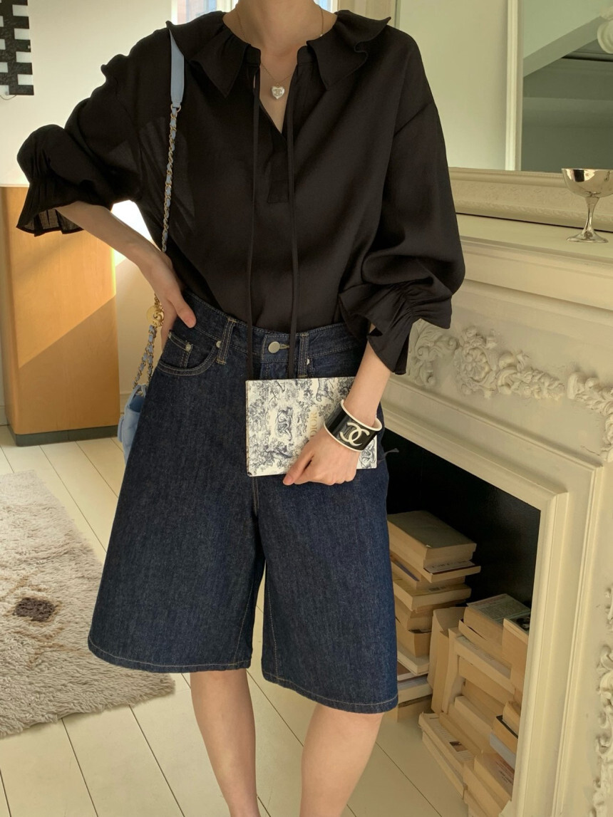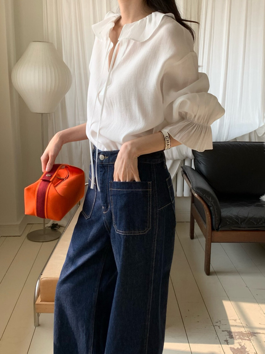 로우게이지 끈 프릴 블라우스