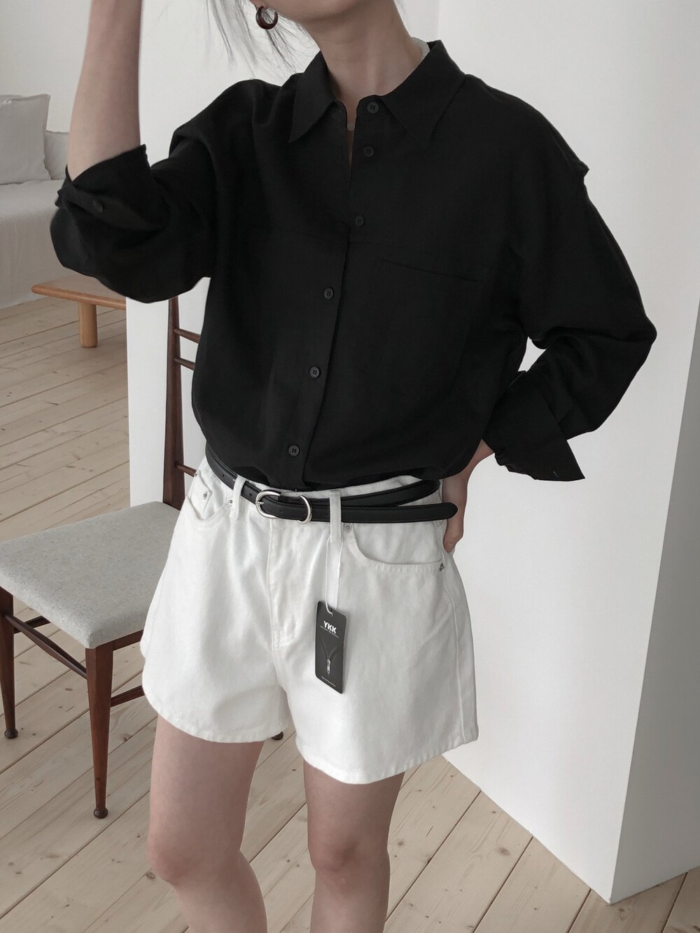 깔끔한 카라와 앞 절개 디테일이 단정하면서도 캐주얼한 무드를 더해줘 데일리룩부터 오피스룩까지 다양하게 스타일링 가능해요.소매를 자연스럽게 롤업하면 더욱 내추럴한 분위기를 연출하실 수 있답니다.