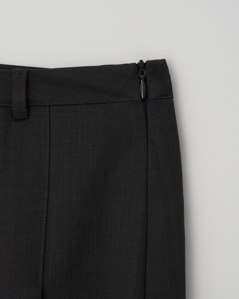 한쪽에 슬릿 디테일이 있어 걸을 때마다 자연스럽게 벌어지며 포인트가 되는 디자인입니다.
