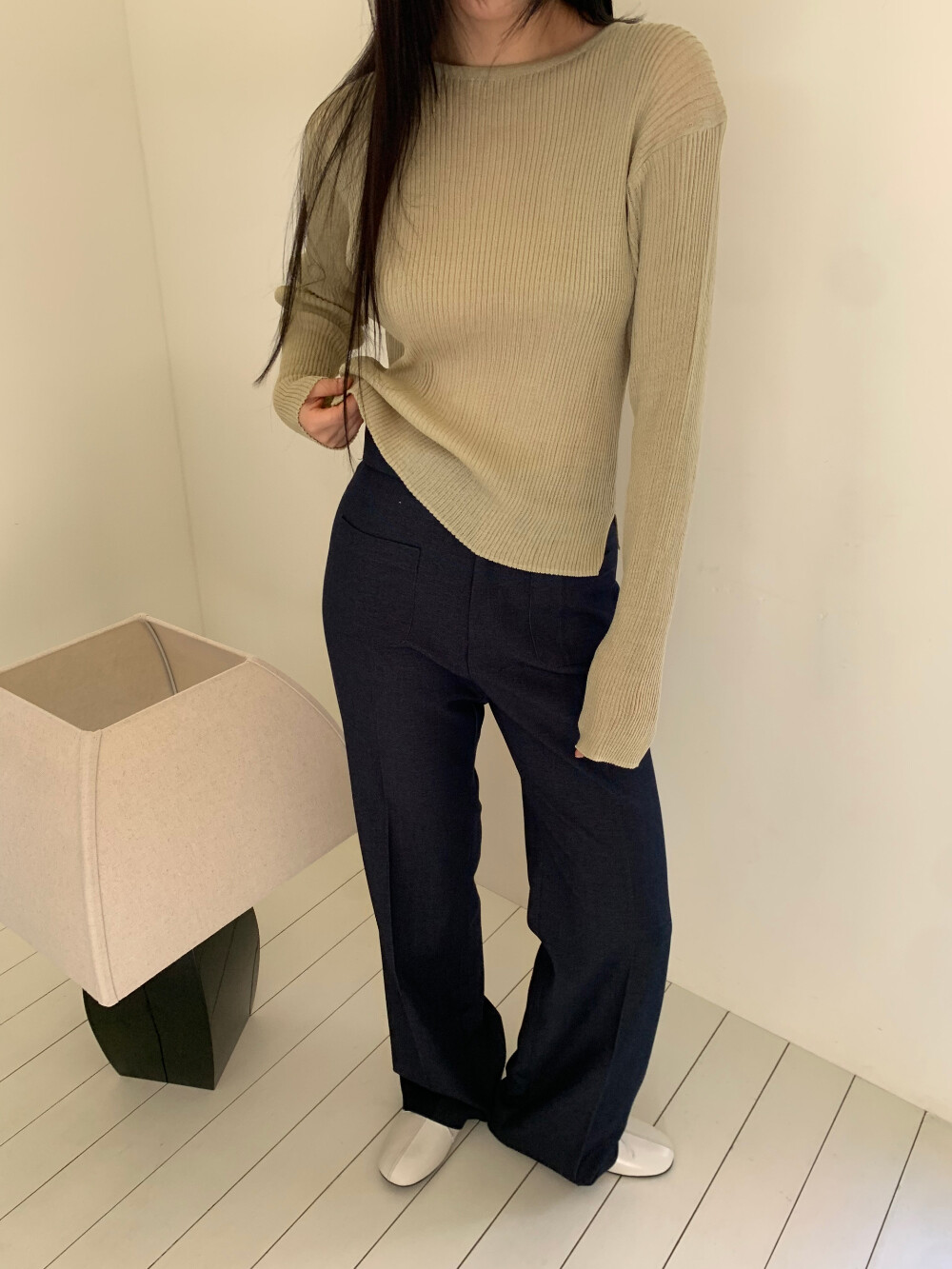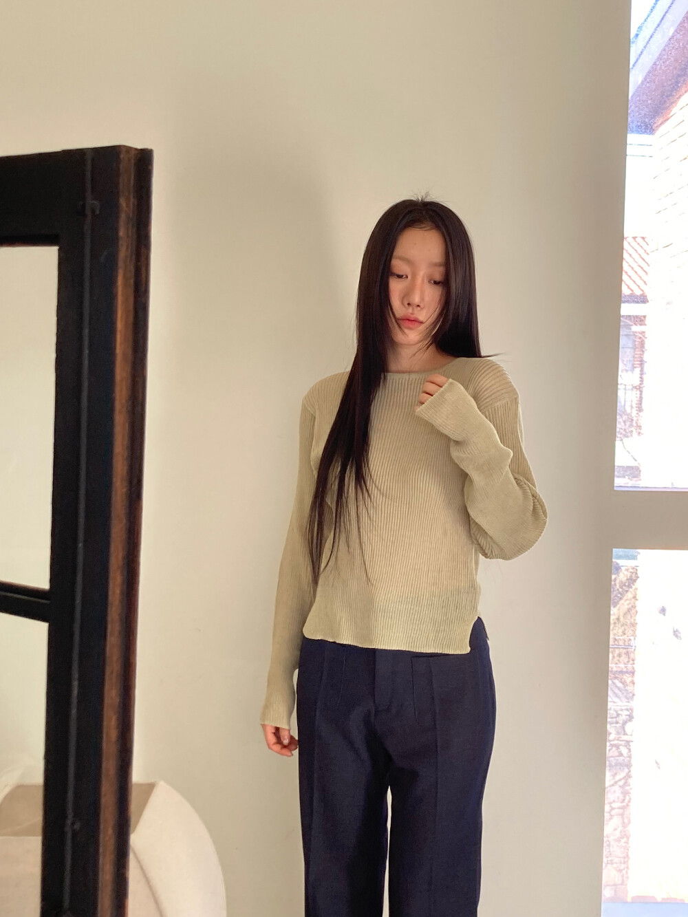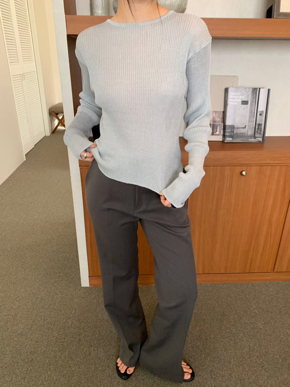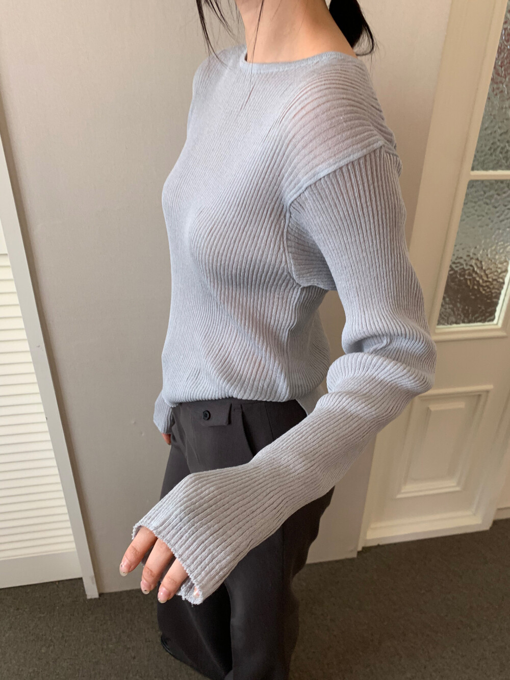 언더스탠딩 시스루 긴팔 니트