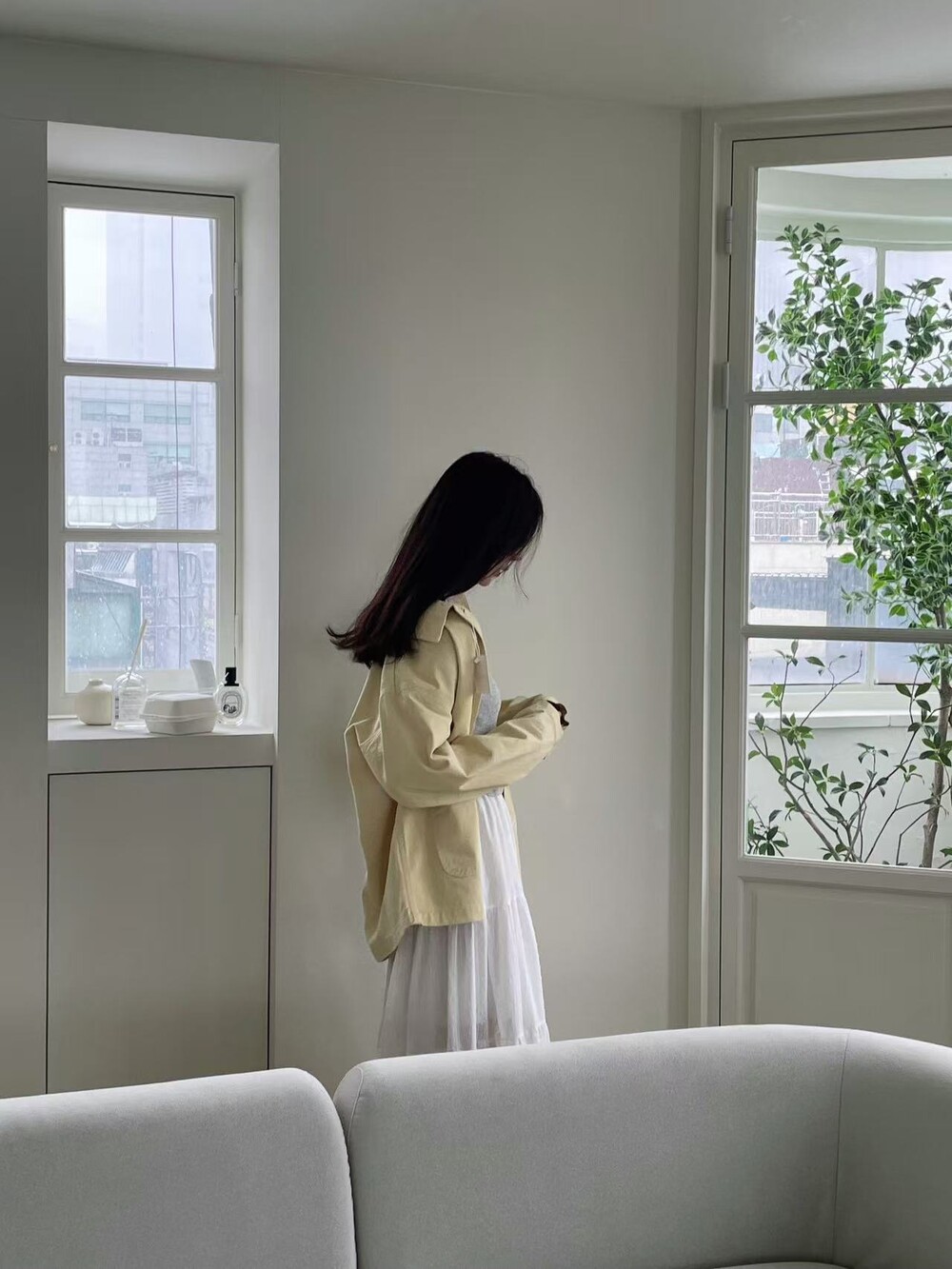 밝은 색감의 아우터와 레이어드하면 부드럽고 화사한 봄 코디로 추천드려요 ☁️