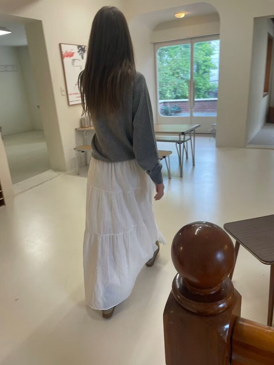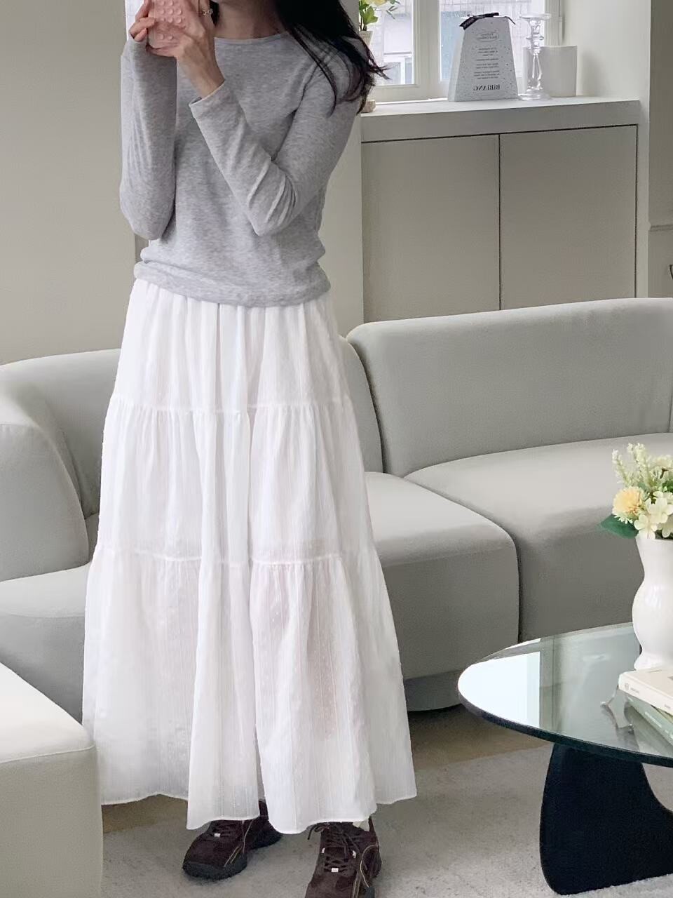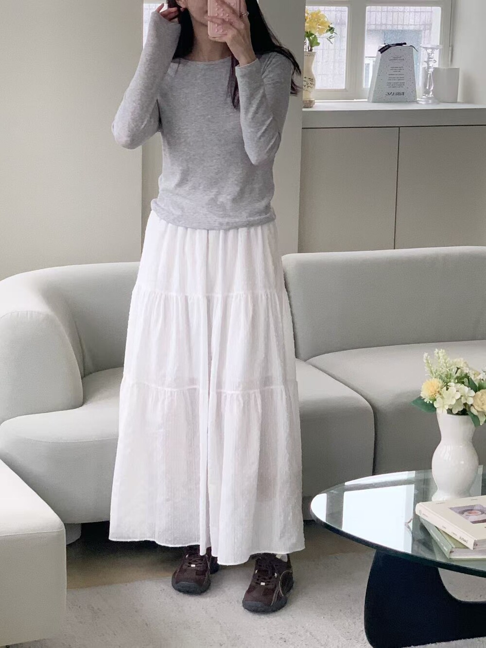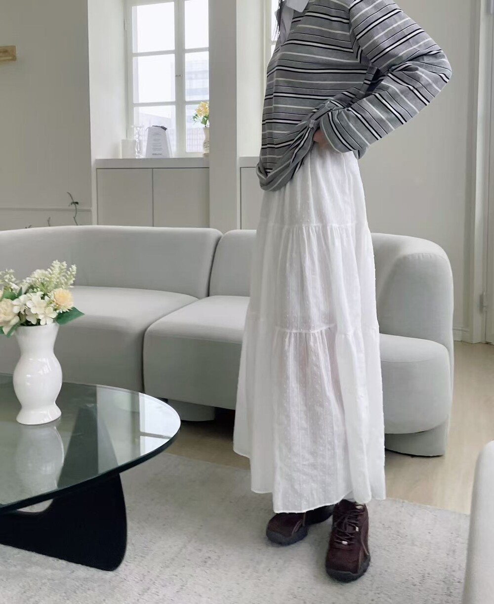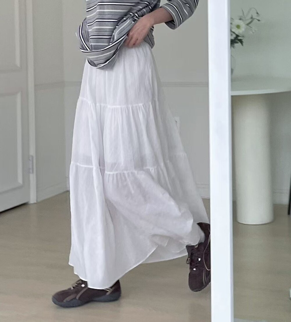 캉캉 롱 스커트 3단 밴딩 치마 25SS 아이보리