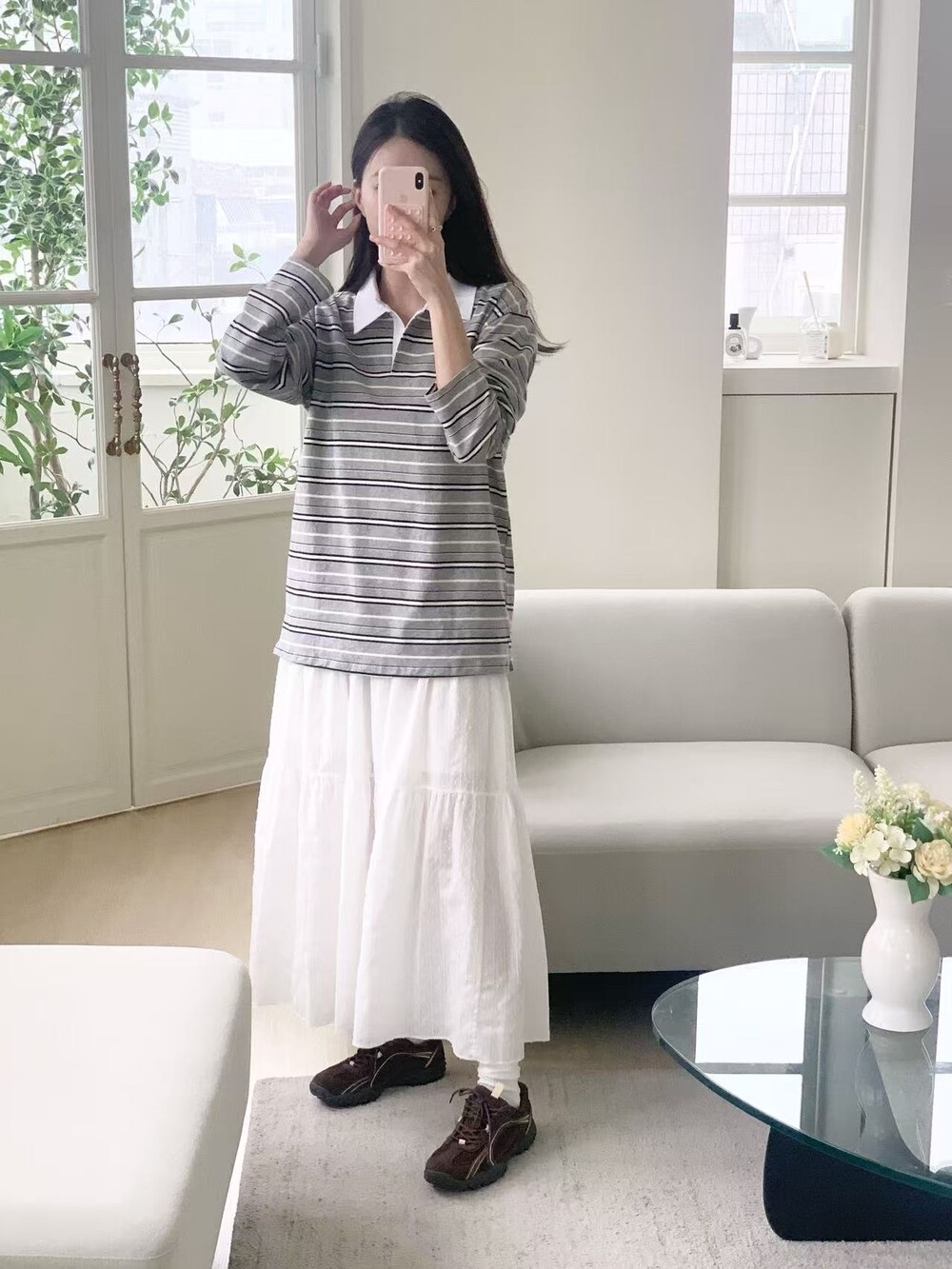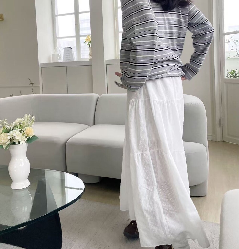 지금부터 여름까지 쭉- 즐기기 좋은,가볍고 편안한 무드의 캉캉 롱 스커트와 함께해보세요 :)
