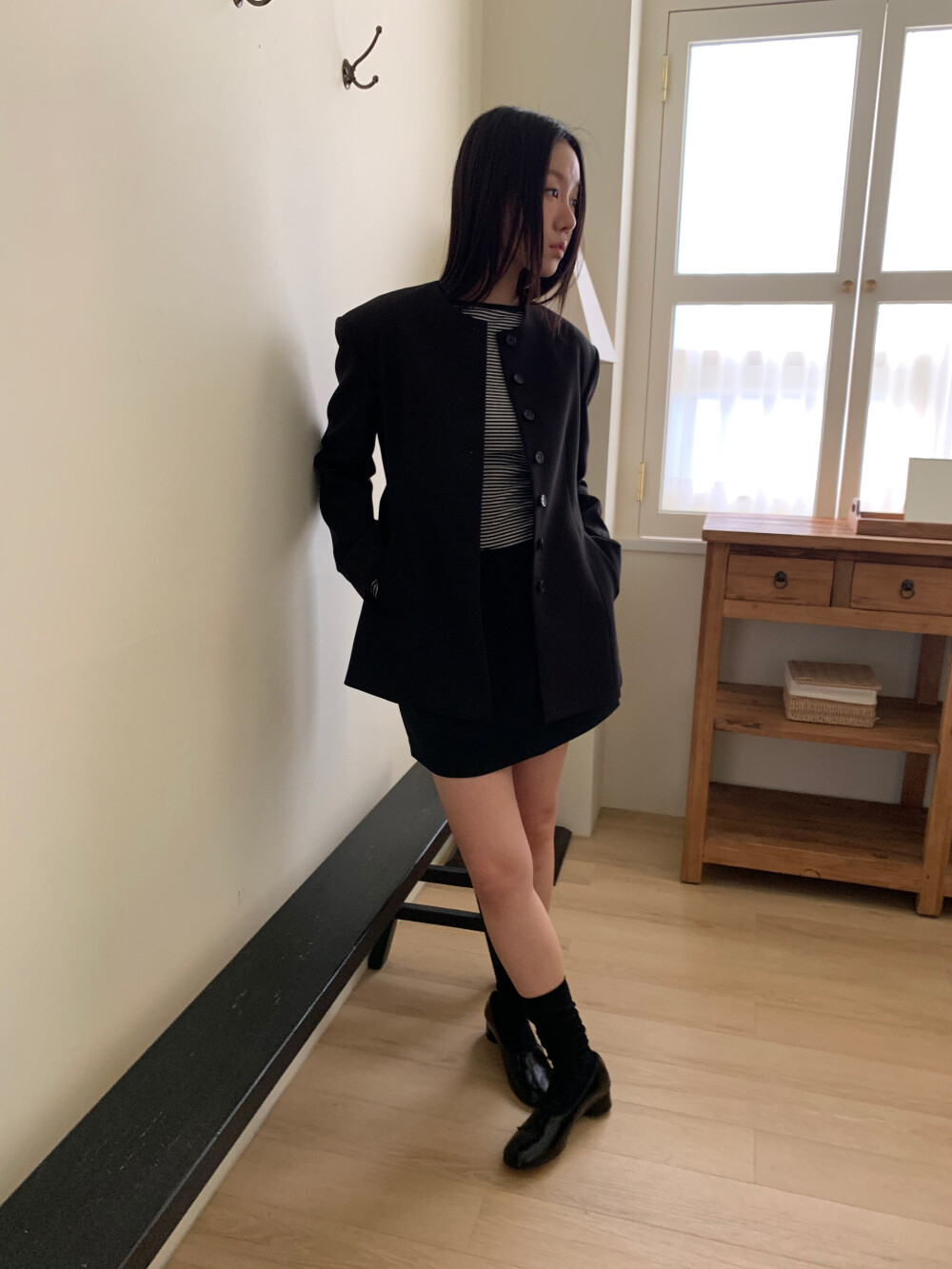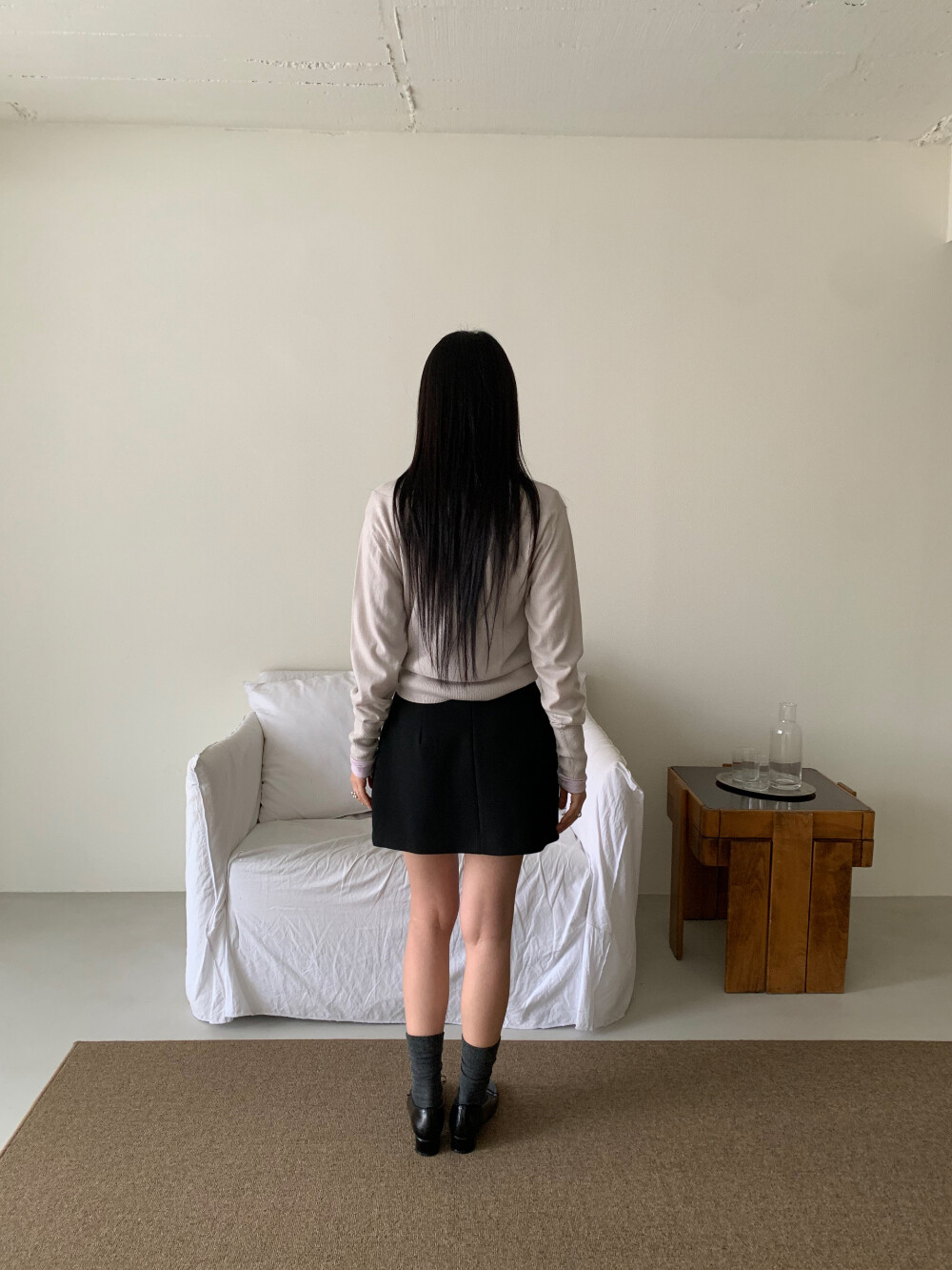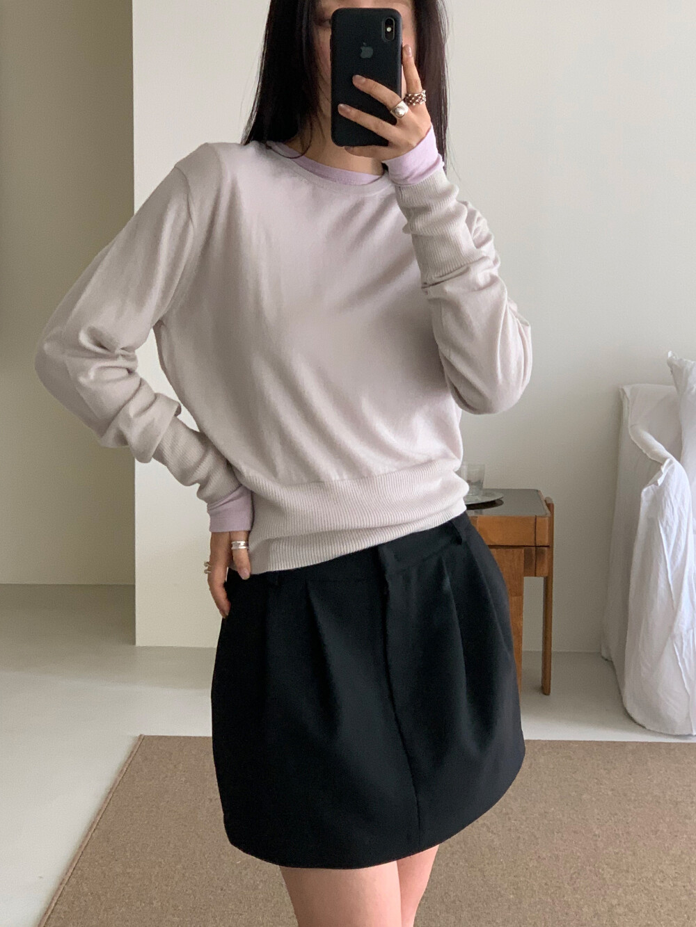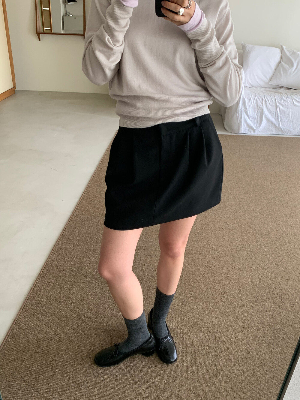 미니 기장이지만 부담스럽지 않은 핏으로 데일리하게 즐겨입기 좋고