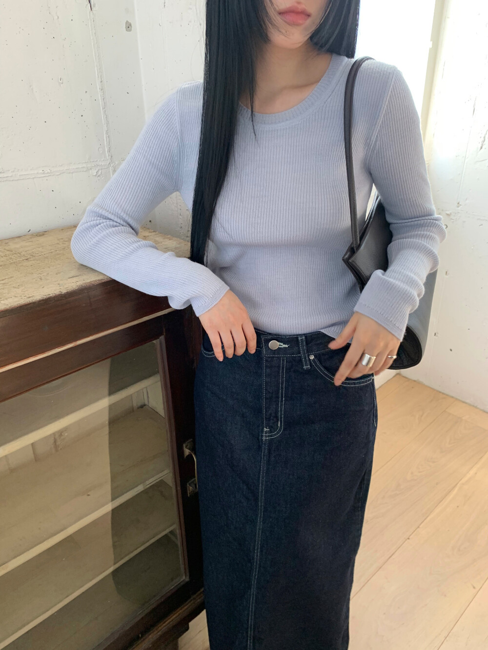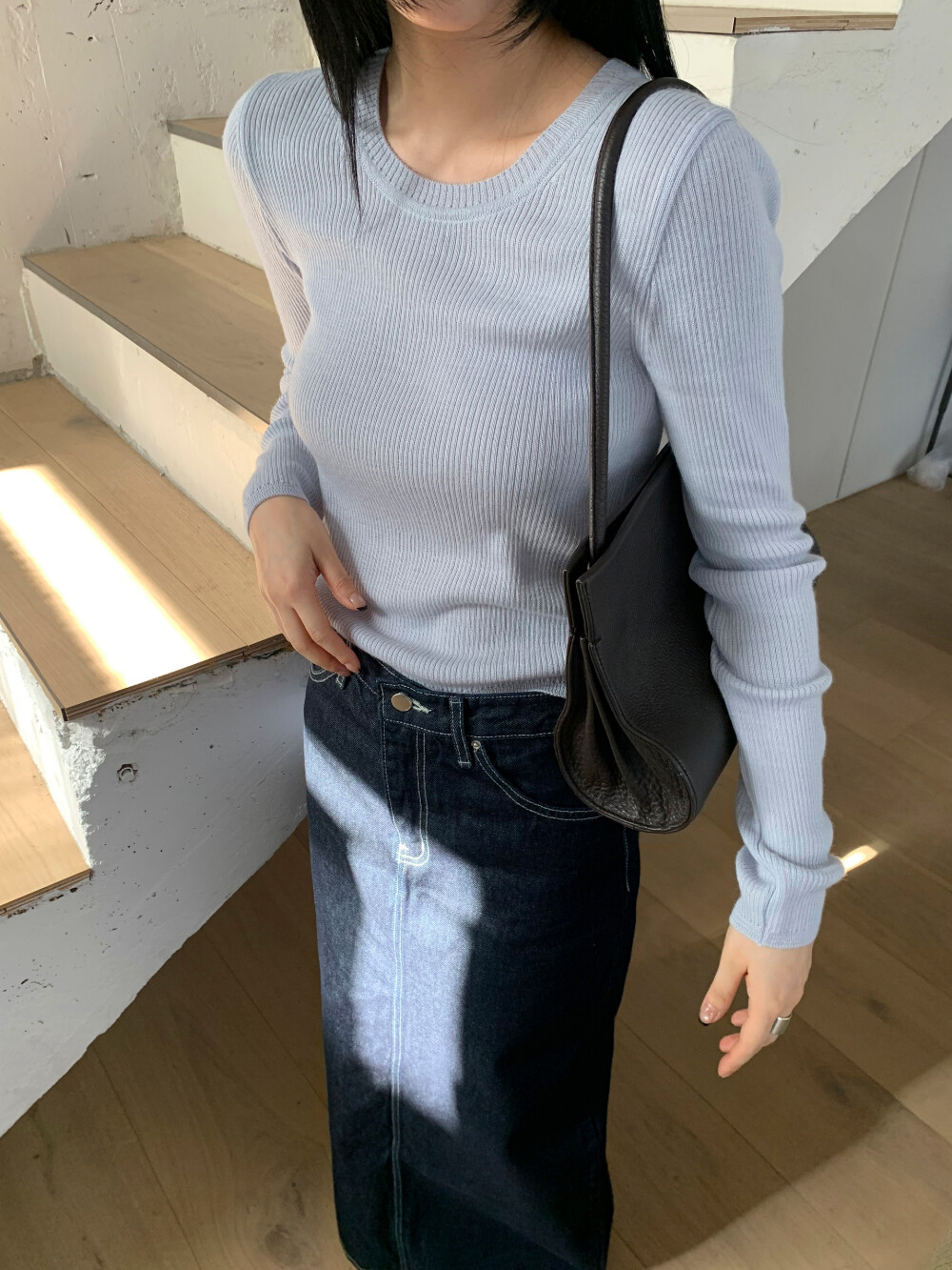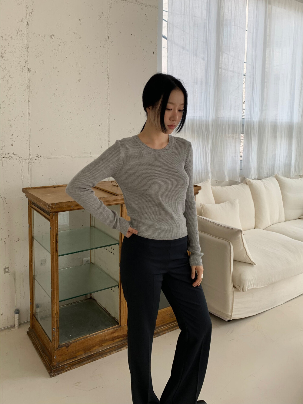 과하지 않은 골지 조직으로 몸에 자연스럽게 핏되며 깔끔한 실루엣이 만들어 집니다.