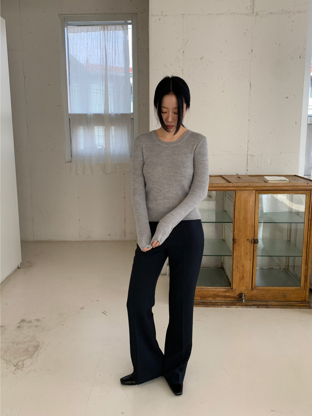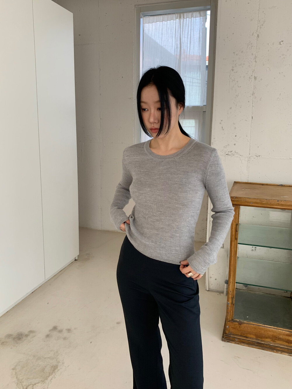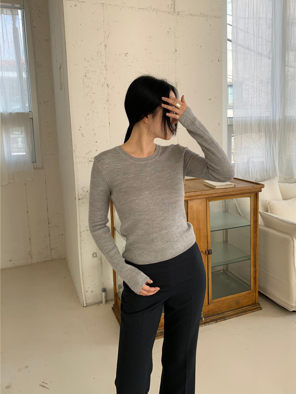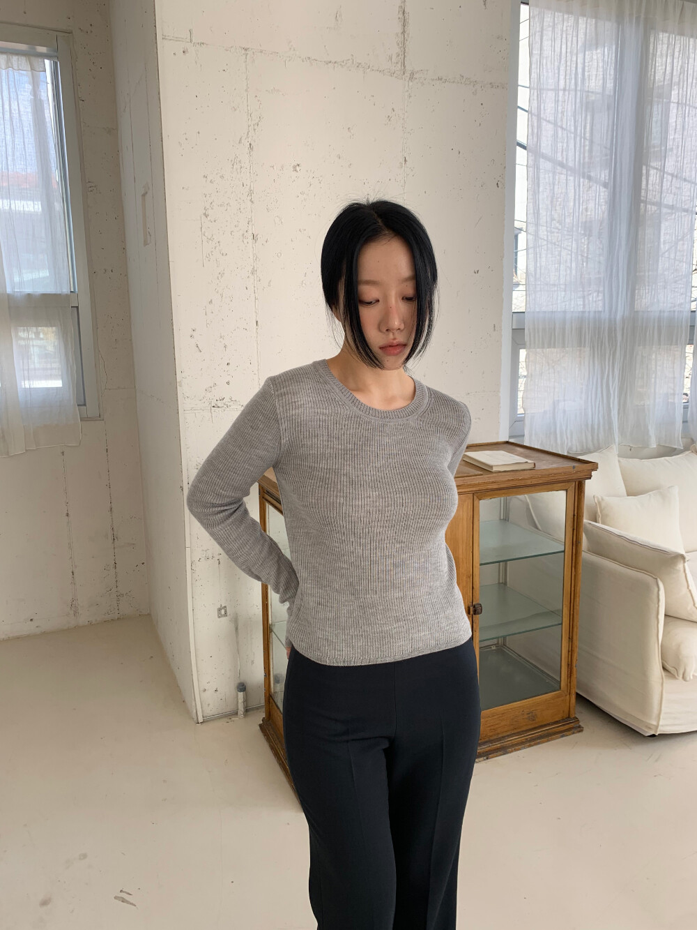 언더스탠딩 골지 라운드 니트