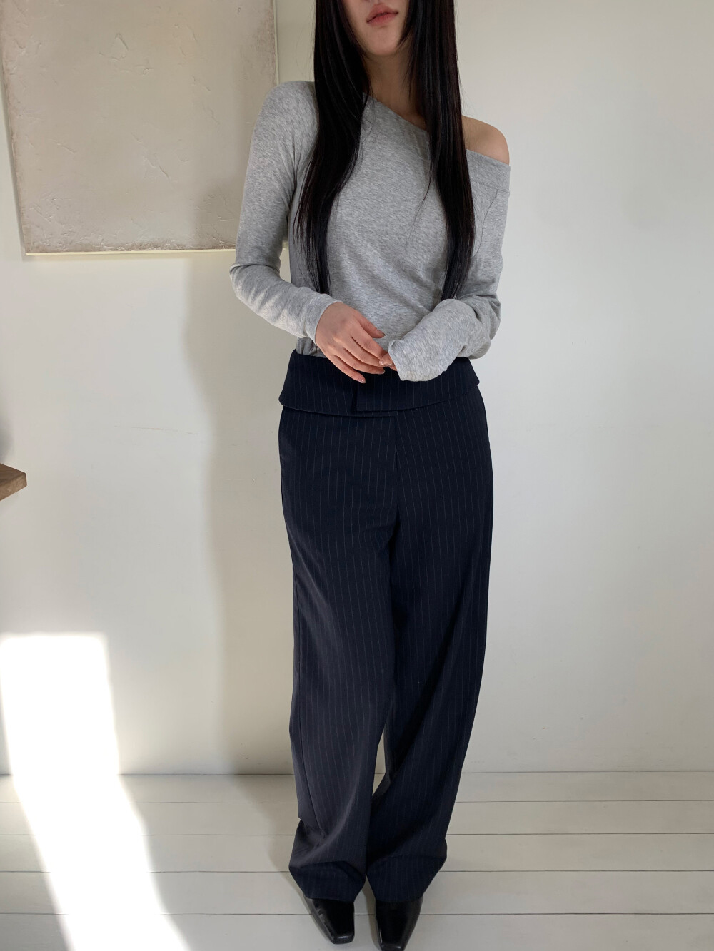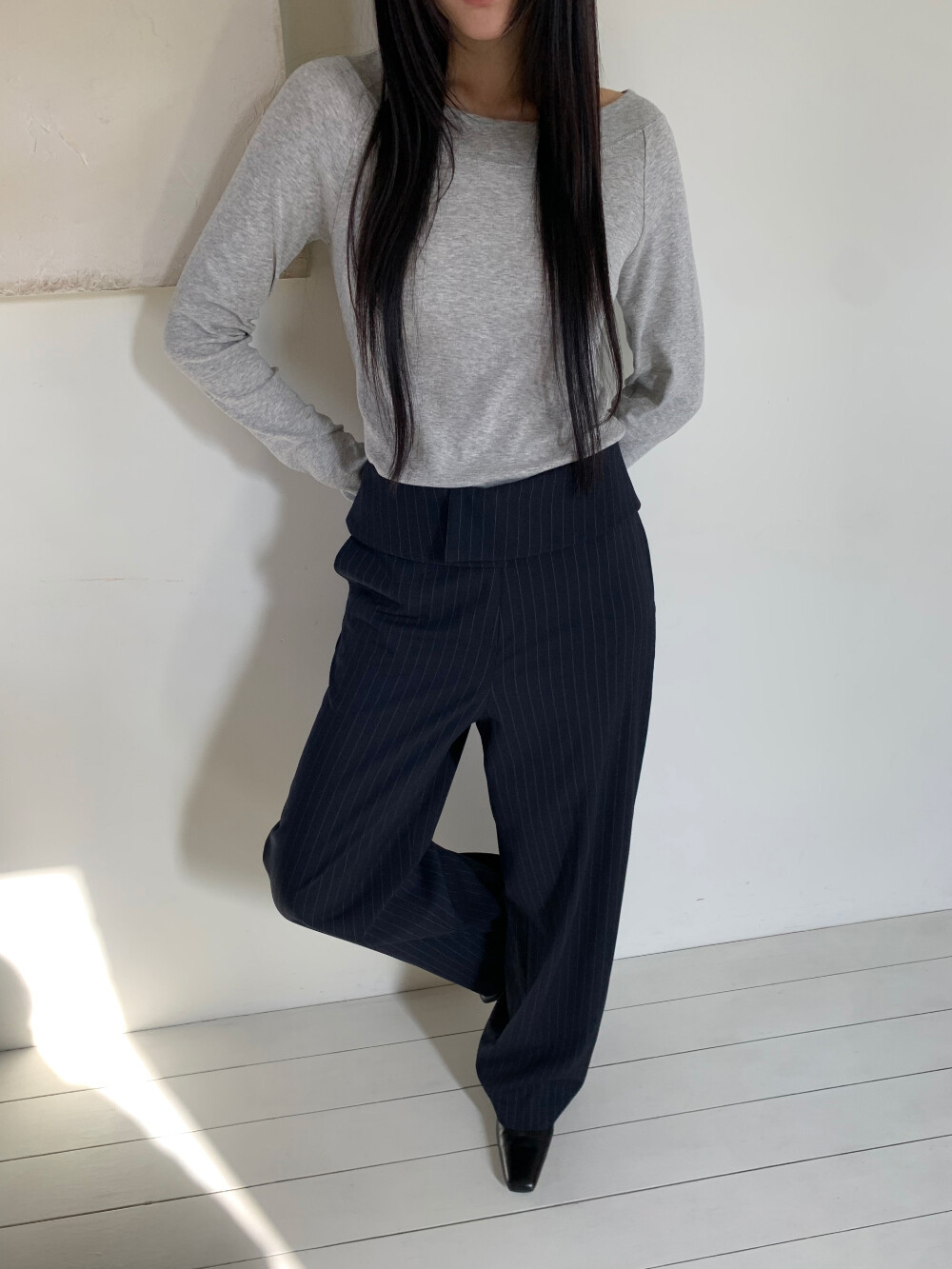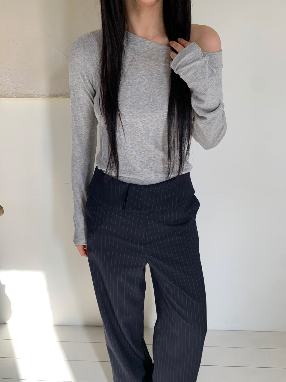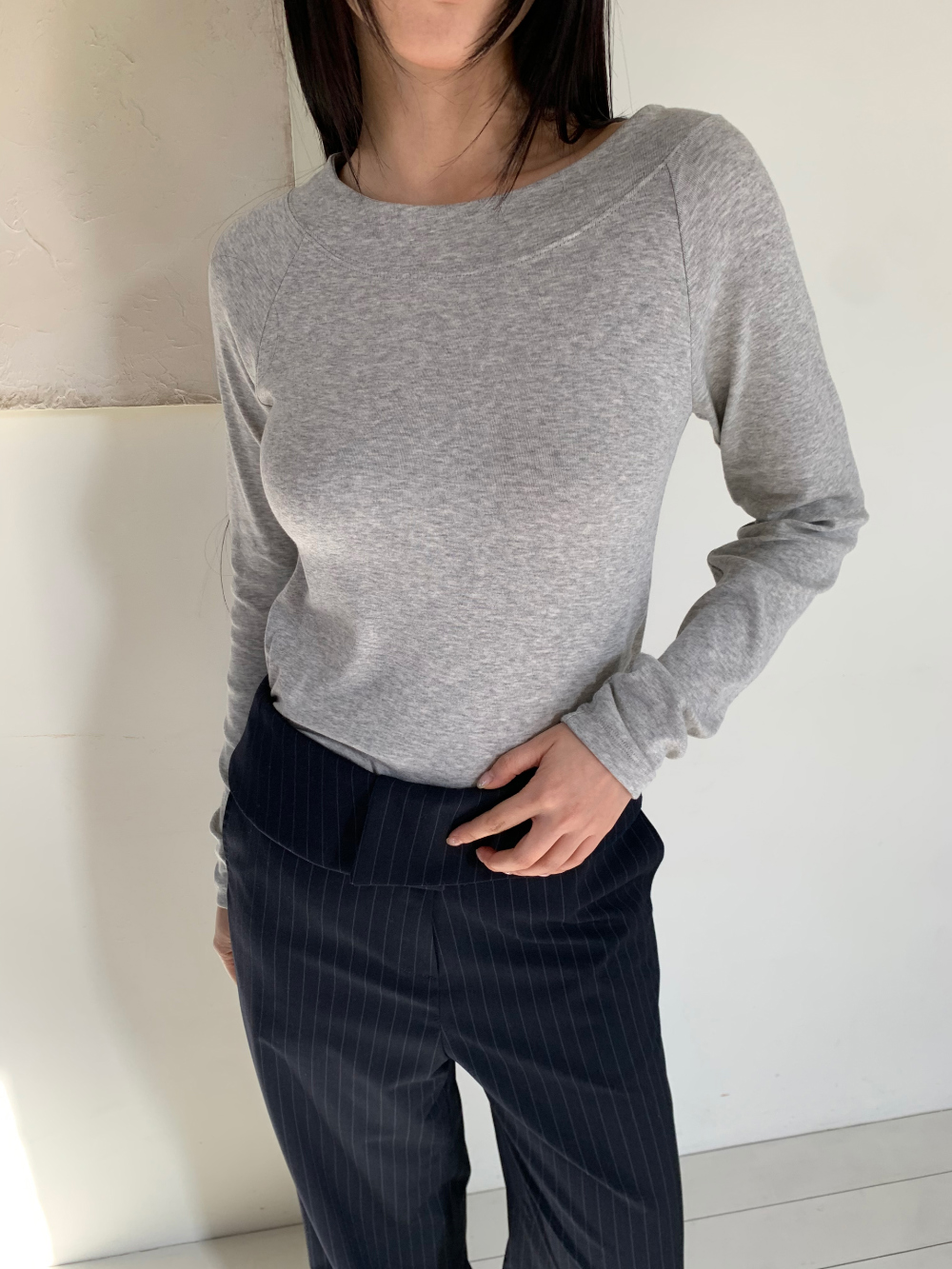 몸에 자연스럽게 감기며 흐르는 핏이 매력적이고, 원단터치감이 매우 부드러워 데일리하게 입기 좋습니다.