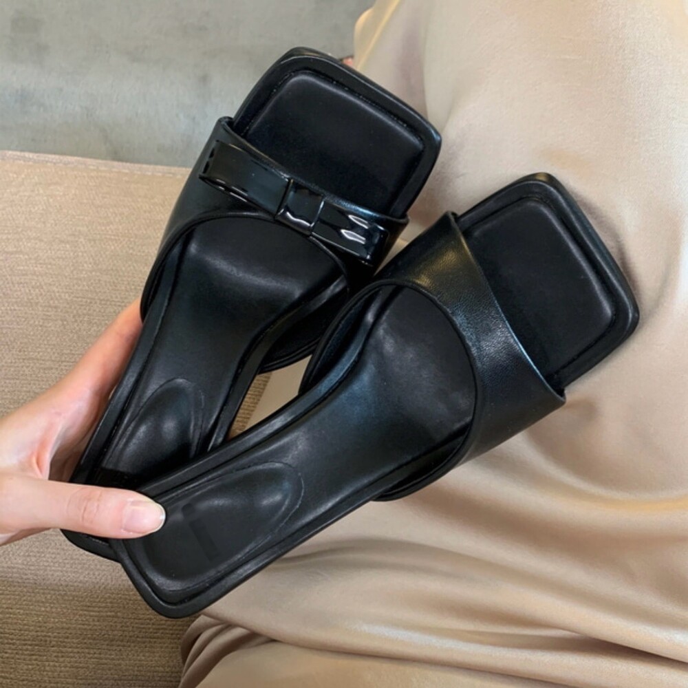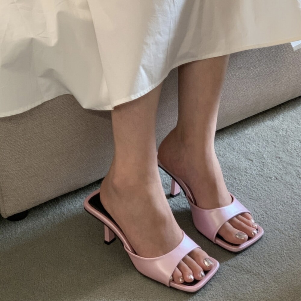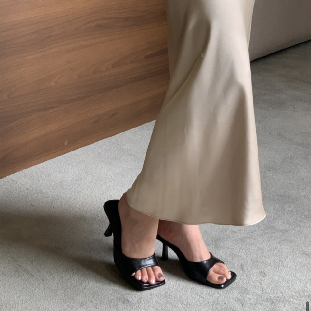 리본 뮬 샌들 힐 슬리퍼 7cm(4colors) Basic Mule Sandle (7cm)