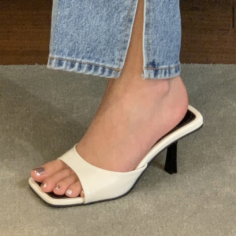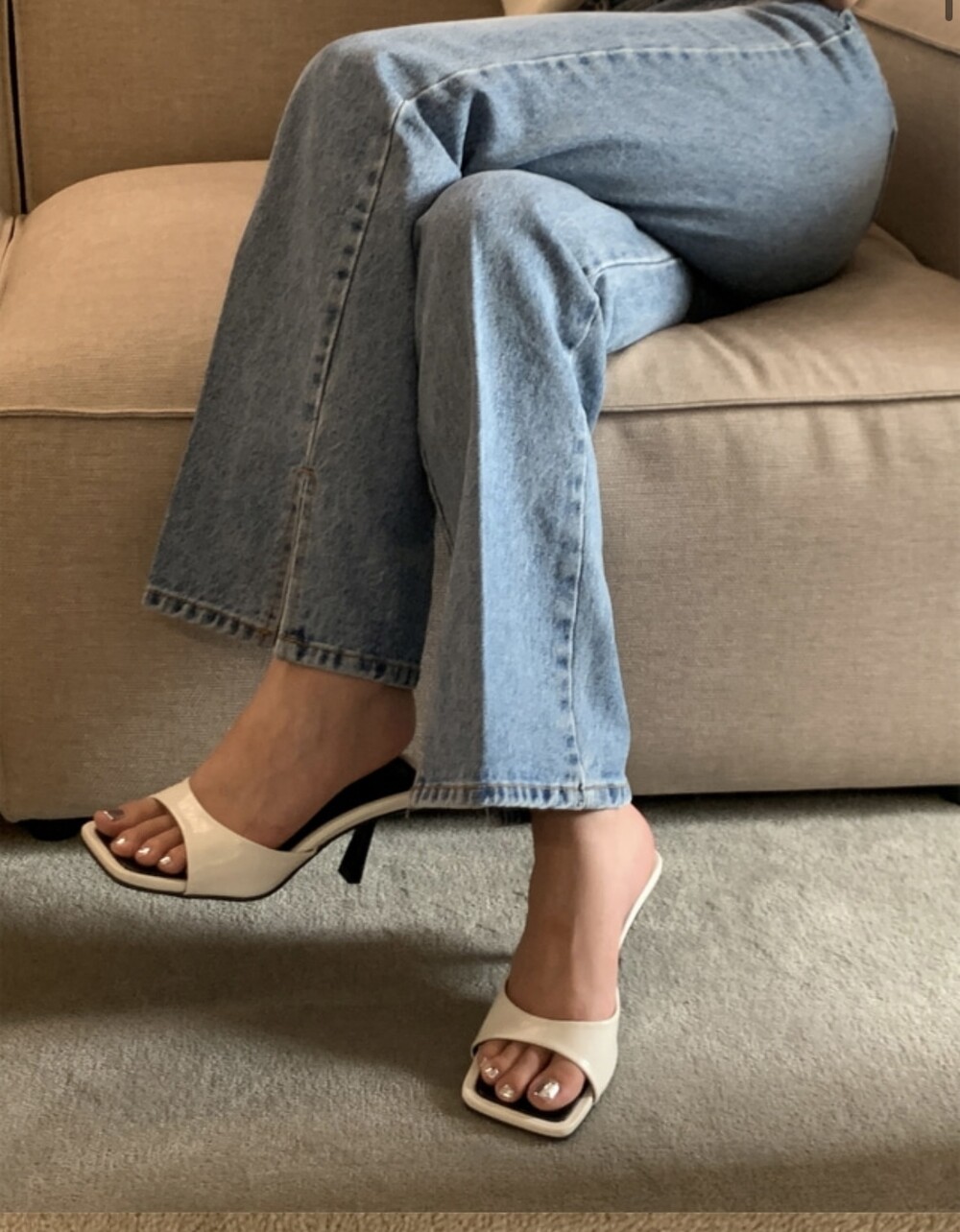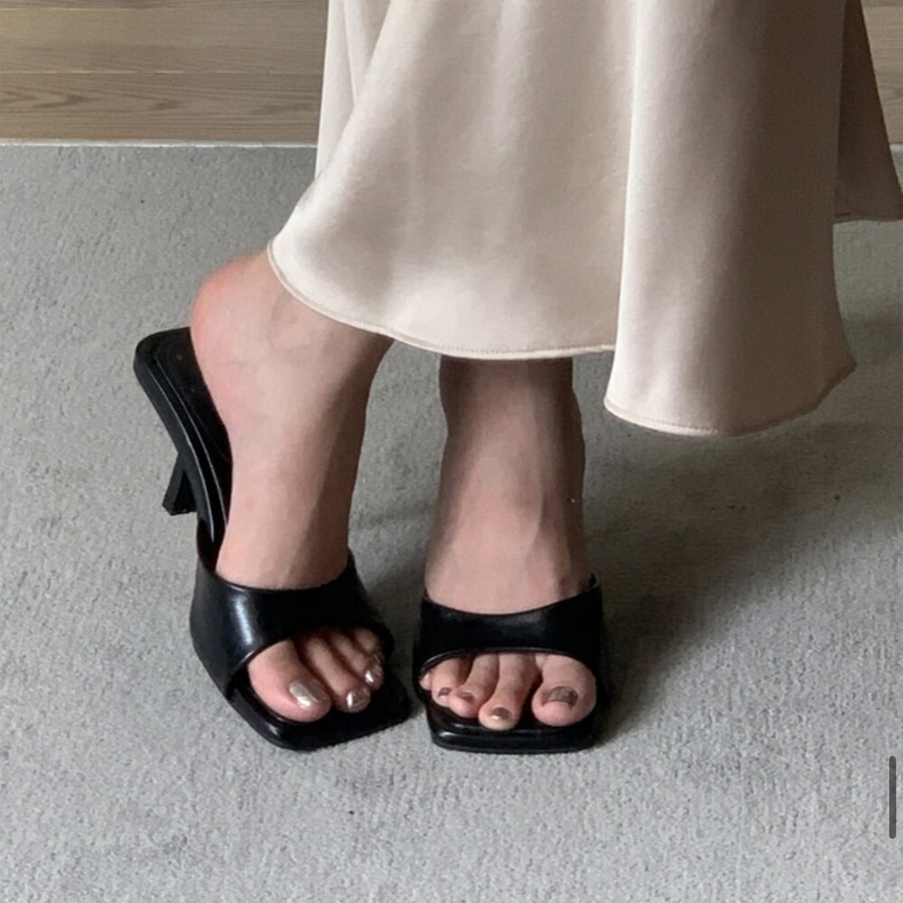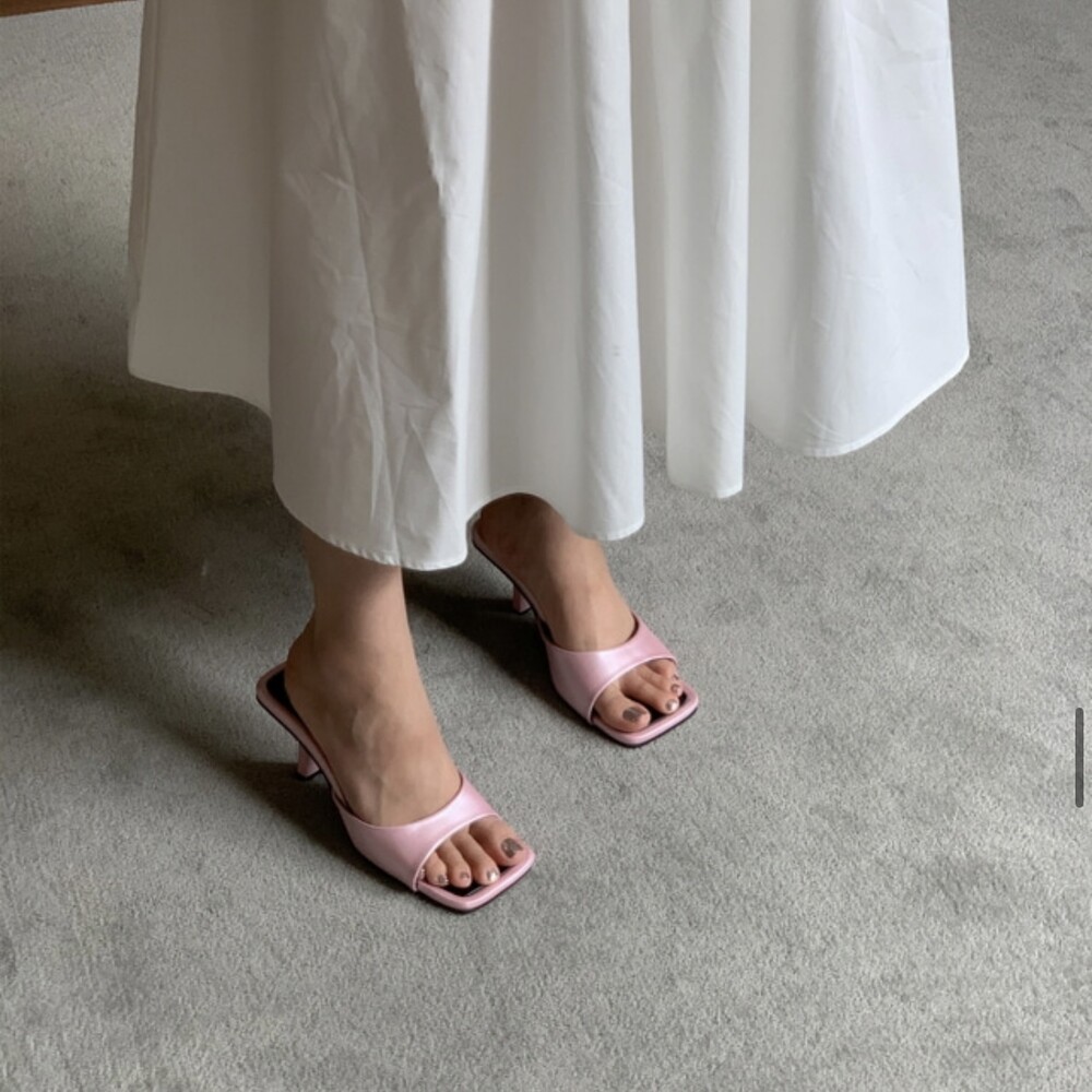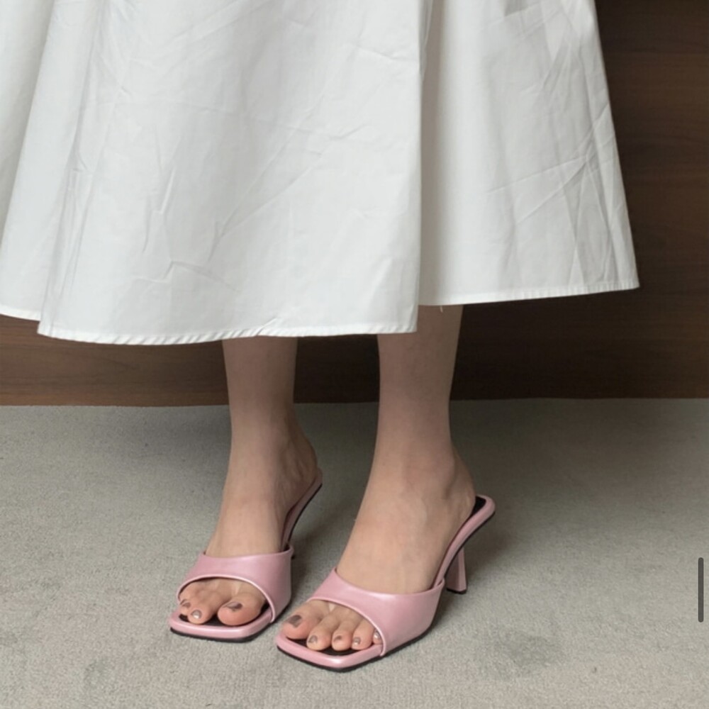 스퀘어형태의 바닥으로 발볼 넓이 상관업이 편안한 착화감을 느낄수 있고 7cm굽으로 부담스럽지 않아 활용도가 높습니다.