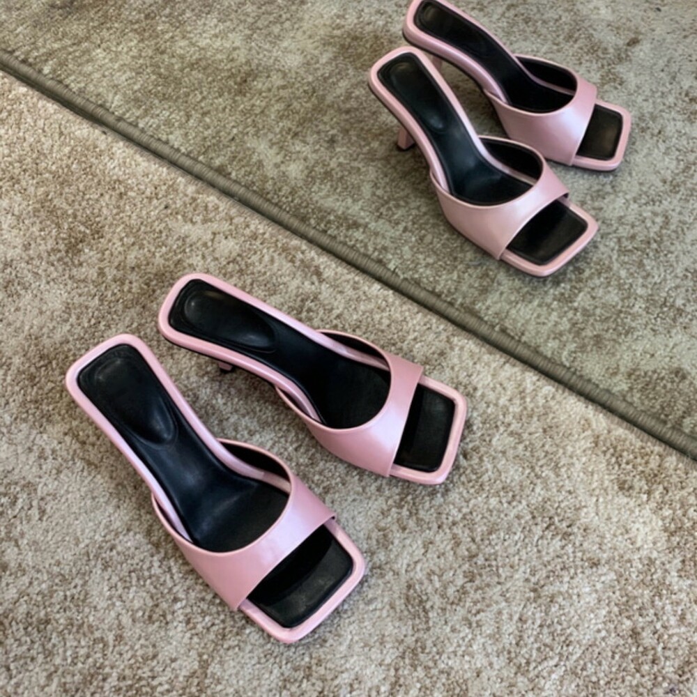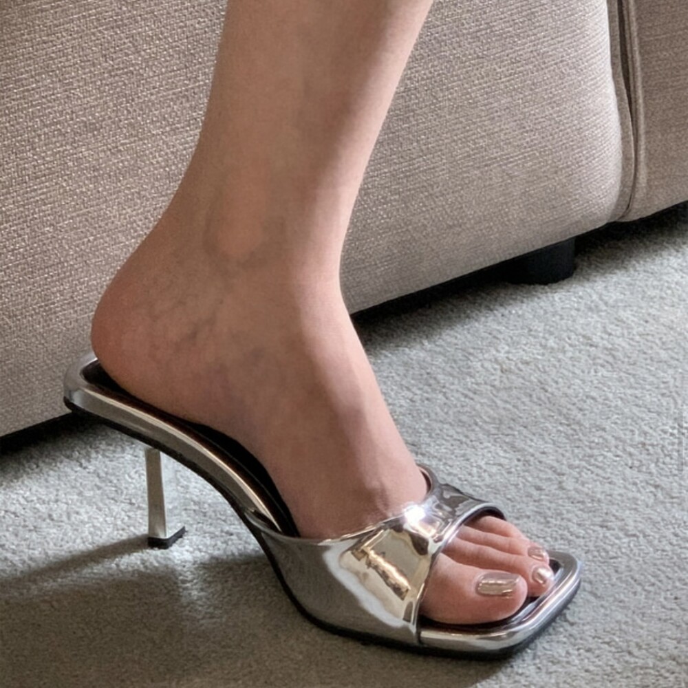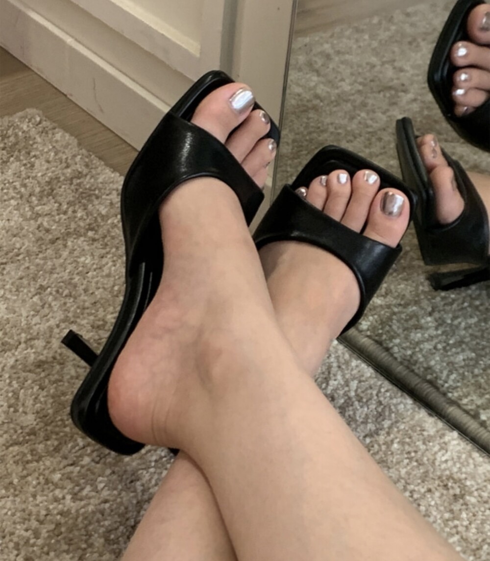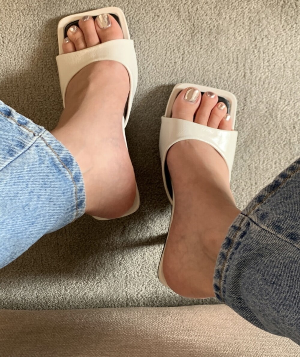 스퀘어형태의 바닥으로 발볼 넓이 상관업이 편안한 착화감을 느낄수 있고 7cm굽으로 부담스럽지 않아 활용도가 높습니다.