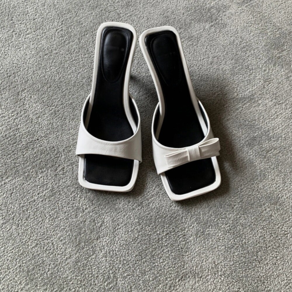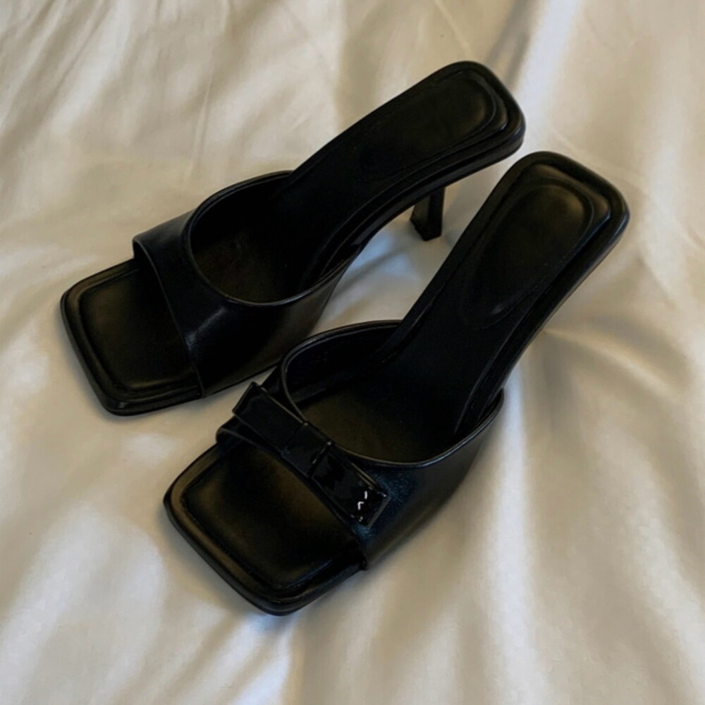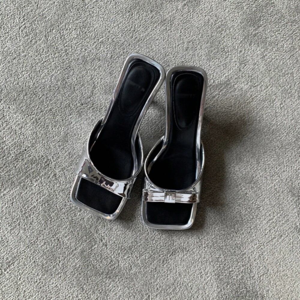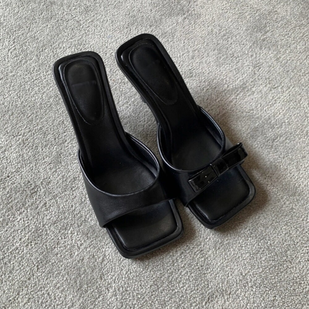 리본 뮬 샌들 힐 슬리퍼 7cm