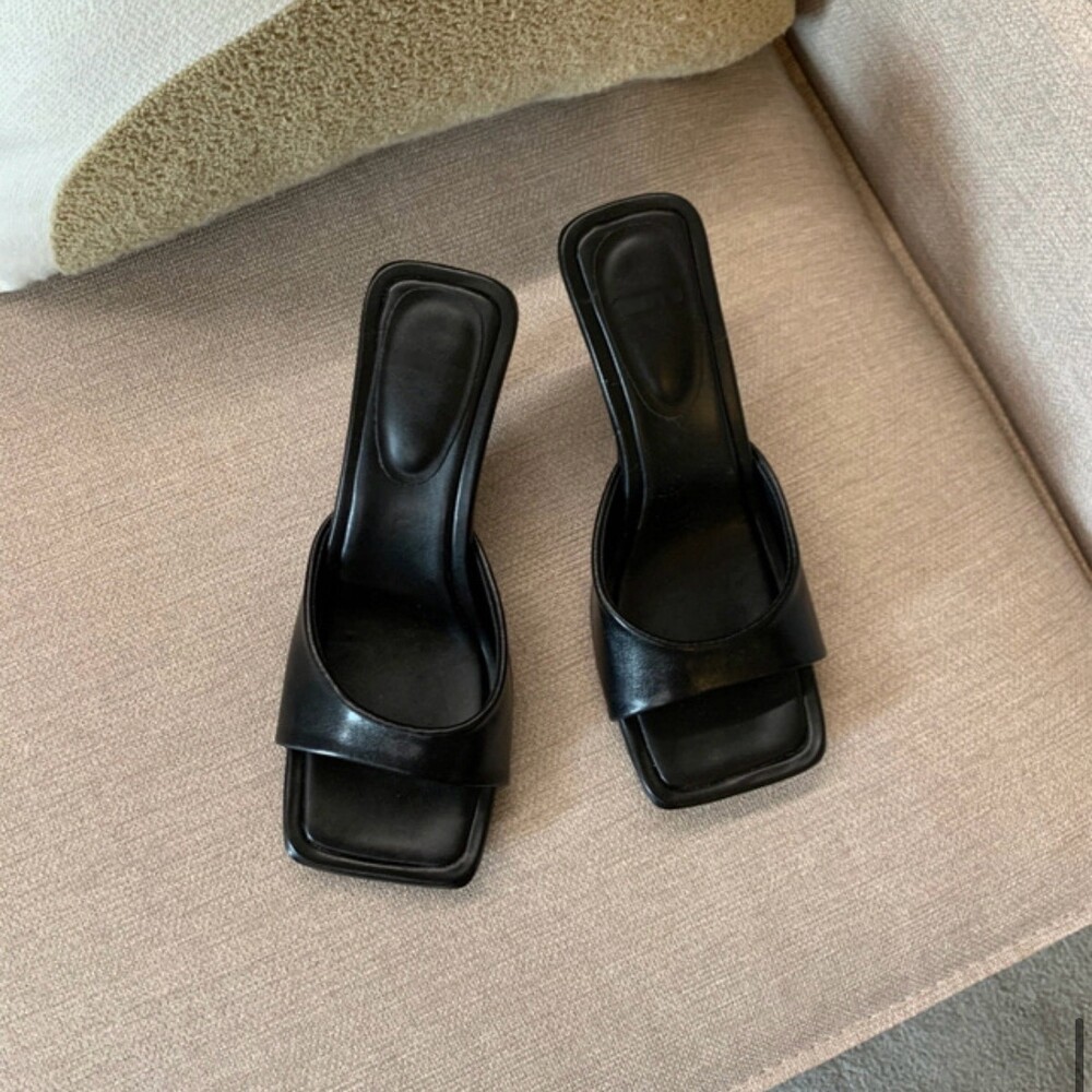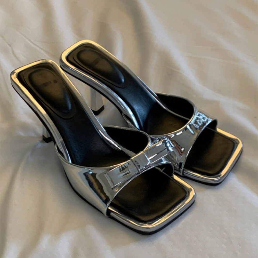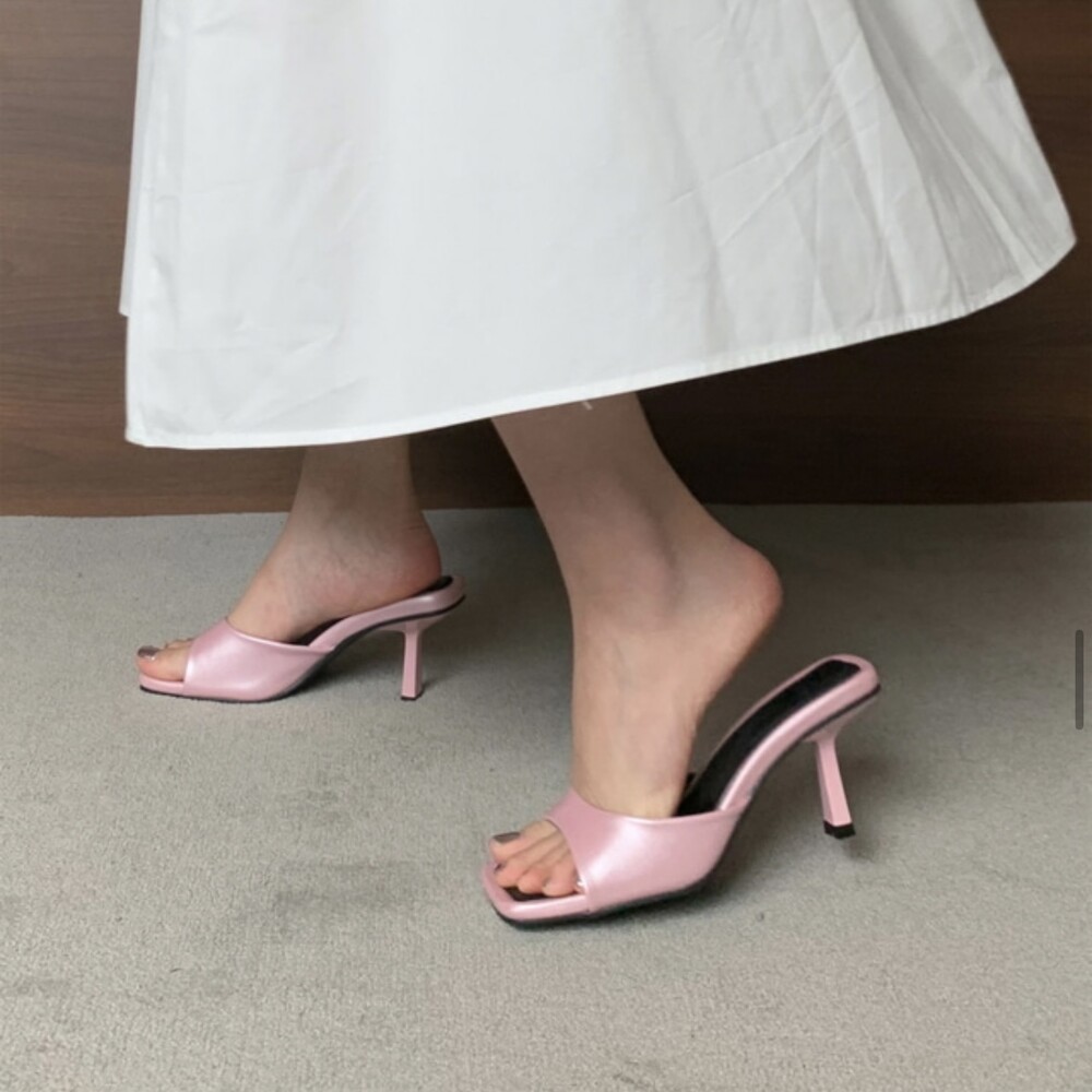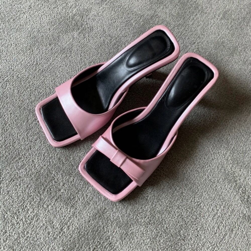 리본 뮬 샌들 힐 슬리퍼 7cm