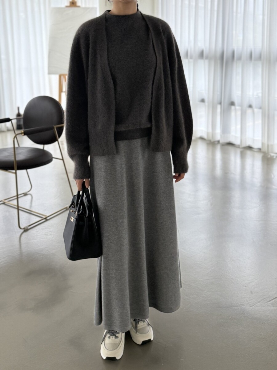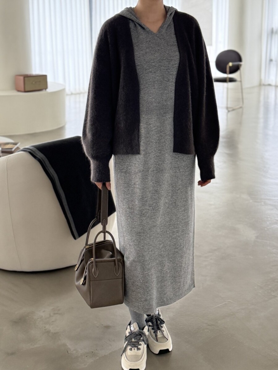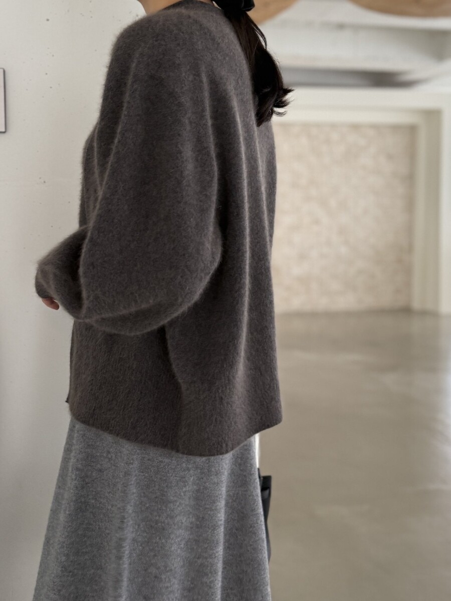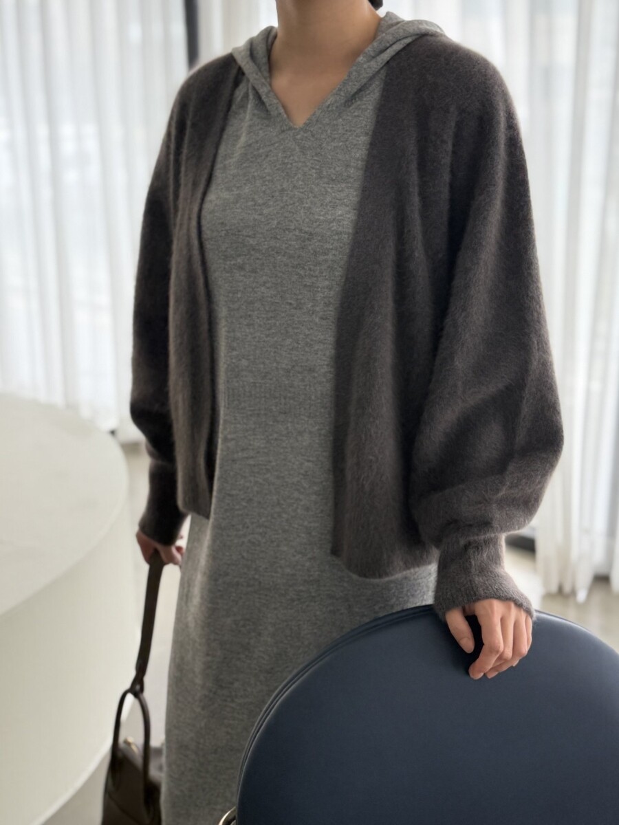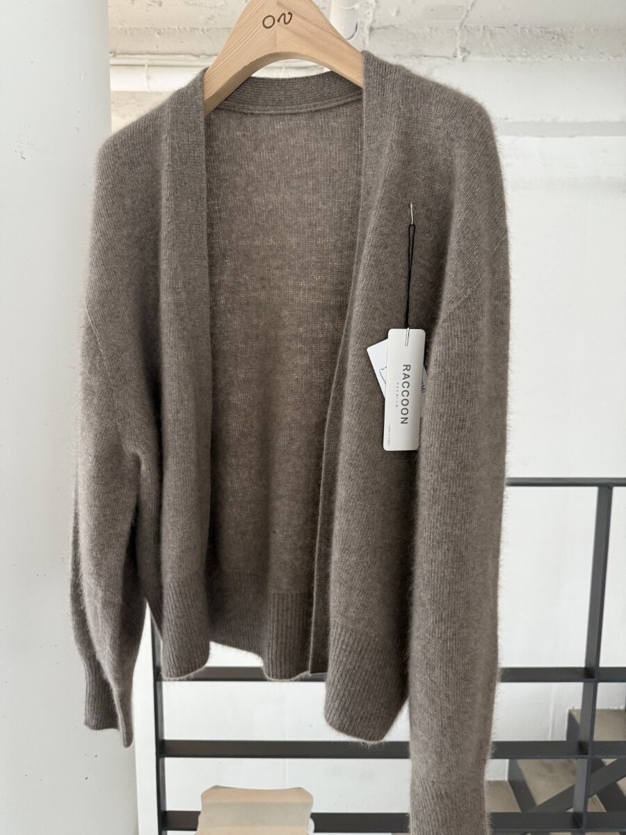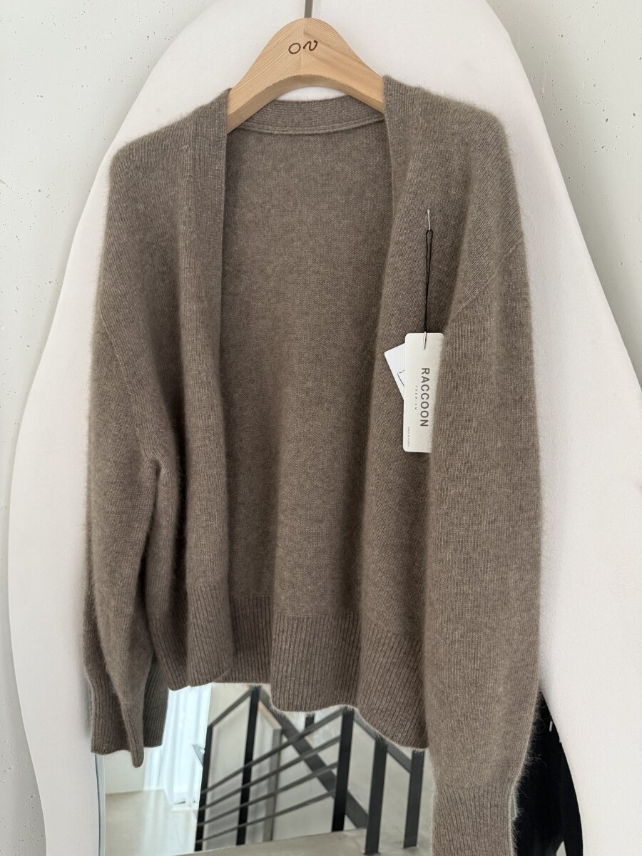 오브 라쿤 볼륨 오픈 가디건 홀가먼트 니트