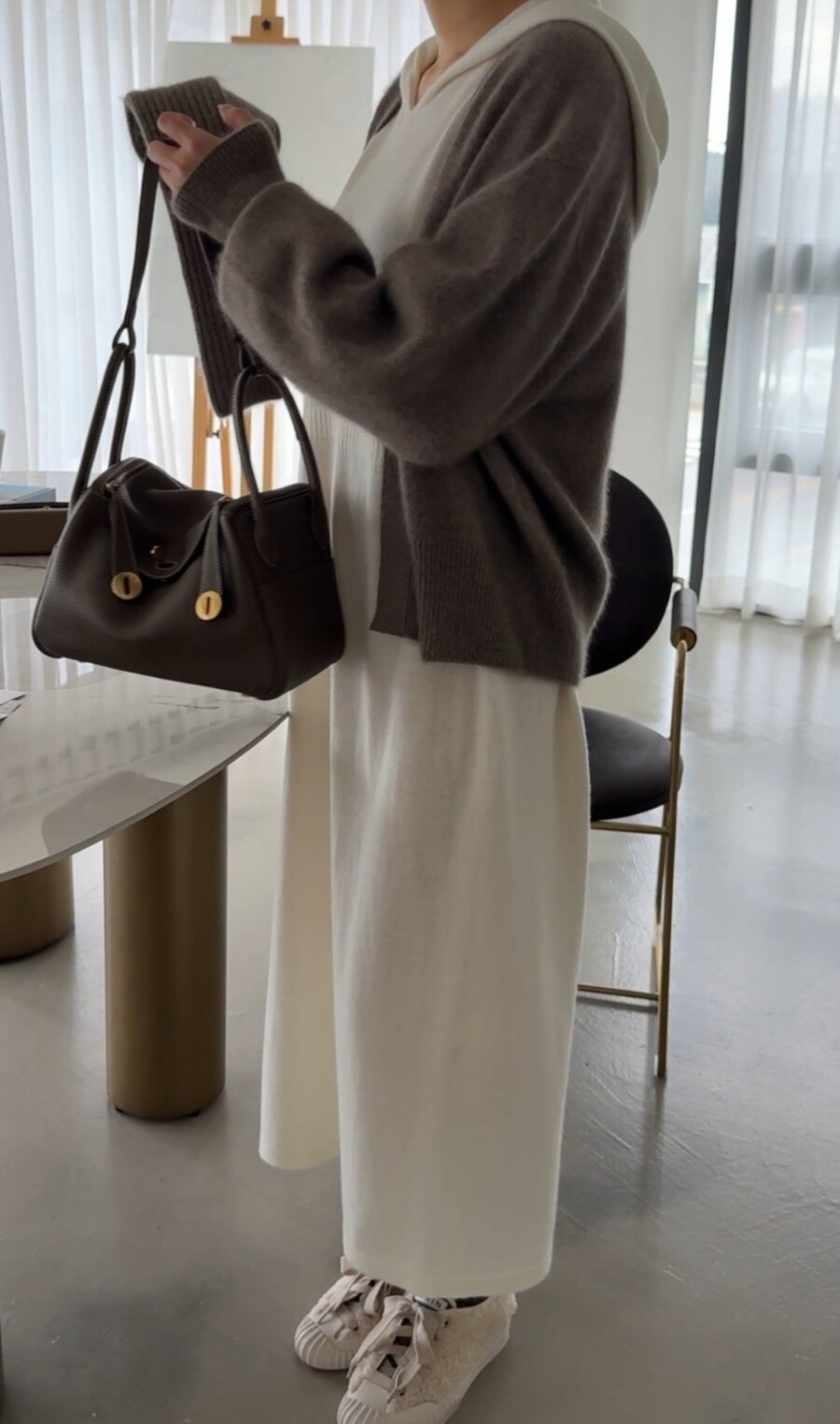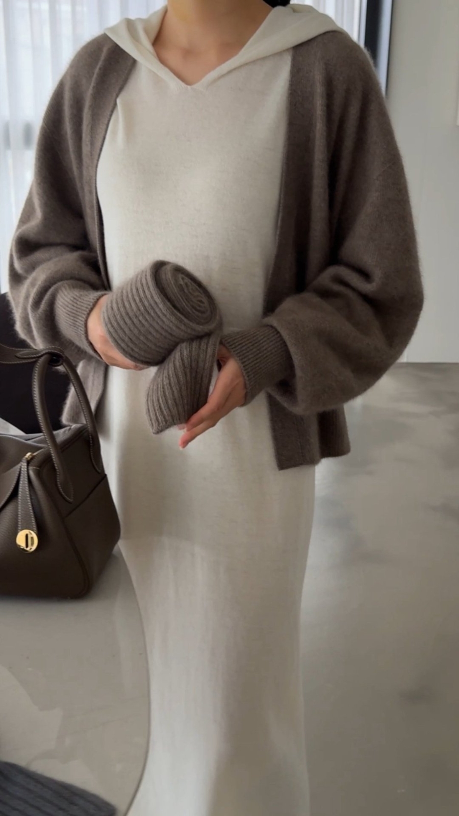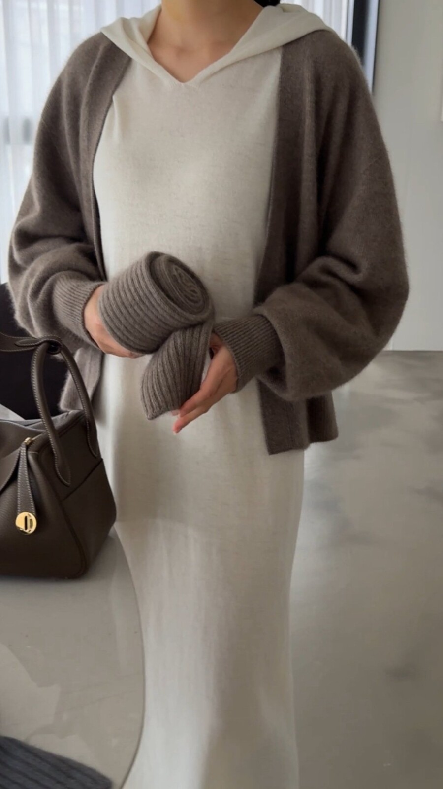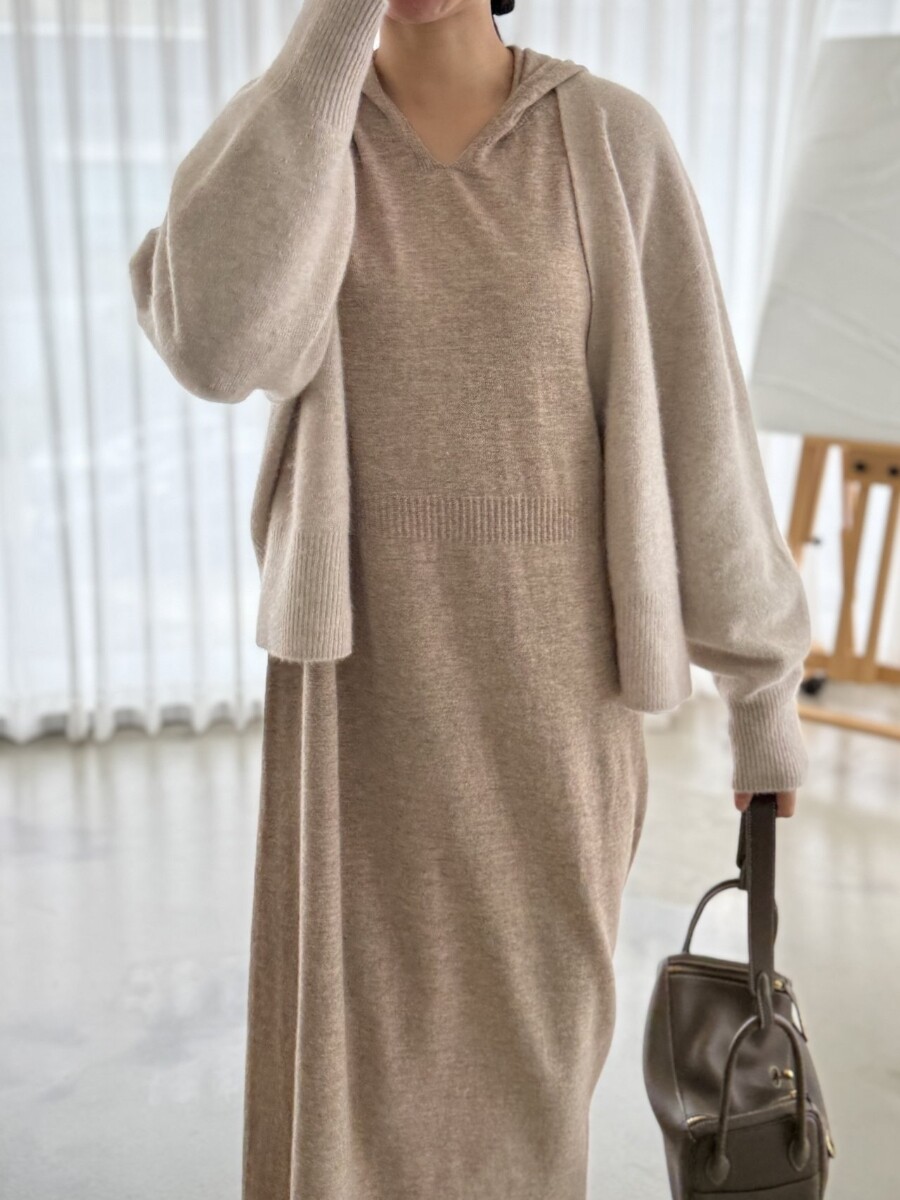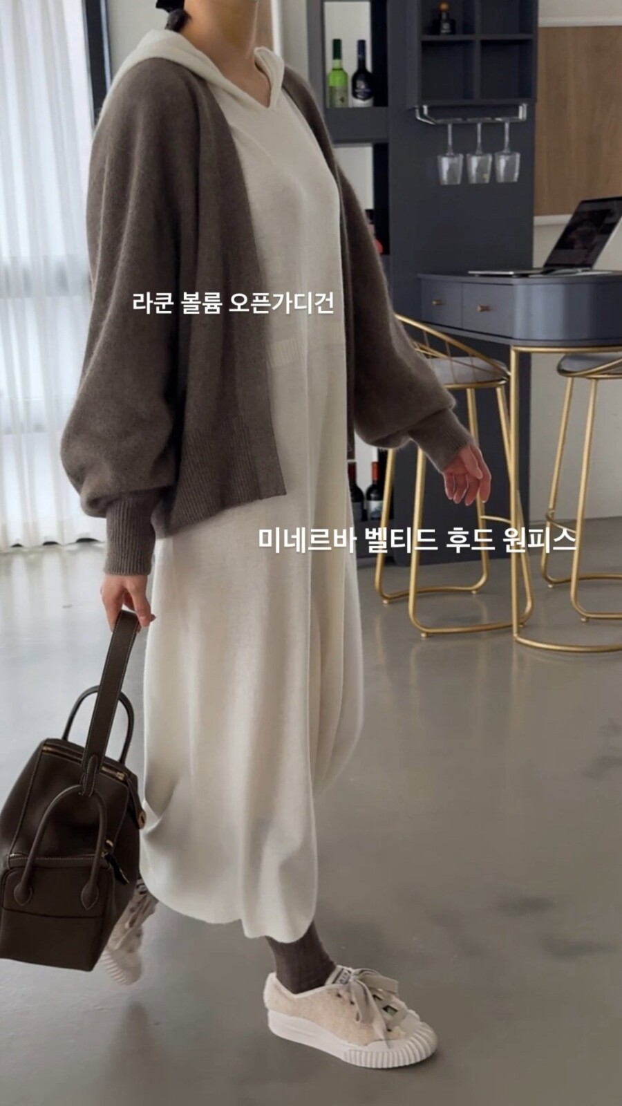 오브 라쿤 볼륨 오픈 가디건 홀가먼트 니트