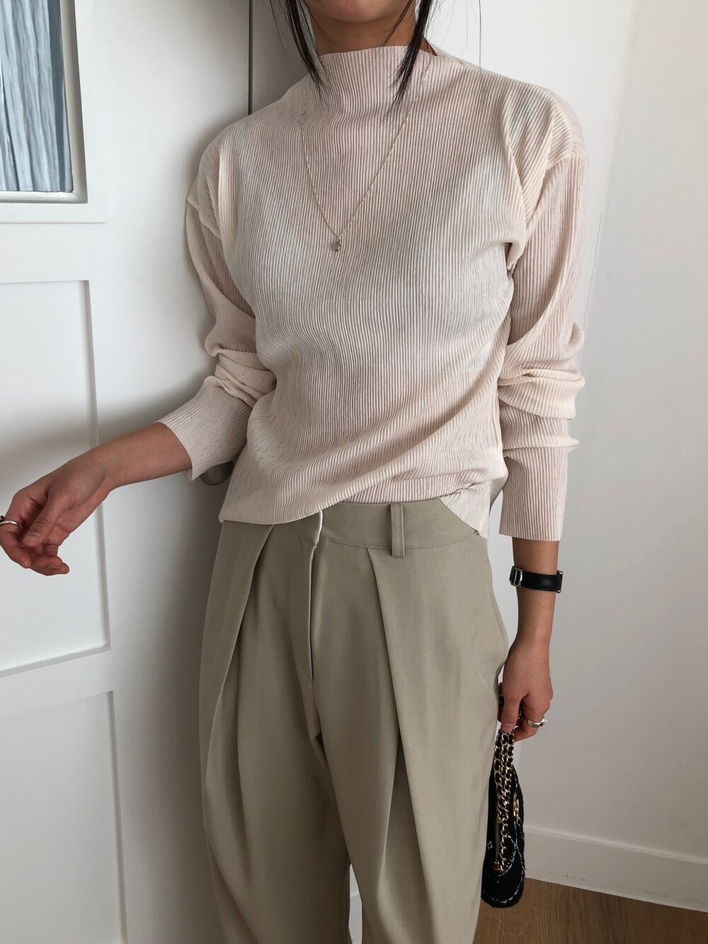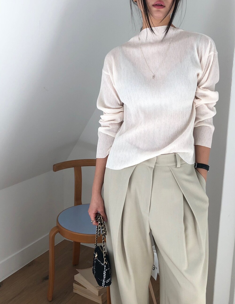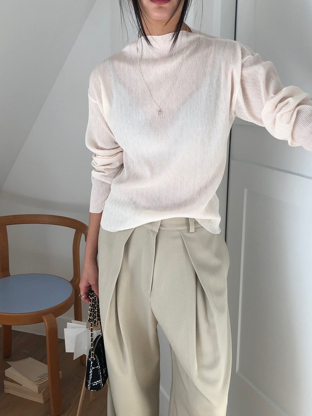 우아한 실루엣과 세련된 감각이 돋보이는 긴팔 플리츠.잔잔한 플리츠 텍스처가 은은한 포인트가 되어주며, 자연스럽게 흐르는 핏이 멋스러운 스타일을 완성해 줍니다.
