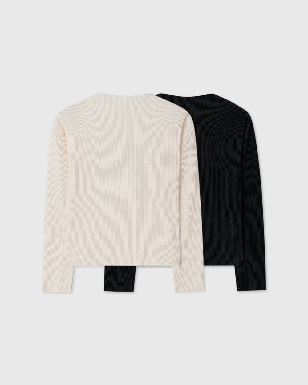 모던한 블랙과 은은한 크림 컬러로 구성되어 있어, 어떤 룩에도 자연스럽게 어우러집니다.심플하지만 특별한 디테일이 느껴지는 긴팔 플리츠 , 지금 만나보세요! 💕