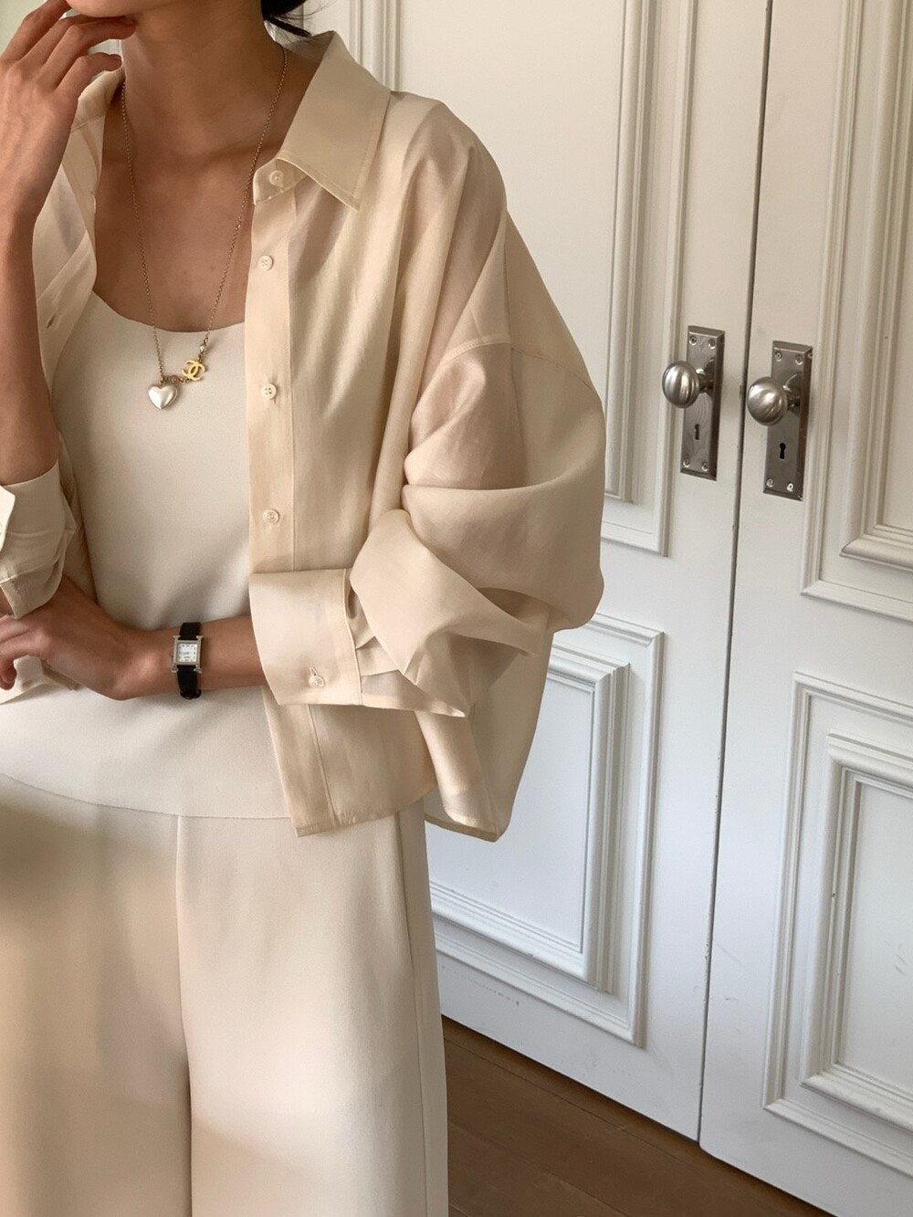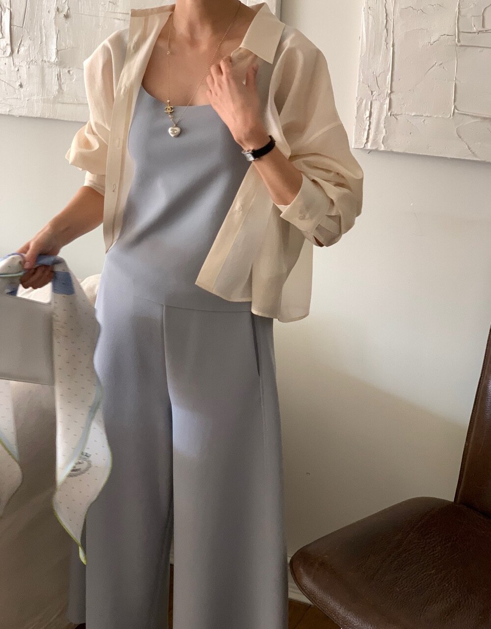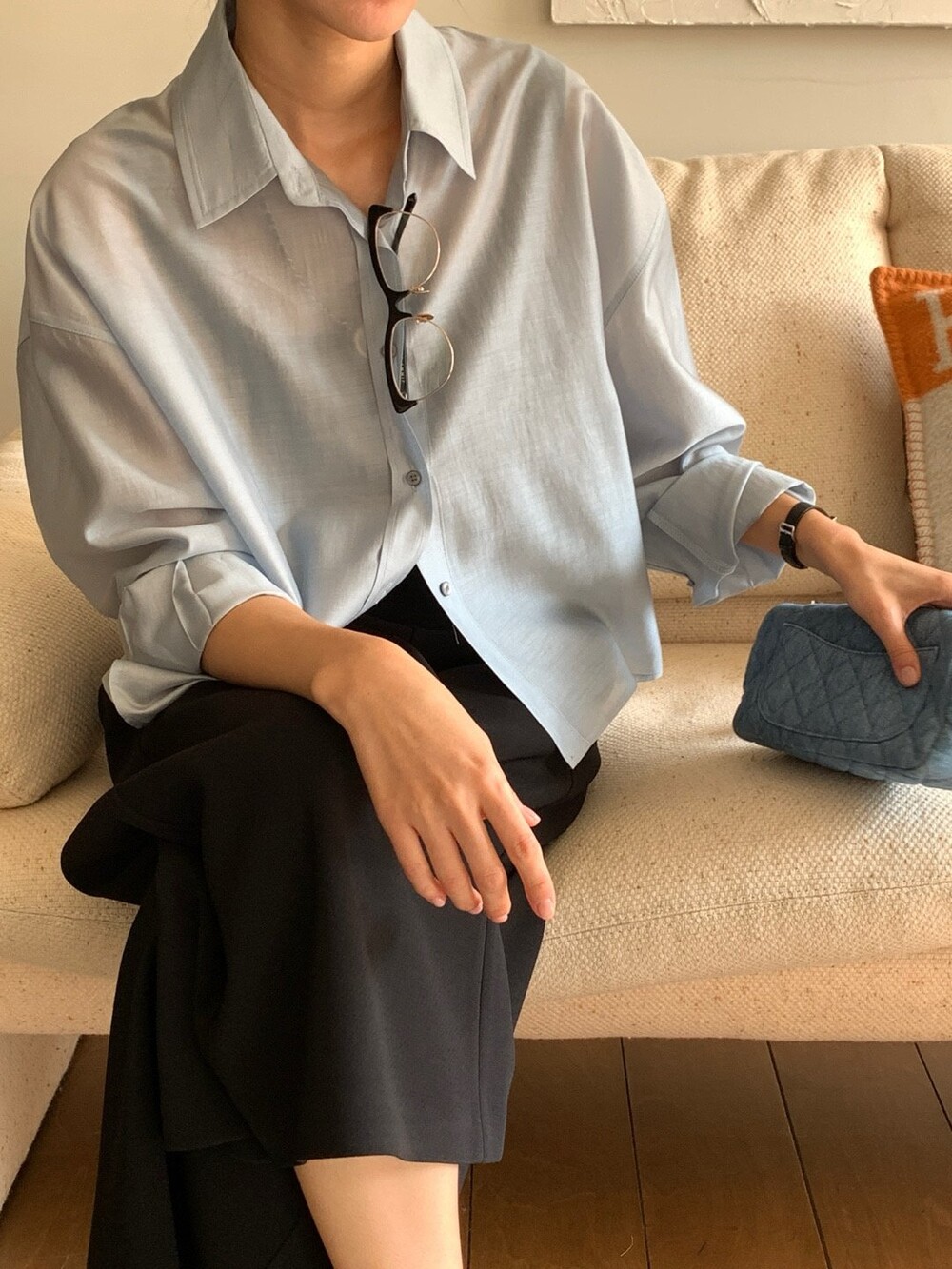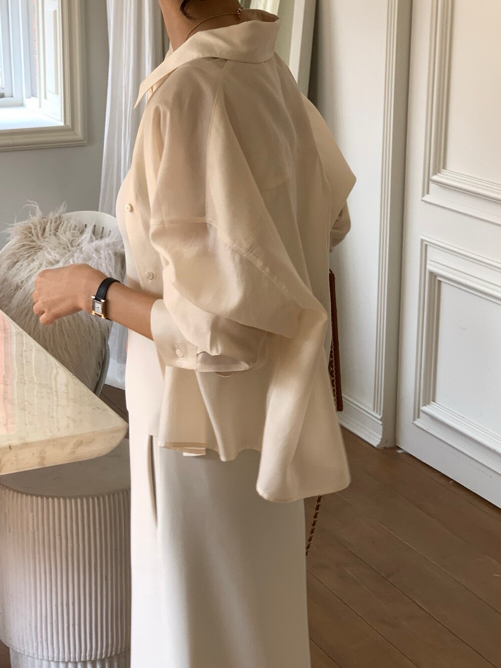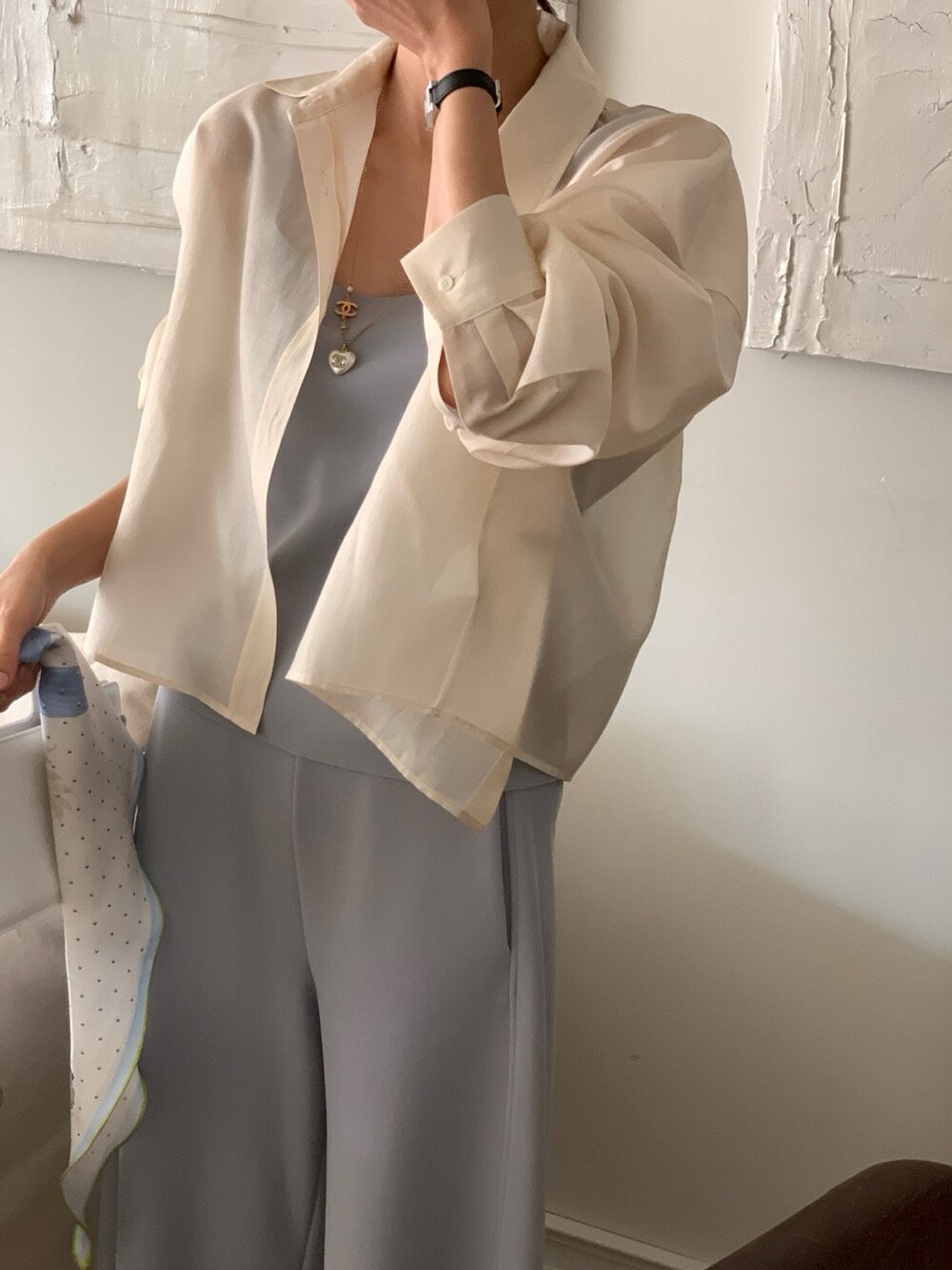 이 실키블라우스는 계절에 상관없이 이너로,아우터로 어떤코디에도 멋스럽게 매치가 됩니다.