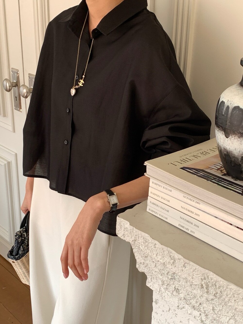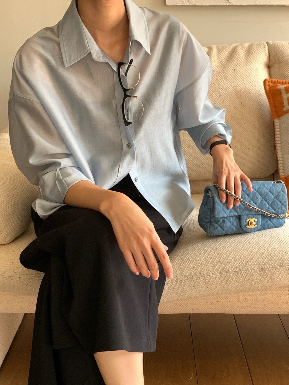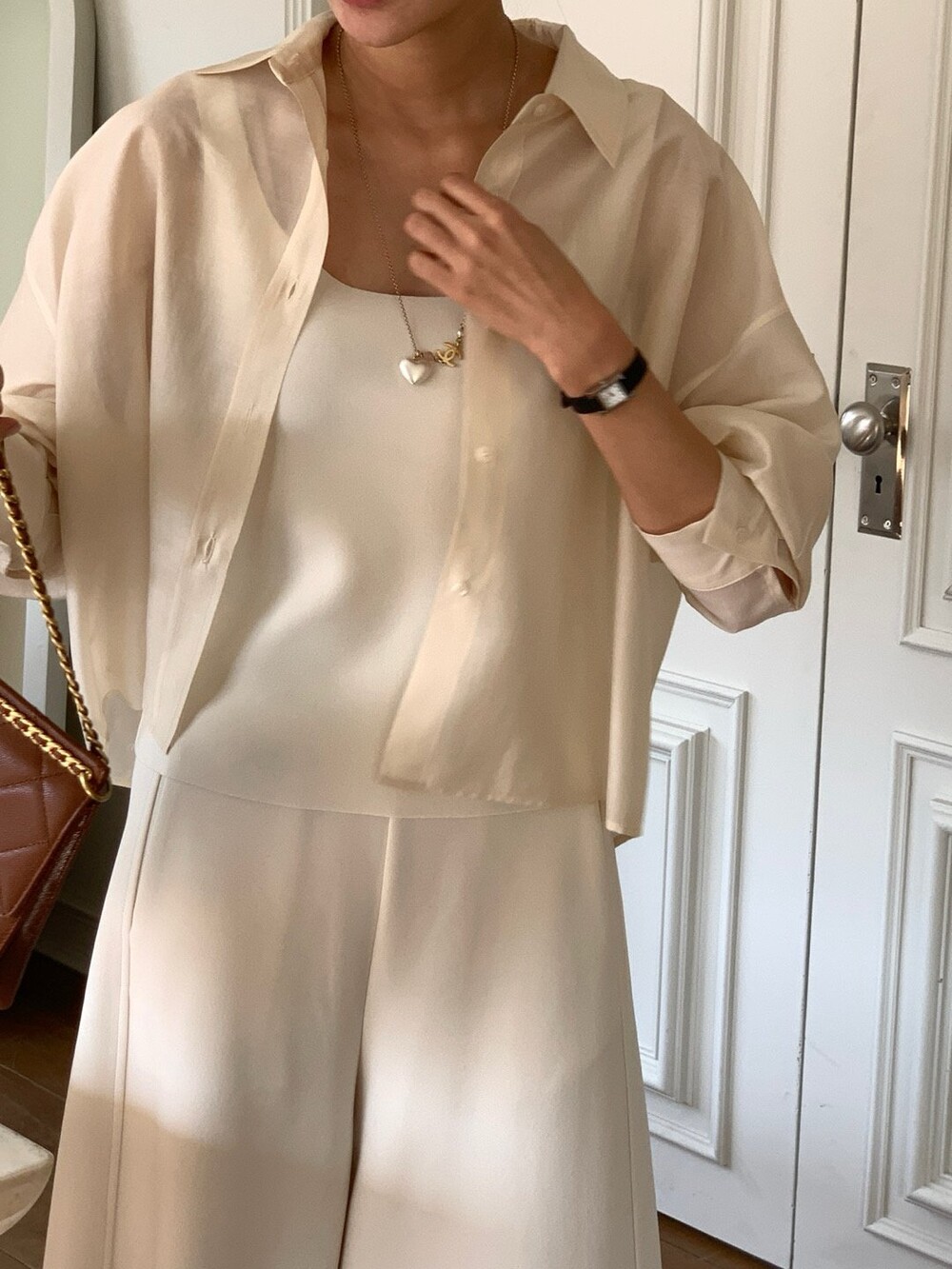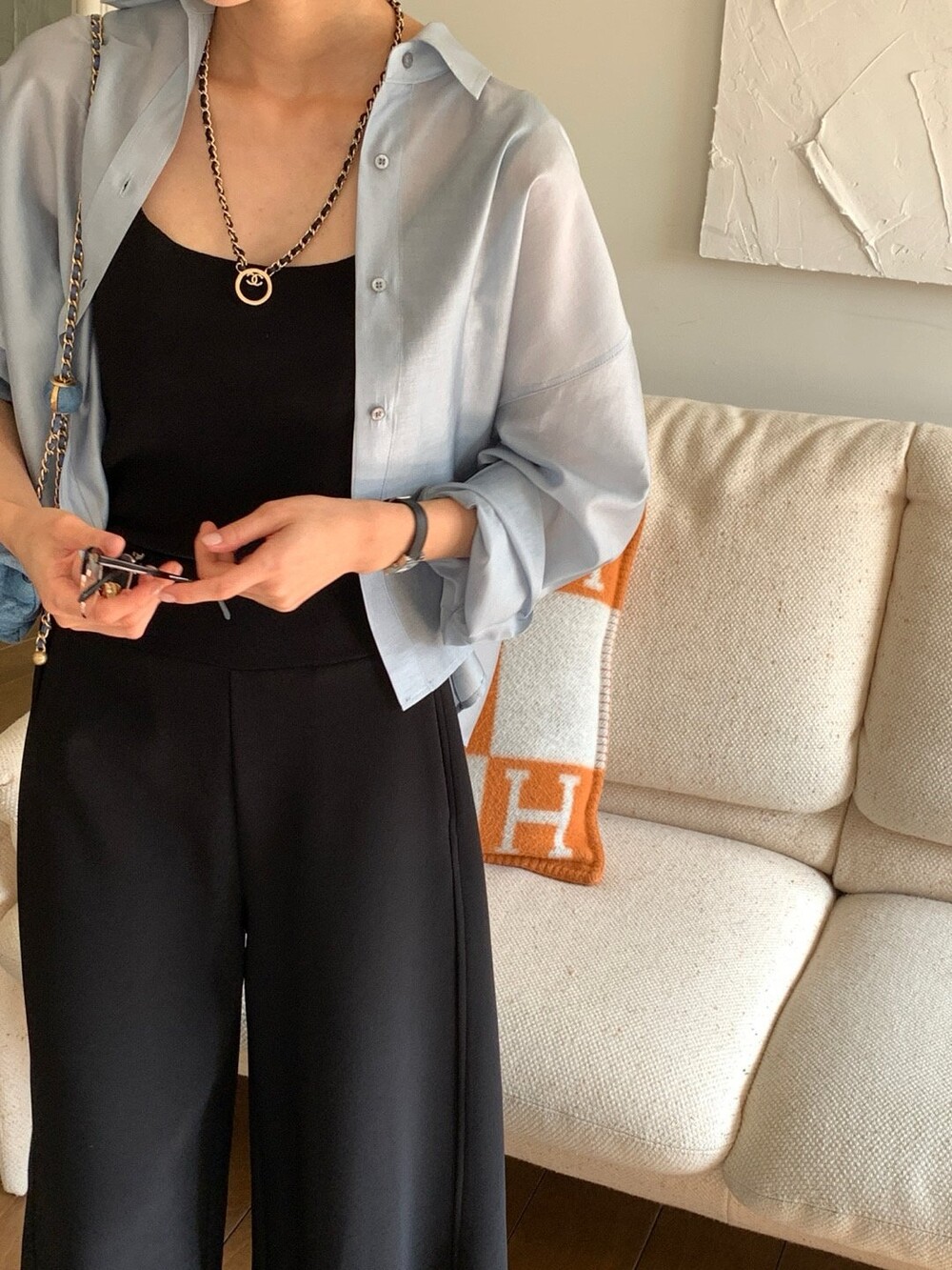 이 실키블라우스는 계절에 상관없이 이너로,아우터로 어떤코디에도 멋스럽게 매치가 됩니다.
