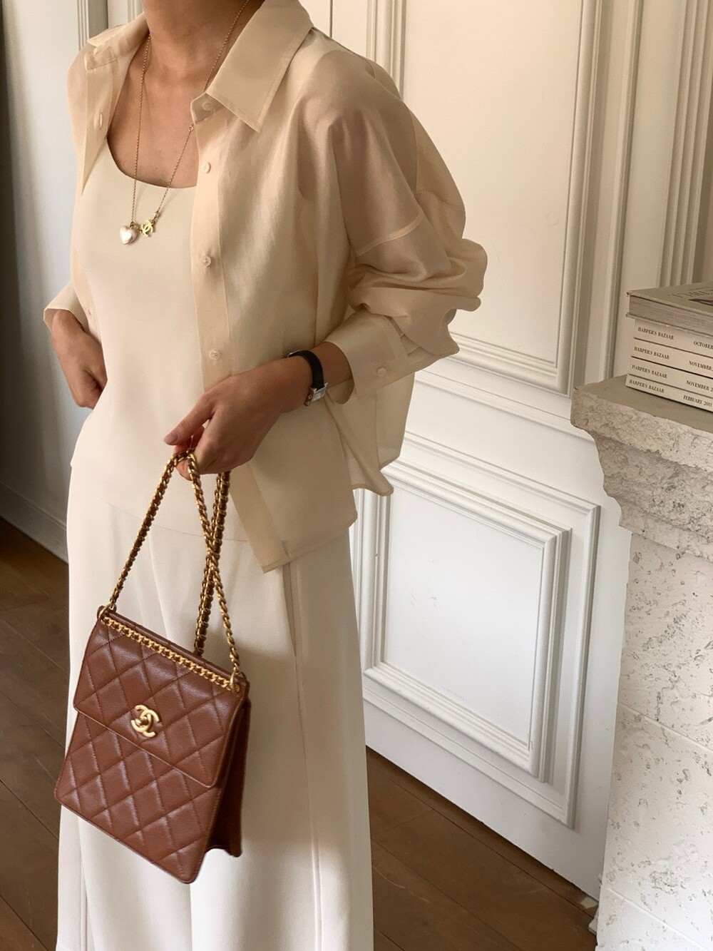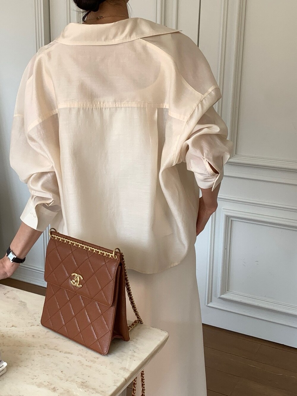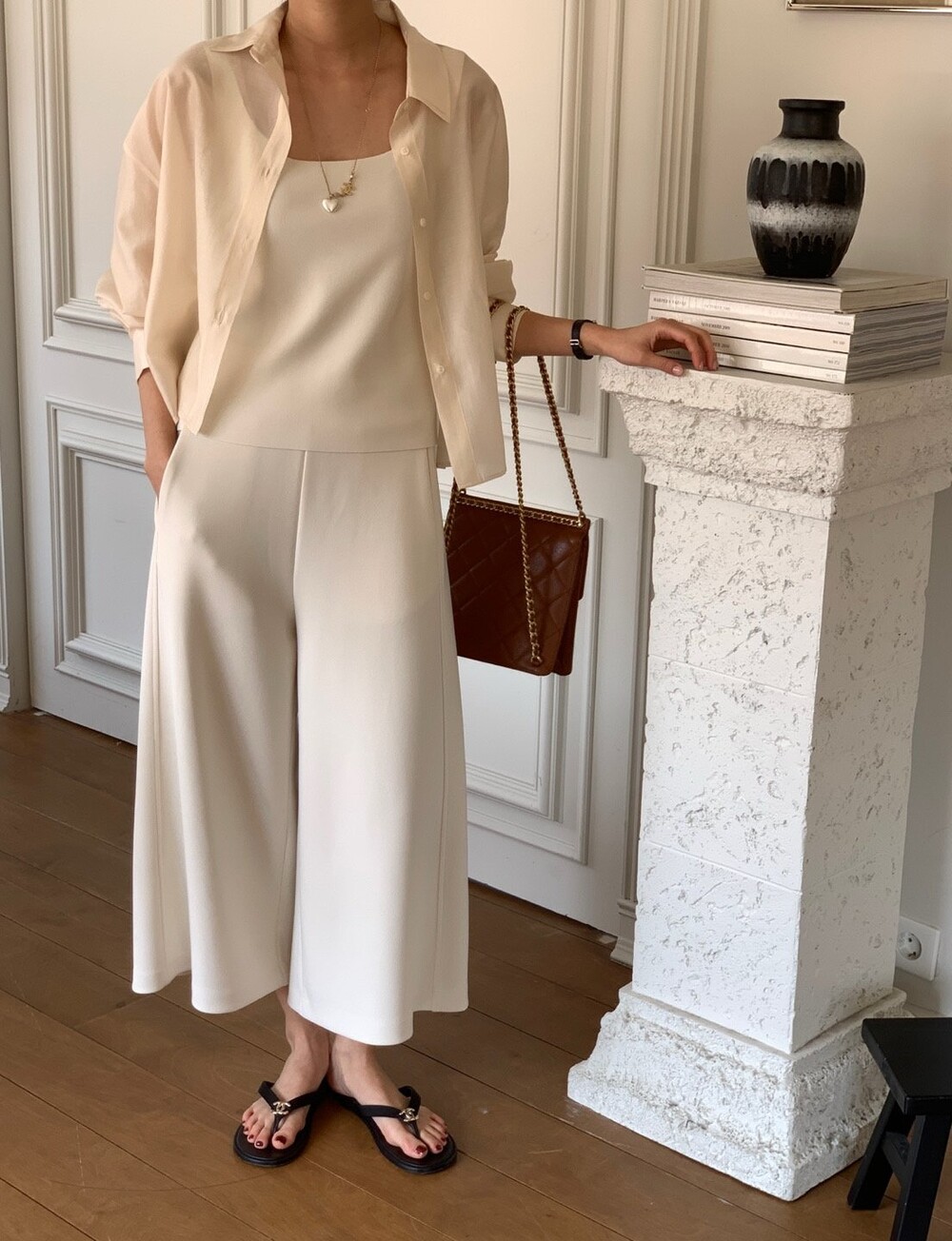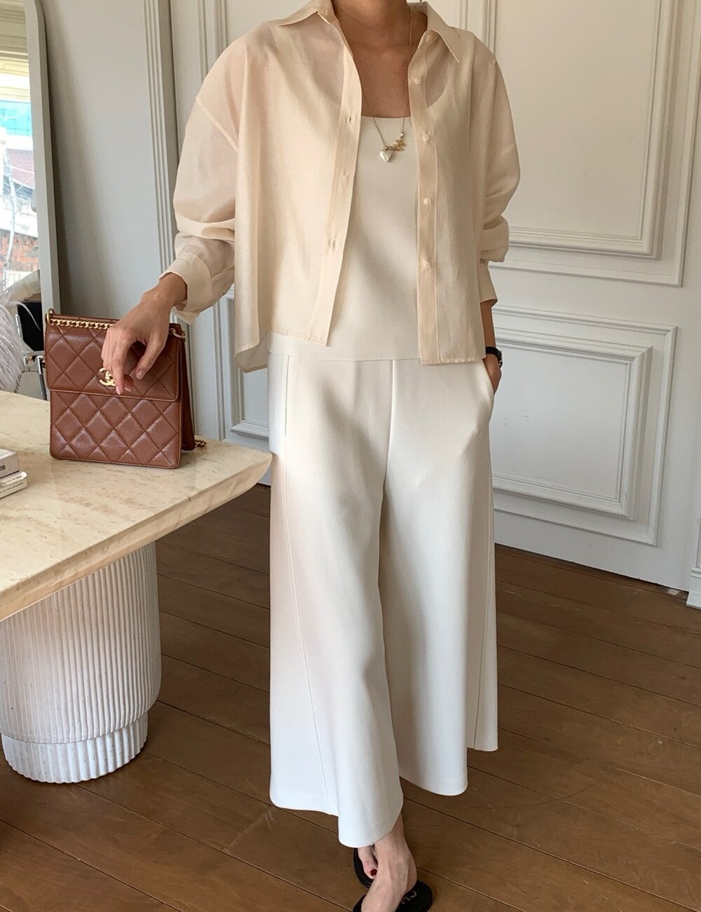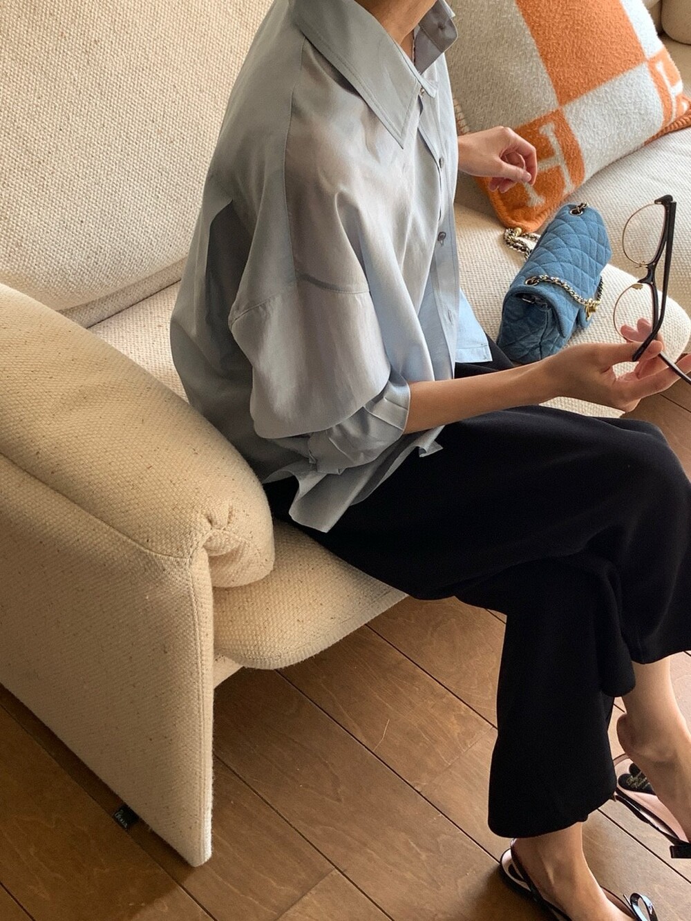 이 실키블라우스는 계절에 상관없이 이너로,아우터로 어떤코디에도 멋스럽게 매치가 됩니다.